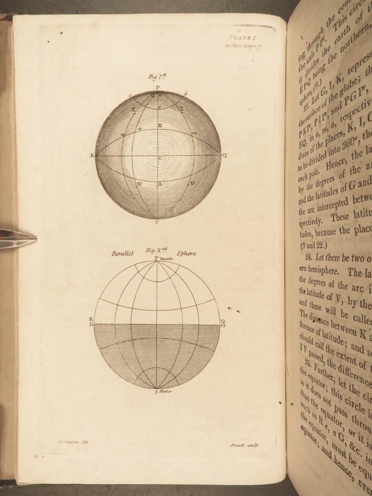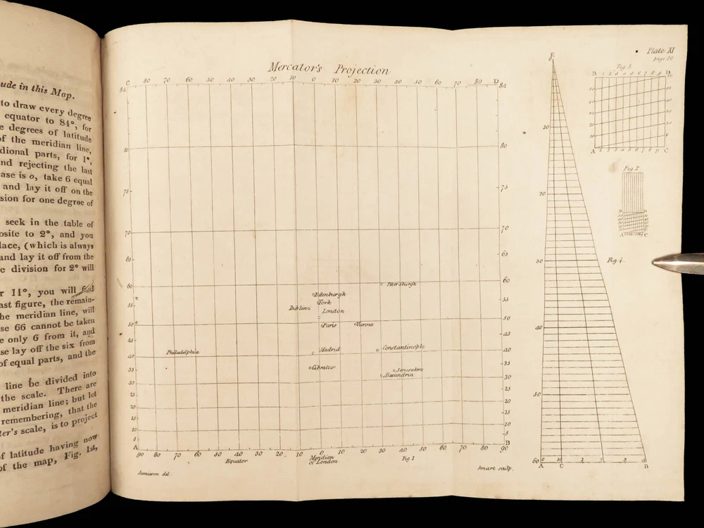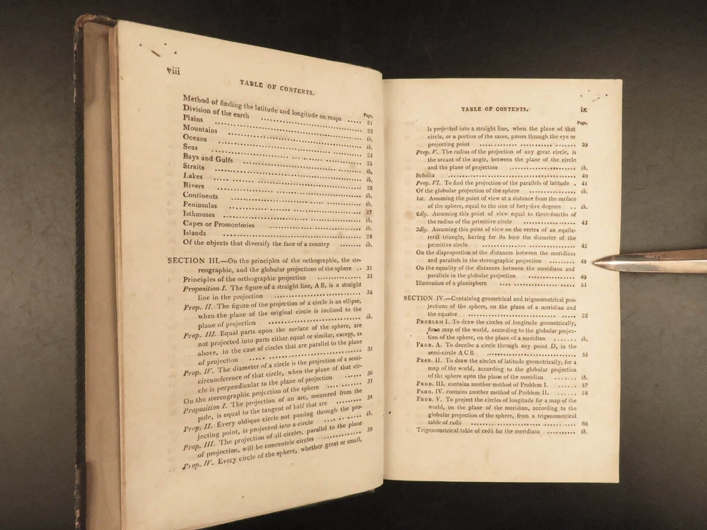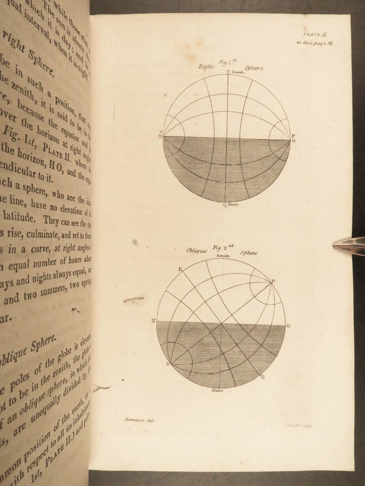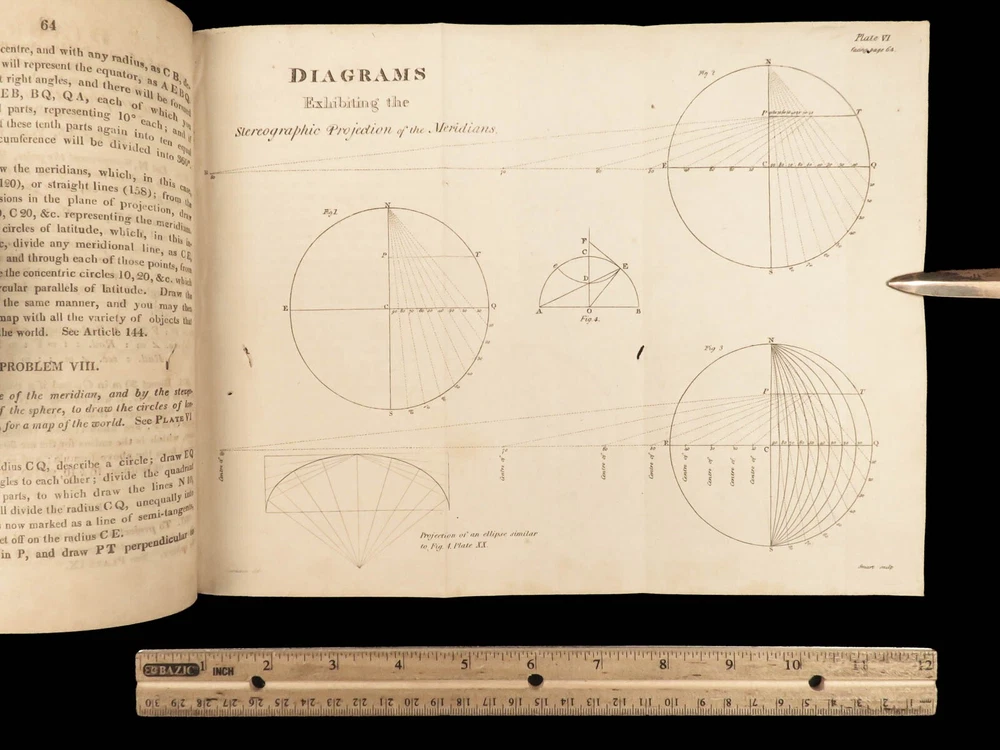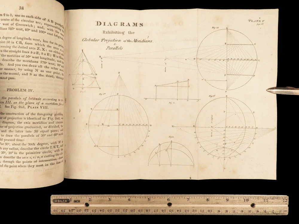 1814 Cartography 1 ed Construction MAPS Scottish Jamieson Geography Illustrated Alexander Jamieson was an early 19 th -century Scottish textbook writer known for his works of grammar, mechanics, and geography. It was, however, his geography and atlas books that brought him his most prestige. In fact, his 1814 treatise “ Construction of Maps ” proved to be an important reference for cartographers and historians, filled with impressive folding engravings and maps. Jamieson describes techniques for drawing longitude and latitude lines, correctly illustrating rivers, and much more! Item number: #23089 Price: $499 JAMIESON, Alexander A treatise on the construction of maps in which the principles of the projections of the sphere are demonstrated, London: printed by Darton, Harvey, and Co., for C. Law., 1814. 1 st edition Details : · Collation: Complete with all pages o xv, [1], 187, [1] o 20 engravings (11 folding) · Language: English · Binding: Leather; tight and secure · Size: ~8.25 in X 5.25in (21cm x 13cm) Our Guarantee: Very Fast. Very Safe. Free Shipping Worldwide. Customer satisfaction is our priority! Notify us with 7 days of receiving, and we will offer a full refund without reservation! 23089