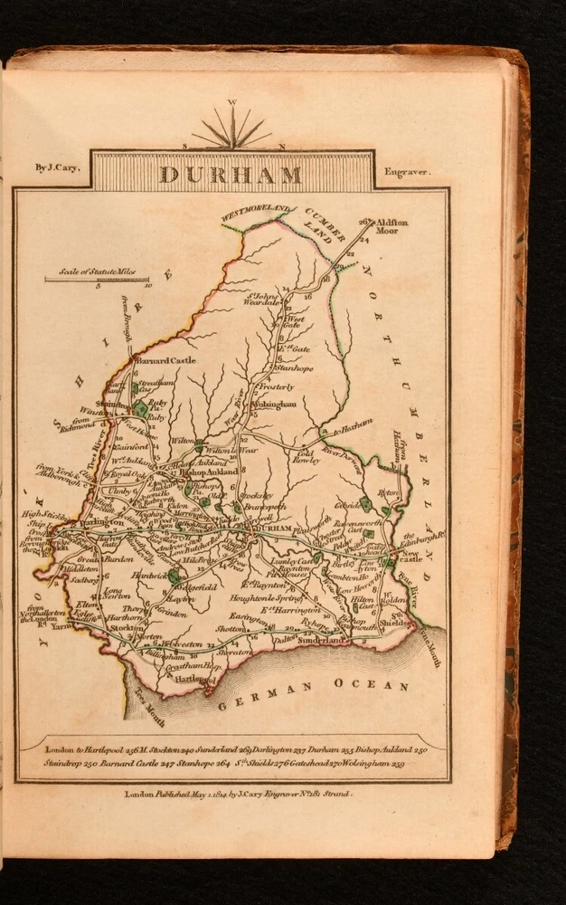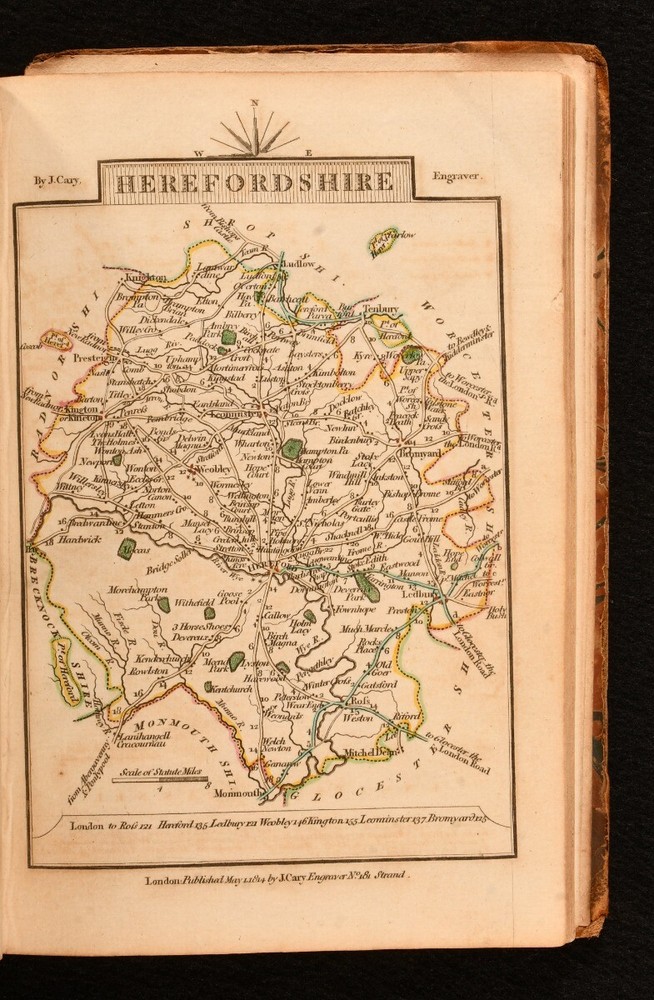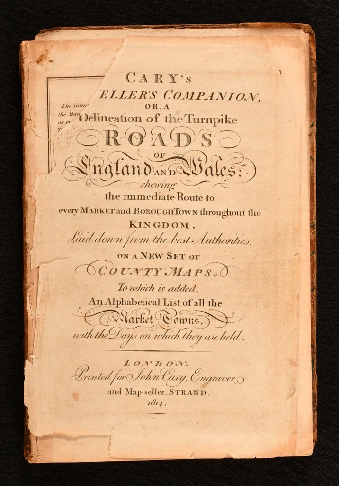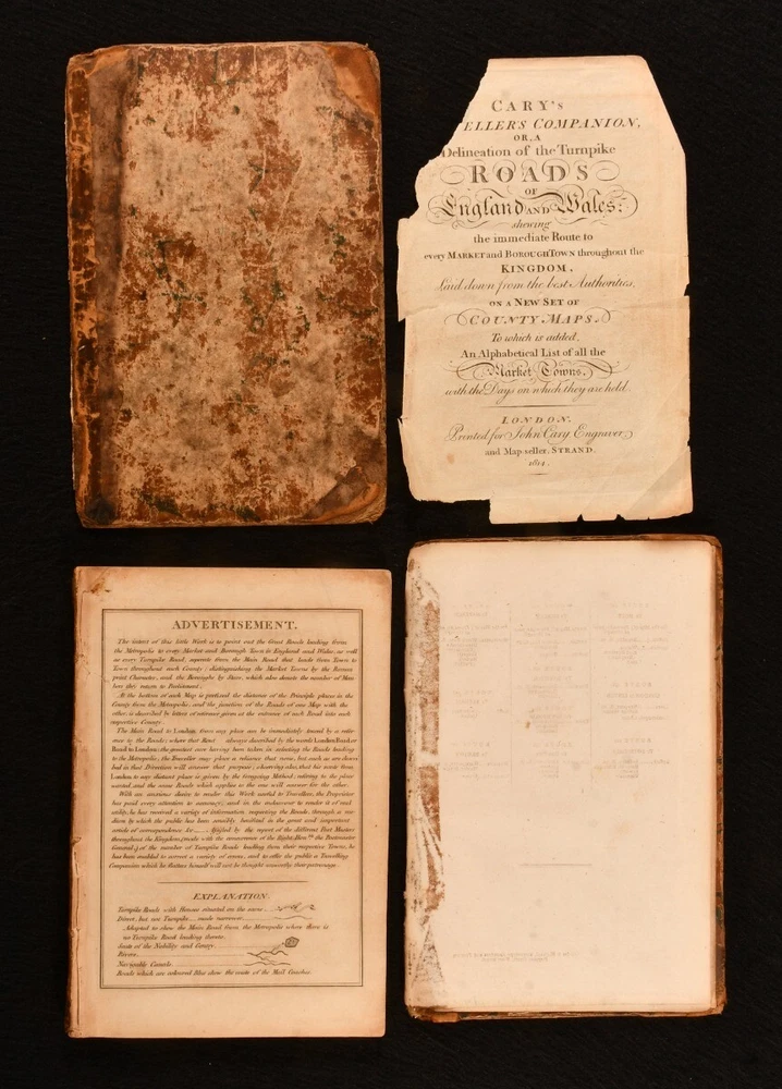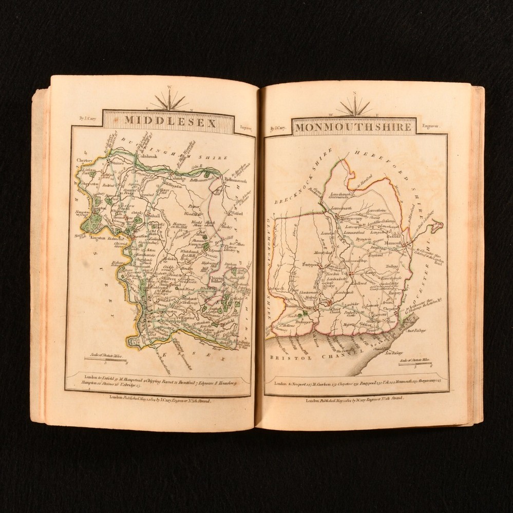 Click here to see our other books! Cary's Traveller's Companion, or a Delineation of the Turnpike Roads of England and Wales John Cary 1814 John Cary : London 6.5" by 4.5" Unpaginated SUMMARY A wonderfully illustrated copy of Cary's Traveller's Companion for England and Wales, with forty-two hand coloured maps. Colour Plates,Illustrated,Leather Binding Overall Condition: Good Only This book weighs 0.5 KG when packed UK Postage: £ 3.99 US Postage: £ 15.99 EU Postage : £ 13.99 European Postage: £ 14.99 Asia Postage: £ 18.99 Worldwide Postage: £ 19.99 DESCRIPTION Bound in half calf with marbled boards. Cary's Traveller's Companion was a compilation of maps illustrating the turnpike roads of England and Wales, showing the routes available to the market and borough towns in the United Kingdom in the nineteenth century. Published by John Cary in a number of revised editions. Illustrated with forty-two hand coloured maps, presenting different counties. Lacking the large folding map of Yorkshire. All other maps present. With one sheet of original advertisement to the front of the work. CONDITION Bound in half calf with marbled boards. Externally, slightly worn, with front board detached and rear board detached along with the two end pages. Boards and spine are heavily rubbed, with loss to the extremities. Internally, generally firmly bound. Lacking front endpaper with title page detached, with chipping and loss to the title page, including a little to the title text. Small tear to the advertisement page, not affecting text. Pages are generally bright and clean, with the odd handling mark. Overall Condition: Good Only GLOSSARY OF TERMS Overall Condition (Dustwrapper condition rating is shown after that for the book itself, where a dustwrapper is present) Fine - Very well preserved copy showing very little wear Very Good Indeed - Only one or two minor faults, really a very attractive copy Very Good - Quite a wide term meaning no major faults but probably several smaller ones often expected given the age of the book, but still a respectable copy Good - Meaning not very good. Some more serious faults as will be described in the condition report under 'condition' Good Only - Meaning one or more faults that could really do with repair Fair - As with good only above but with other faults leaving a compromised copy even after repair Poor - Really bad and possibly seriously incomplete. We only sell books in this condition where their rarity or value makes them attractive none the less. Major defects will be described. GUARANTEE We offer a full money back guarantee on our descriptions. Please ask for details and conditions. We prefer PAYPAL. If you pay via PAYPAL we will post the item off the same or the next working day with the postage you have selected. Please note we cannot accept USD cheques