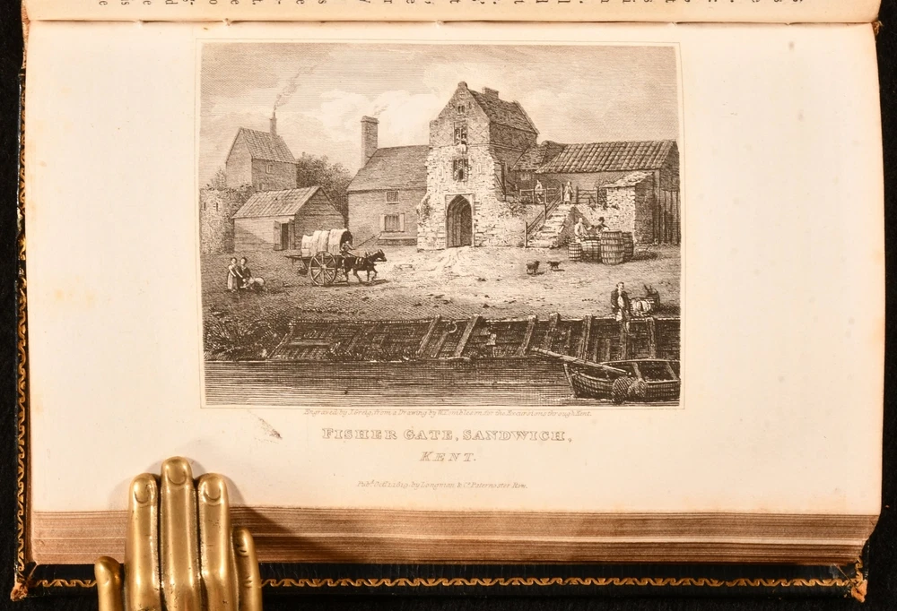 Click here to see our other books! Excursions Through Ireland, Kent and Sussex: Comprising Brief Historical and Topographical Delineations; Together with Descriptions of the Residences of the Nobility and Gentry, Remains of Antiquity, and Other Interesting Subjects of Curiosity Forming a Complete Guide for the Traveller & Tourist. [Thomas Cromwell] [1820]-22 Longman, Hurst, Rees, Orme, and Brown : London 6.5" by 4" 216; 201; 216; 216pp. SUMMARY Four volumes from Thomas Cromwell's 'Excursions' series, including Kent, Sussex and two volumes in Ireland, illustrated throughout and bound in full straight grain morocco. First Edition,Folding Maps,Illustrated,Leather Binding Overall Condition: Good This book weighs 1 KG when packed UK Postage: £ 3.99 US Postage: £ 22.99 EU Postage : £ 16.99 European Postage: £ 17.99 Asia Postage: £ 22.99 Worldwide Postage: £ 28.99 DESCRIPTION Four volumes. Bound in full straight grain morocco. Illustrated with frontispieces, engraved title pages and folding plates included in forty-eight plates to 'Sussex', forty-eight plates to 'Kent', forty-seven to 'Ireland Volume One' and sixty four to 'Ireland Volume Two'. Collated, lacking two plates to 'Sussex' and 'Kent' and lacking a number of plates to both volumes of 'Ireland', with no collation available for those volumes due to lack of title page. This four volume set features works from Thomas Cromwell's series of 'Excursions' through various counties, with this set being on Kent, Sussex and Ireland. 'Excursions in Ireland' undated, dated by copies held on Jisc. CONDITION Bound in full straight grain morocco. Lacking title pages to both volumes of 'Ireland' and the Externally very smart with fading to the spines, bumping and rubbing to the extremities, slight rubbing to the joints and raised bands and the odd slight mark. Very minor offsetting to the extremities of the endpapers with a past owner's name to the free endpaper. Internally generally firmly bound with plate facing pp.13 tender and lacking plates to all volumes. Pages age lightly toned to the extremities with occasional spotting, heavier to the front and rear. Overall Condition: Good GLOSSARY OF TERMS Overall Condition (Dustwrapper condition rating is shown after that for the book itself, where a dustwrapper is present) Fine - Very well preserved copy showing very little wear Very Good Indeed - Only one or two minor faults, really a very attractive copy Very Good - Quite a wide term meaning no major faults but probably several smaller ones often expected given the age of the book, but still a respectable copy Good - Meaning not very good. Some more serious faults as will be described in the condition report under 'condition' Good Only - Meaning one or more faults that could really do with repair Fair - As with good only above but with other faults leaving a compromised copy even after repair Poor - Really bad and possibly seriously incomplete. We only sell books in this condition where their rarity or value makes them attractive none the less. Major defects will be described. GUARANTEE We offer a full money back guarantee on our descriptions. Please ask for details and conditions. We prefer PAYPAL. If you pay via PAYPAL we will post the item off the same or the next working day with the postage you have selected. Please note we cannot accept USD cheques