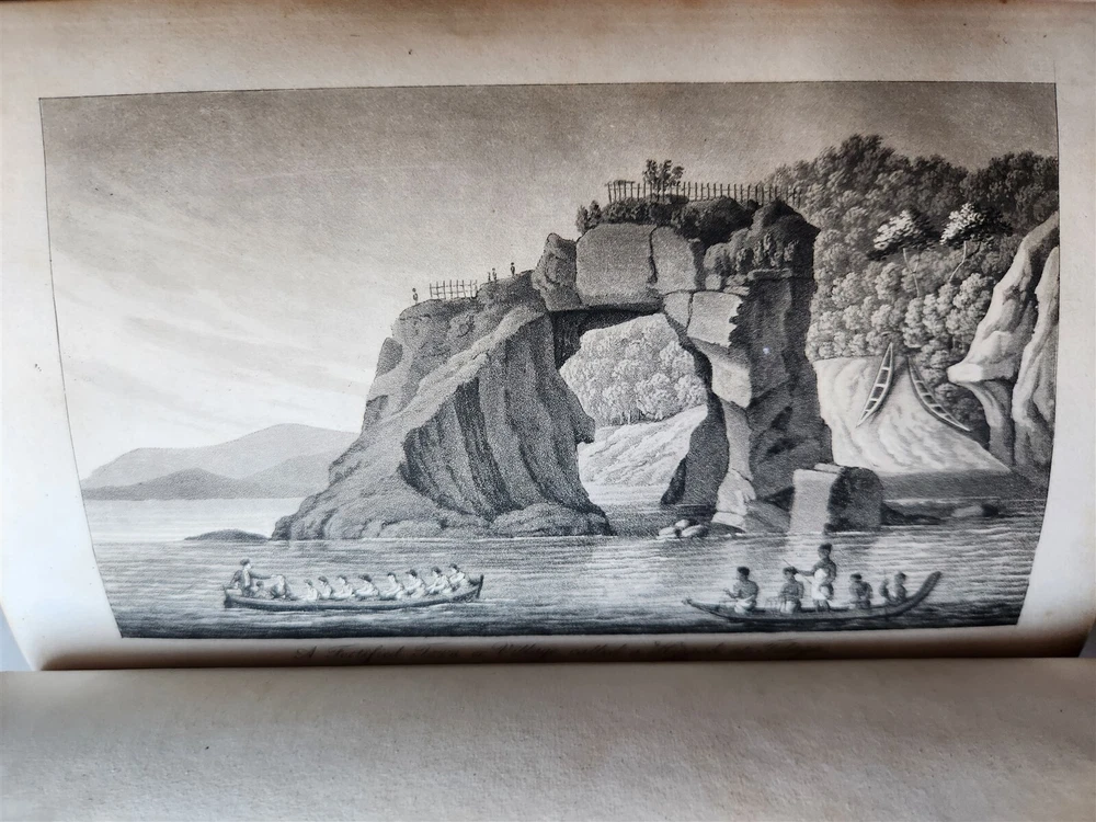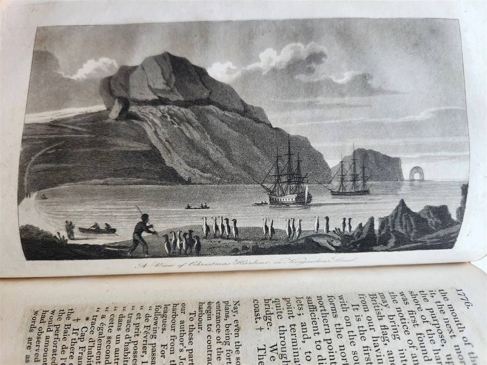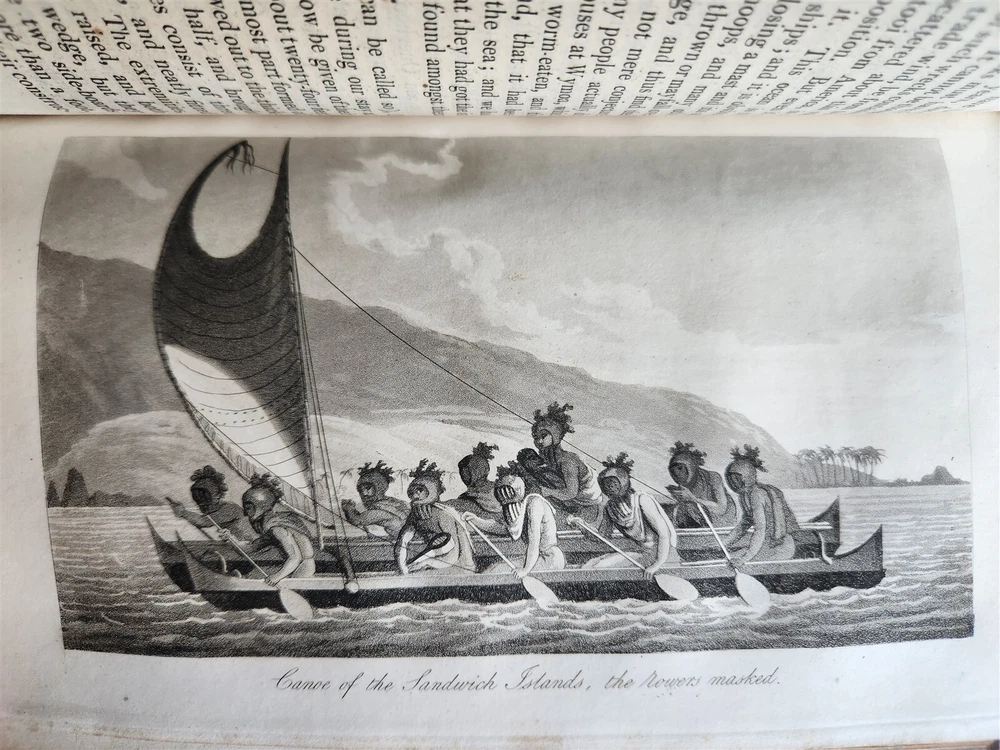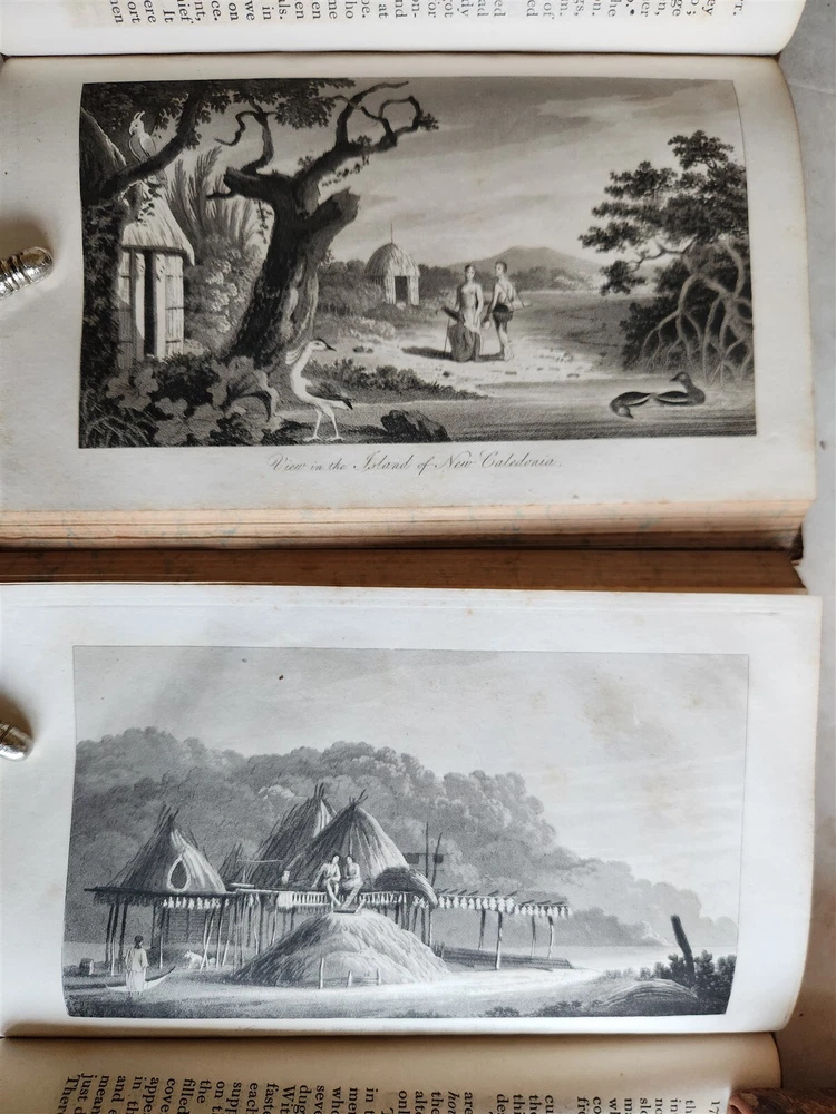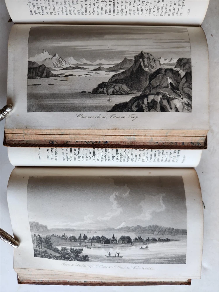 COOK, James THE THREE VOYAGES OF CAPTAIN JAMES COOK Round the World. Complete in Seven Volumes. With Map and Other Plates. Seven volumes London, Longman, Hurst, Rees, Orme, and Brown, 1821 Size 5.5 by 8.5" Illustrated with engraved plates and folding map Original polished calf, rebacked preserving original spines (bit worn), marbled edges and marbled endpapers. A scarce and attractive set: new edition of the full texts of the original published accounts of Cook’s three voyages Very good interior condition Text in French ==================================== Please see my other auctions Thank You Refund Policy: We will issue a FULL REFUND, 100% money back if you are not satisfied with your purchase. Items must be returned to us within 20 days in order to receive a refund or replacement. Buyer is responsible for shipping costs. Powered by SixBit's eCommerce Solution