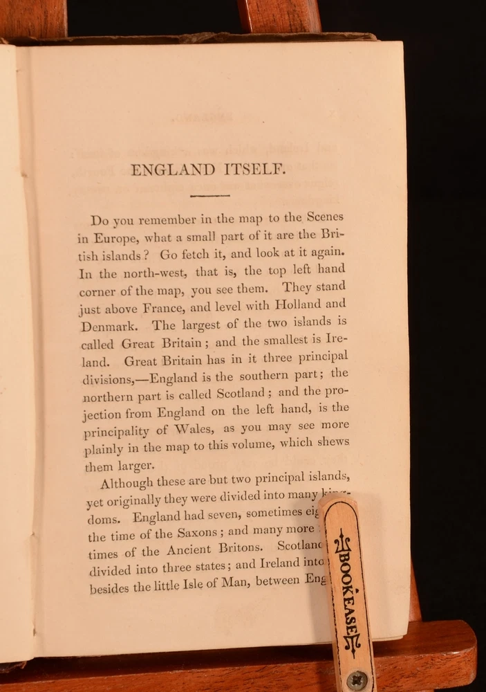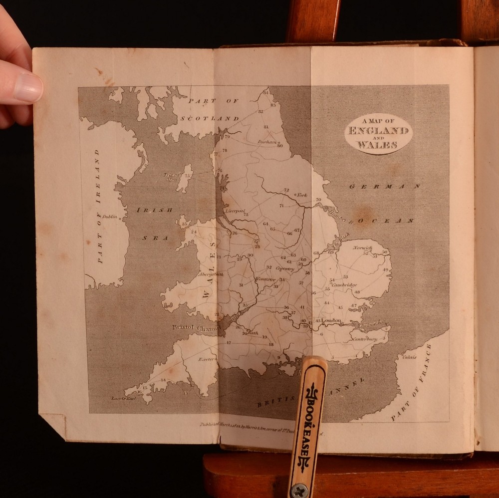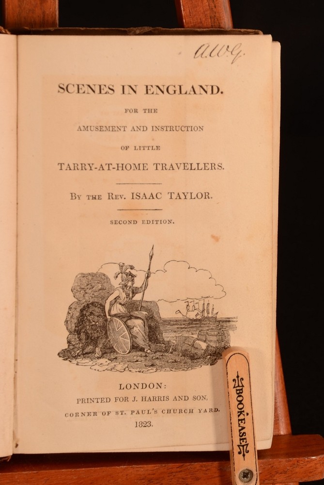 Click here to see our other books! Scenes in England. For the Amusement and Instruction of Little Tarry-at-Home Travellers Isaac Taylor 1823 J. Harris and Son : London 6.5" by 4" xvi, 152pp SUMMARY An uncommon copy of 'Scenes in England' by Isaac Taylor, illustrated throughout with a folding map frontispiece. A charming topographical guide for children. Early Edition,Folding Maps,Illustrated,Leather Binding,Publishers' Original Binding,Uncommon Overall Condition: Good This book weighs 0.5 KG when packed UK Postage: £ 3.99 US Postage: £ 15.99 EU Postage : £ 13.99 European Postage: £ 14.99 Asia Postage: £ 18.99 Worldwide Postage: £ 19.99 DESCRIPTION The second edition of this work. 'Scenes in England' is an interesting early nineteenth century travel book, looking at various places around England and Wales, with recommendations of what to do whilst visiting. Some of the places included are Buckinghamshire, Staffordshire, Dorestshire, Cornwall, Oxford, Essex, and Lincolnshire. Isaac Taylor was a historical writer, artist, and inventor. He started out his career by illustrating some of his sister's, Jane Taylor's, books, Jane being the person who wrote the words for 'Twinkle Twinkle Little Star'. Isaac also wrote 'The Elements of Thought', 'The Process of Historical Proof', 'Home Education', and 'The Physical Theory of Another Life'. With a folding frontispiece of a map of England and Wales and a further twenty-eight plates. Collated from Copac, complete. CONDITION In the original publisher's quarter roan binding with paper to the boards. Externally, sound. Light rubbing to the boards, causing a little discolouration. A little bumping to the extremities. Slight rubbing to the joints and to the spine. Rear hinge is starting but firm. Internally, firmly bound. Pages are bright and generally clean with the odd spot, and with light offsetting to some pages due to the plates. Prior owner's ink inscription to the title page, 'A. W. G'. Overall Condition: Good GLOSSARY OF TERMS Overall Condition (Dustwrapper condition rating is shown after that for the book itself, where a dustwrapper is present) Fine - Very well preserved copy showing very little wear Very Good Indeed - Only one or two minor faults, really a very attractive copy Very Good - Quite a wide term meaning no major faults but probably several smaller ones often expected given the age of the book, but still a respectable copy Good - Meaning not very good. Some more serious faults as will be described in the condition report under 'condition' Good Only - Meaning one or more faults that could really do with repair Fair - As with good only above but with other faults leaving a compromised copy even after repair Poor - Really bad and possibly seriously incomplete. We only sell books in this condition where their rarity or value makes them attractive none the less. Major defects will be described. GUARANTEE We offer a full money back guarantee on our descriptions. Please ask for details and conditions. We prefer PAYPAL. If you pay via PAYPAL we will post the item off the same or the next working day with the postage you have selected. Please note we cannot accept USD cheques