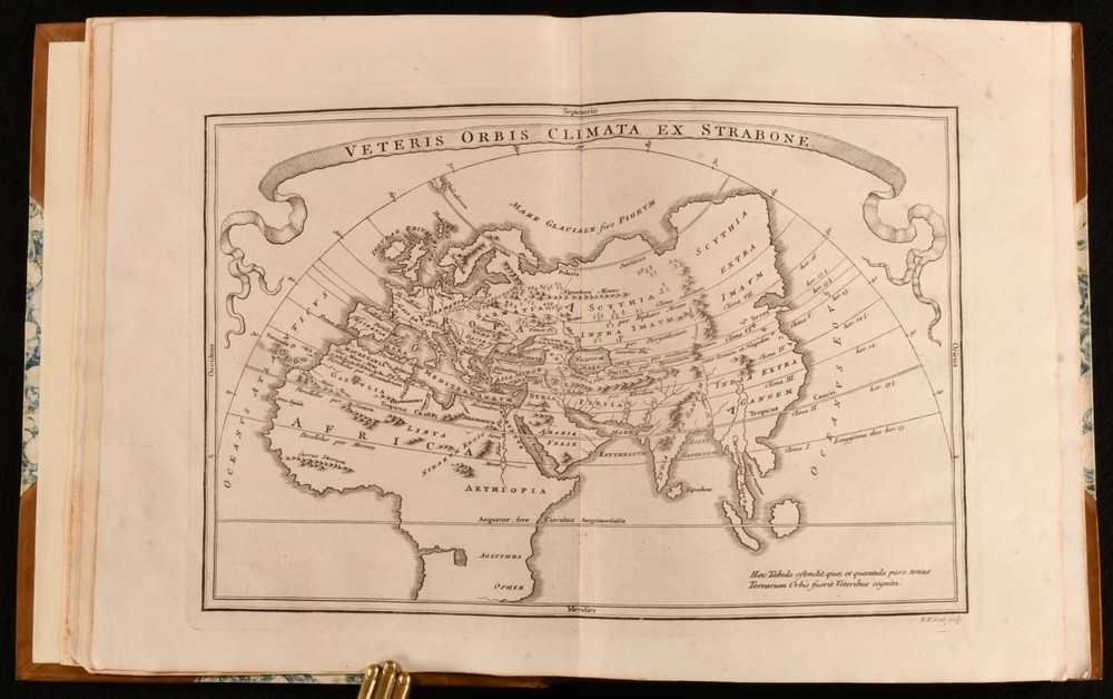 Click here to see our other books! Geographia Antiqua: Being a Set of Maps of Antient Geography, Engraved from Cellarius. Andreas Cellarius 1824 C. & J. Rivington : London 10.5" by 9" [70] pp SUMMARY A 'New Edition' of Cellarius's guide to the ancient world, consisting of thirty-three copper plate double page maps, titled in Latin, and in a lovely half calf binding. Illustrated,Leather Binding,Rebound Overall Condition: Near Fine This book weighs 1 KG when packed UK Postage: £ 3.99 US Postage: £ 22.99 EU Postage : £ 16.99 European Postage: £ 17.99 Asia Postage: £ 22.99 Worldwide Postage: £ 28.99 DESCRIPTION Consisting of a double page title page, double page contents leaf, and thirty-three double page engraved plates. Collated, complete. Cellarius's maps include depictions of the interior of Africa, Egypt, Thrace, Italy and Mesopotamia. The work of Dutch-German cartographer and cosmographer Andreas Cellarius, best known for his 1660 major star atlas, 'Harmonia Macrocosmica'. With the inscriptions of John Fressman and M. Perkins, dated March 22nd 1827, to the recto of the title page. With the subtitle 'Designed for the use of schools, and of gentlemen who make the antient writers their delight or study', this is a charming visual guide to the geography of the ancient world. CONDITION Rebound in half calf, with marbled paper covered boards, and endpapers renewed. Externally, fine. Contemporary inscription to recto of title page. Internally, firmly bound. The odd spot and instances of light handling marks throughout, with pages otherwise clean and bright. Overall Condition: Near Fine GLOSSARY OF TERMS Overall Condition (Dustwrapper condition rating is shown after that for the book itself, where a dustwrapper is present) Fine - Very well preserved copy showing very little wear Very Good Indeed - Only one or two minor faults, really a very attractive copy Very Good - Quite a wide term meaning no major faults but probably several smaller ones often expected given the age of the book, but still a respectable copy Good - Meaning not very good. Some more serious faults as will be described in the condition report under 'condition' Good Only - Meaning one or more faults that could really do with repair Fair - As with good only above but with other faults leaving a compromised copy even after repair Poor - Really bad and possibly seriously incomplete. We only sell books in this condition where their rarity or value makes them attractive none the less. Major defects will be described. GUARANTEE We offer a full money back guarantee on our descriptions. Please ask for details and conditions. We prefer PAYPAL. If you pay via PAYPAL we will post the item off the same or the next working day with the postage you have selected. Please note we cannot accept USD cheques