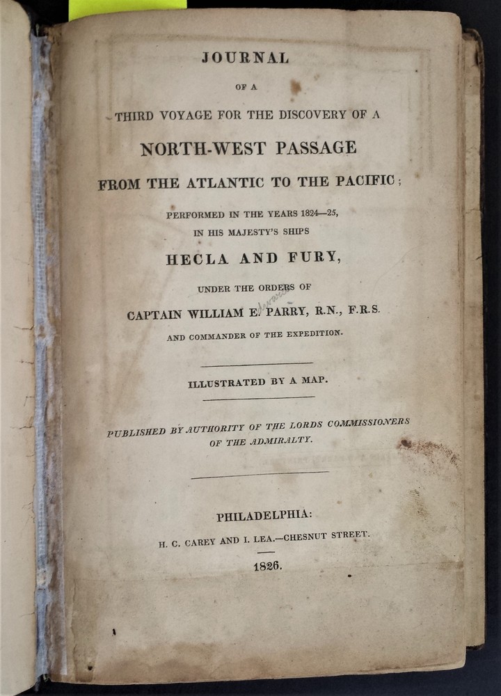 1824 antique TRAVEL parry NORTH WEST PASSAGE hecla fury ship w MAP 1st AM ED SCROLL DOWN for MORE PHOTOS in DESCRIPTION Click HERE to view or search ANTIQUE.COTTAGE listings. This listing is for the 1st American edition, with fold-out map of Prince Regent's Inlet, Re-Purveyed 1824-1825, book . 8.5"x5.75", 232 pages. JOURNAL of a THIRD VOYAGE FOR THE DISCOVER OF A NORTH-WEST PASSAGE FROM THE ATLANTIC TO THE PACIFIC performed in the years 1824-25 In his Majesty's ships Hecla and Fury under the orders of Captain William Edwards Parry, R.N. F.R.S. and Commander of the Expedition illustrated by a Map published by authority of the Lords Commissioners of the Admirality Philadelphia: H. C. carey and I. Lea - Chestnut Street 1826 Please note from this edition that: "The English Edition of the Work is accompanied by series of Meteorlogical Tables which would greatly increase the bulk, and of course the expense of this Edition, if appended thereto. On mature reflection, the Publishers have judged it advisable to omit them, as not being of general utility proportioned to the additional expense of the purchasers. The public Libraries contain the Quarto Edition of the Voyage, where the curious may consult them." CONDITION : Book has been rebound, looks like and early repair, with title page cut and pasted on another early paper. Missing endpapers . Map has some splits at folds, book tape repair on back. Map and book with other antique wear. See listing description and photos. - International buyers are responsible to pay VAT or other Taxes to their countries as required. - eBAY collects and remits sales tax on behalf of several states. If you are a dealer, you can write to eBay to file a form to become tax exempt. LOC: LOC2: BOOKBOX17-TMK Powered by SixBit's eCommerce Solution