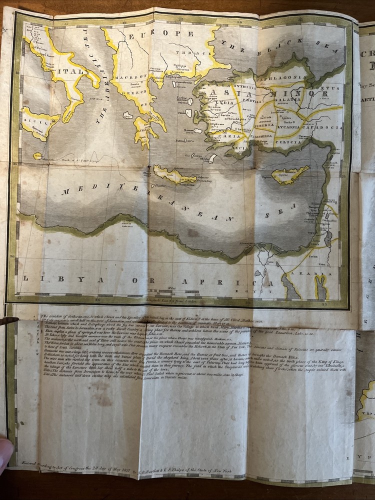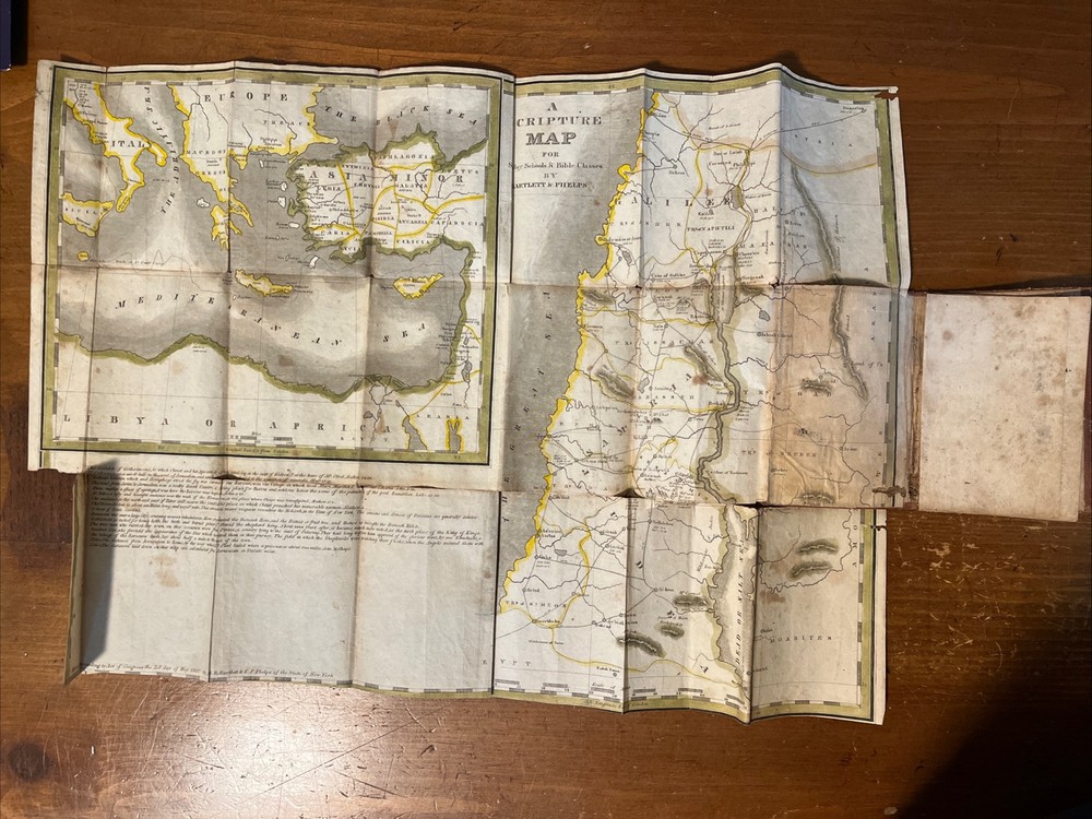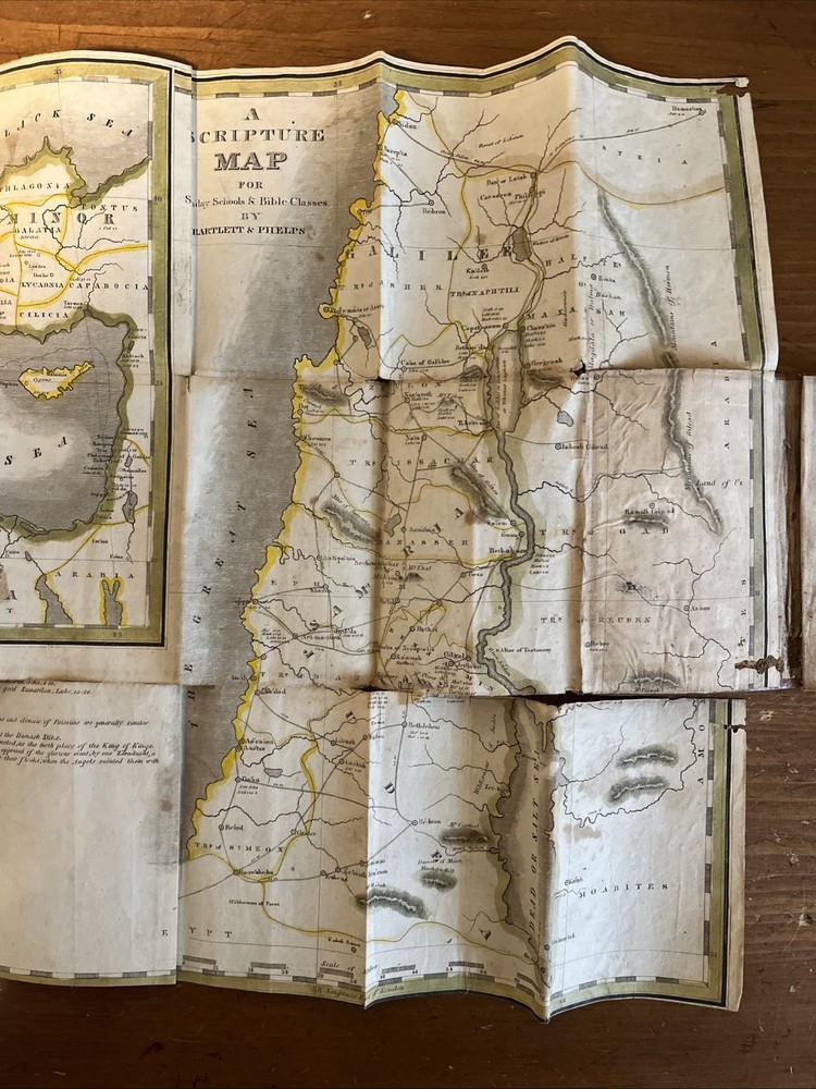Fold out map 18 x 12.5 inches with obvious tears etc. but complete. Housed in leather binder, 4.25 x 3.25 inches. 16 pages....