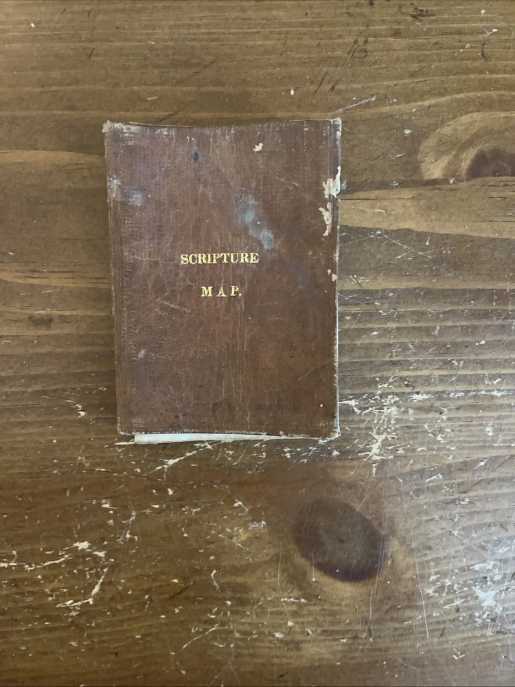 Fold out map 18 x 12.5 inches with obvious tears etc. but complete. Housed in leather binder, 4.25 x 3.25 inches. 16 pages.