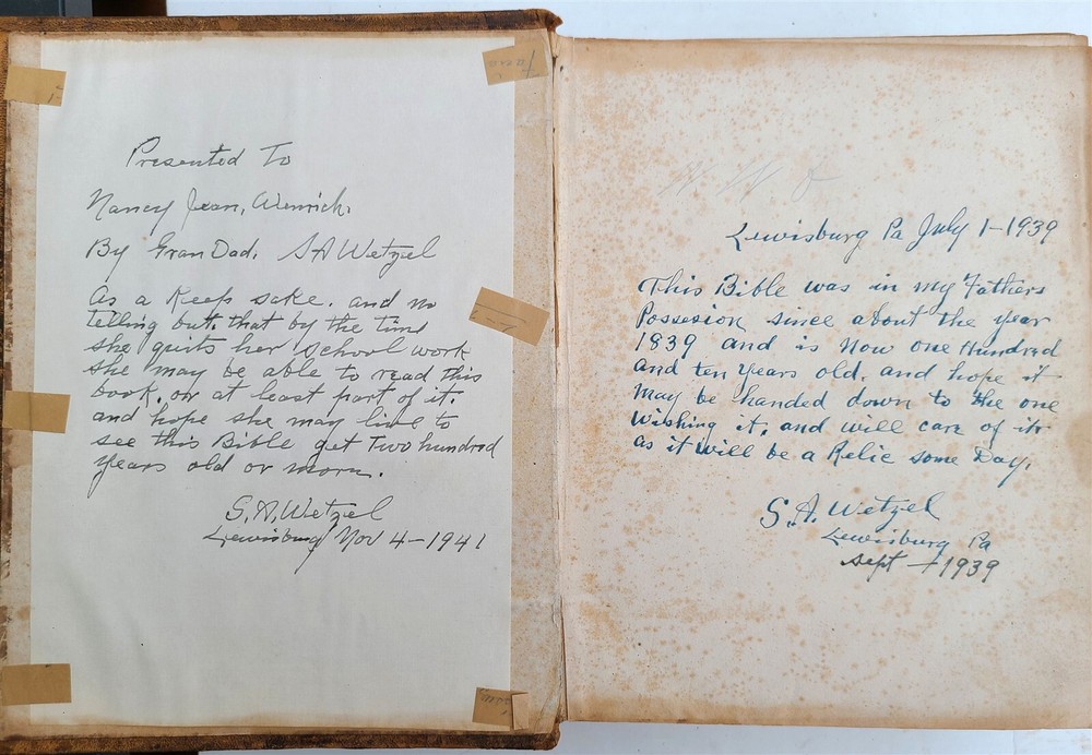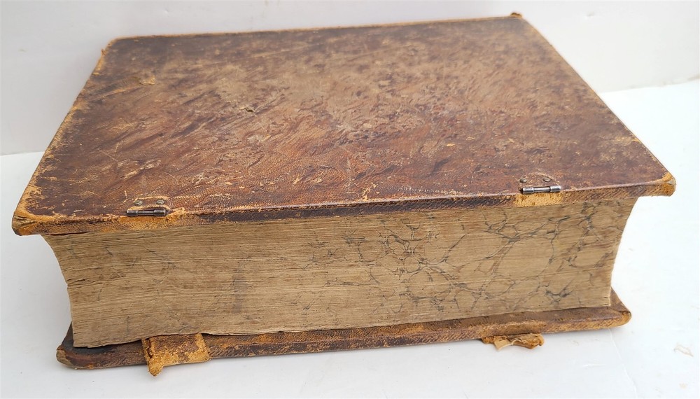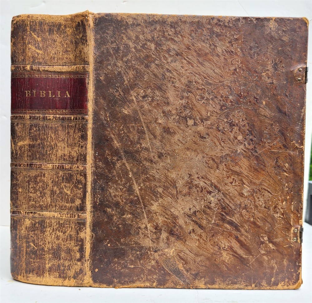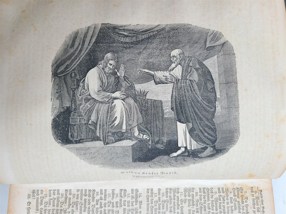 BIBLE OLD AND NEW TESTAMENT Illustrated Original leather binding Lacks 1 clasp Good interior condition, wear of the leather, foxing, some toning. Size 9 by 11" Thickness 3.5" Text in German ---------------- Please see my other auctions Thank You Refund Policy: We will issue a FULL REFUND, 100% money back if you are not satisfied with your purchase. Items must be returned to us within 20 days in order to receive a refund or replacement. Buyer is responsible for shipping costs. Powered by SixBit's eCommerce Solution