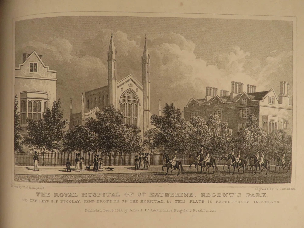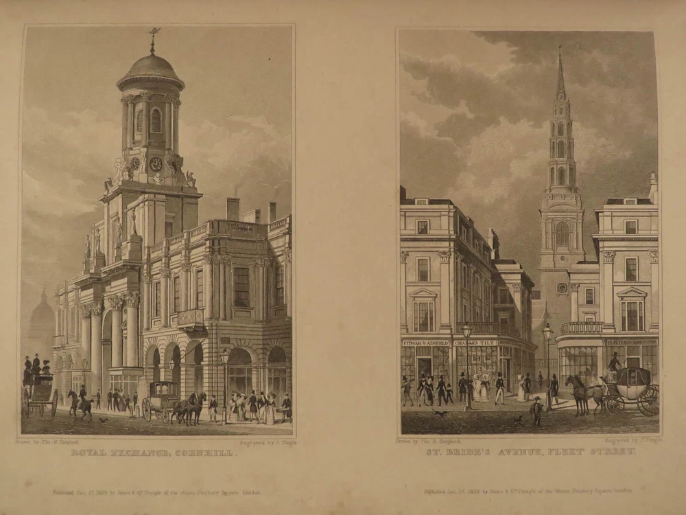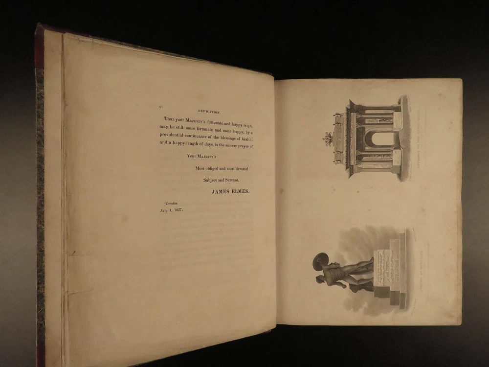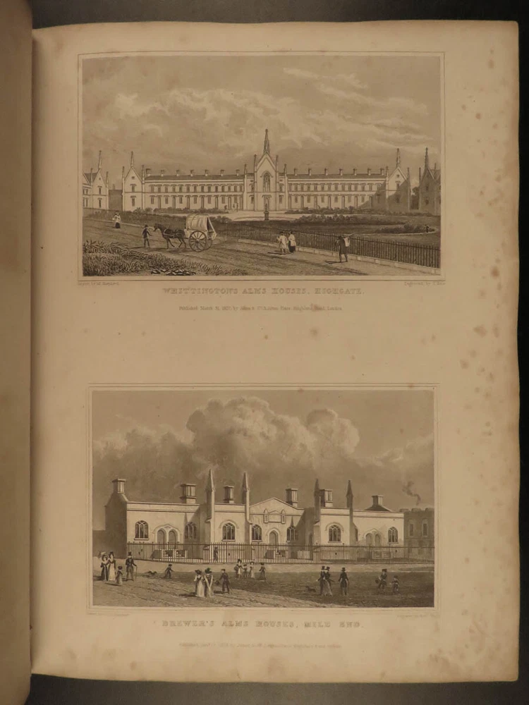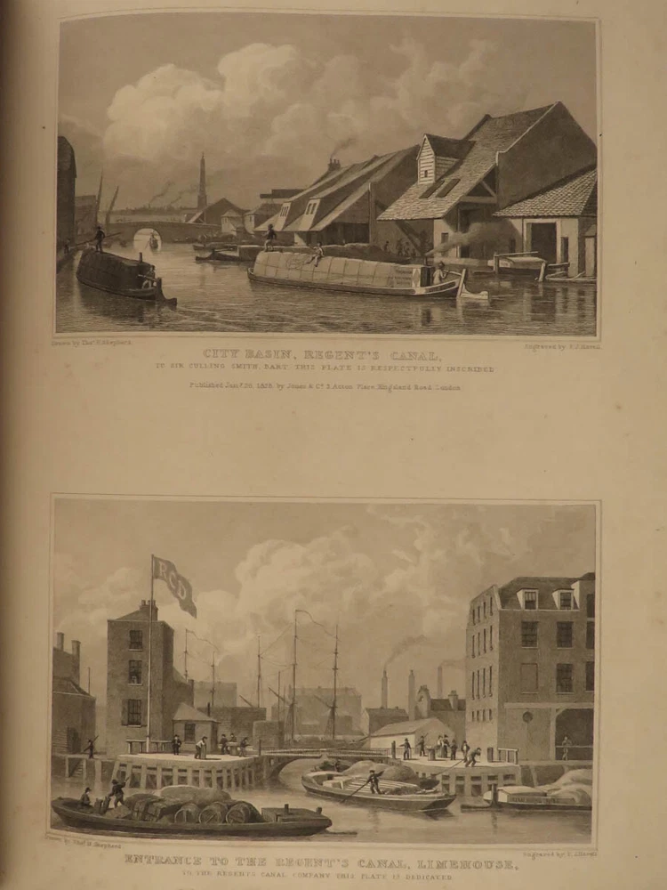 1829 LONDON Architecture Metropolitan Improvements Engravings Cathedrals MAPS Elmes and Shepherd’s “ Metropolitan Improvements ” is an early 19 th -century illustrated history of London. Illustrator Thomas Shepherd supplied this book with numerous engravings of iconic London locations – parks, palaces, cathedrals and churches, bridges and streets, rivers, institutions, and other environs. This 1829 printing includes nearly 160 views on 81 steel-engraved plates – a remarkable illustrated history of London! Item number: #15157 Price: $750 ELMES, James Metropolitan Improvements; or London in the Nineteenth century; displayed in a series of Engravings of the new buildings, improvements London: Published by Jones & Co. and sold by Simkin and Marshall, 1829. Details : · Collation: Complete with all pages o vi, 172, ii o 81 engraved plates · Language: English · Binding: Leather; tight and secure · Size : ~10.5in X 8.75in (27.5cm x 22.5cm) Our Guarantee: Very Fast. Very Safe. Free Shipping Worldwide. Customer satisfaction is our priority! Notify us with 7 days of receiving, and we will offer a full refund without reservation! 15157