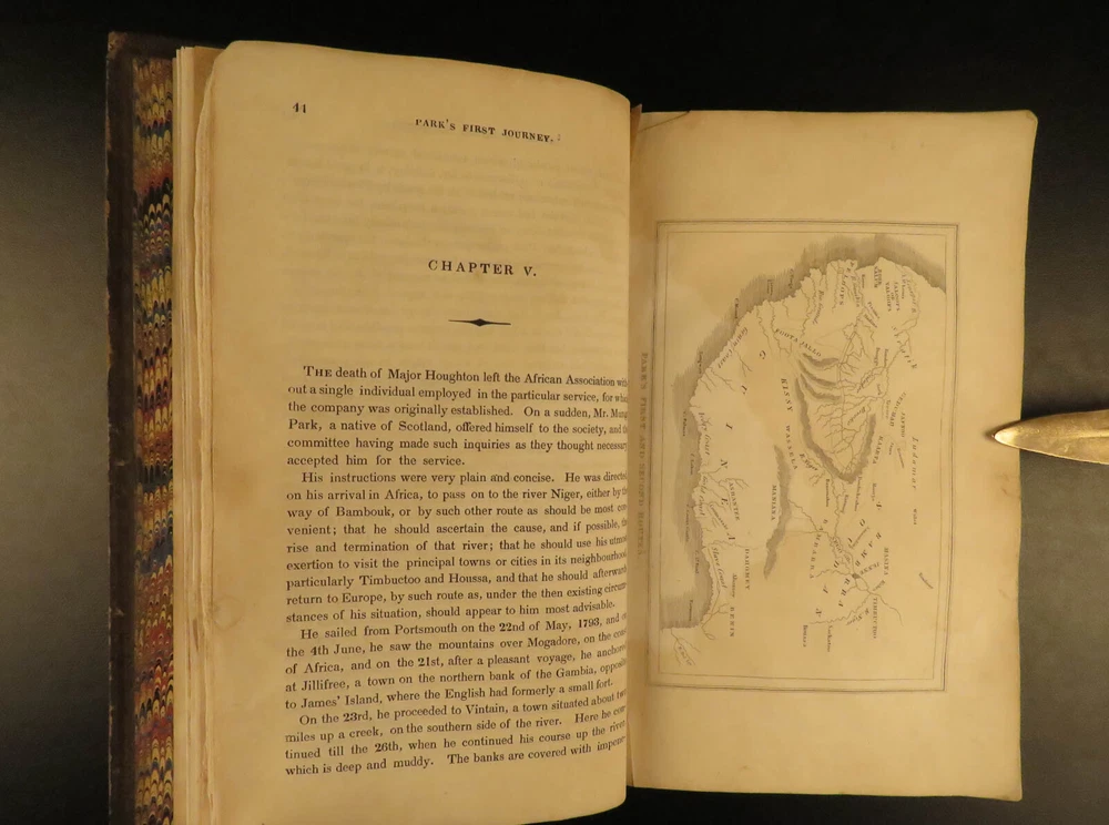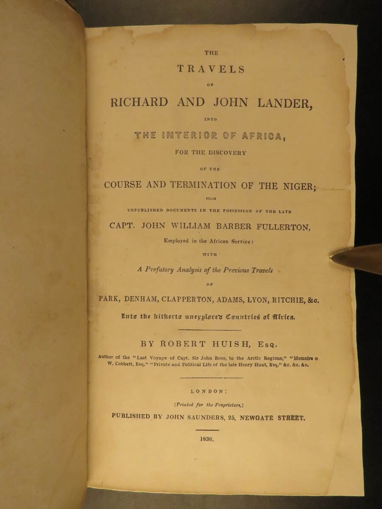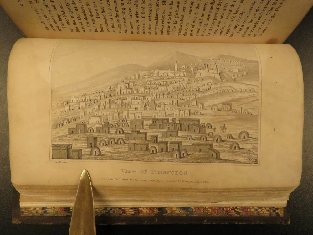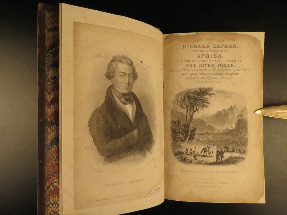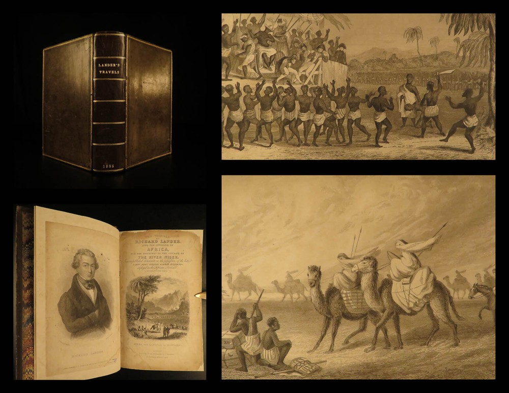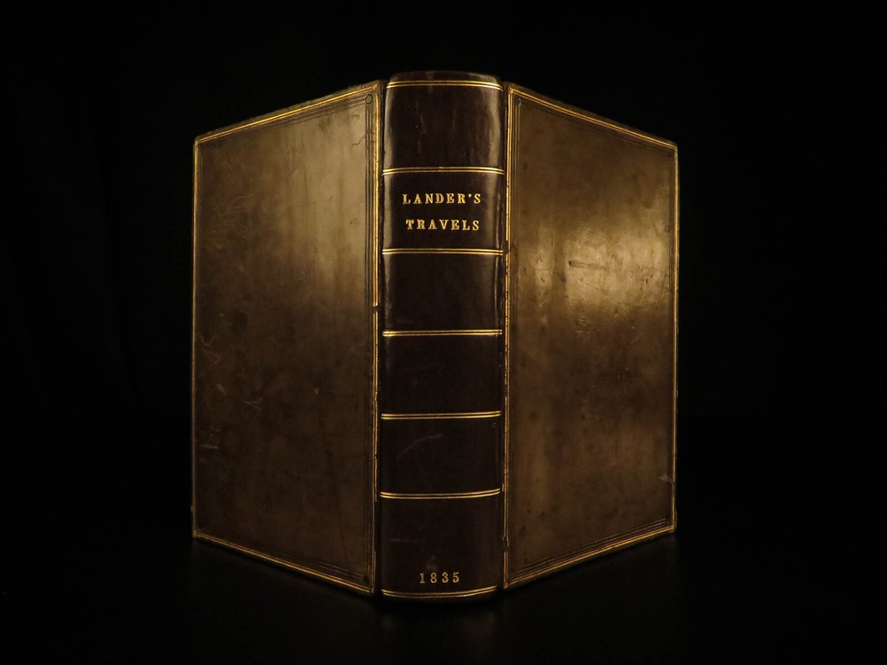 1836 AFRICA 1 ed Lander Niger River Exploration Illustrated Maps Slavery Richard Lander was an English explorer who made his name for his voyages into Africa. After nearly a decade of African voyages, the British government sent Richard and his brother John in 1830 to explore the Niger River. While at the river delta, they were captured by local tribes for a short time. Their voyage did yield grand results – they discovered the Niger River course and outlets. The specifics of the journey were written and published under various titles, including ‘ The Travels of Richard and John Lander’ . This work is a fascinating account of African culture, geography, and 19 th -century exploration. This 1836 first edition includes nine fine, full-page engravings, including maps and views of local tribes. Item number: #13180 Price: $599 LANDER, Richard & John The travels of Richard and John Lander, into the interior of Africa : for the discovery of the course and termination of the Niger ; from unpublished documents in the possession of the late Capt. John William Barber Fullerton ... with a prefatory analysis of the previous travels of Park, Denham, Clapperton, Adams, Lyon, Ritchie, &c. into the hitherto unexplored countries of Africa. London : John Saunders, 1836. First edition. Details : · Collation: Complete with all pages o 782 o 9 engraved plates · Provenance: Armorial Bookplate – Philip John Budworth, Esq. o Captain Philip John Budworth (1819 – 1885), of Greensted Hall, was an English magistrate and one-time Deputy Lieutenant of Essex. · Language: English · Binding: Leather; tight & secure · Size : ~8.75in X 5.5in (22cm x 14cm) Our Guarantee: Very Fast. Very Safe. Free Shipping Worldwide. Customer satisfaction is our priority! Notify us with 7 days of receiving, and we will offer a full refund without reservation! 13180