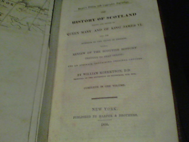 1839 The History of Scotland During the Reigns of Queen Mary and of King James VI till his accession to the Crown of England, Vol 3 Scotland and India by William Robertson D.D. , pub. Harper & Bros. 1839, full leather hardcover, 5x9”, section 1, fold-out map , copperplate engravings, 460 pages, section 2, Historical Disquisition concerning the knowledge which the ancients had of India, , by William Robertson D.D. , pub. Harper & Bros. 1839, 146 pages, cover has some rubbings else good condition, some foxing inside, and prev. owners notes names inside front cover. Hardcover book shipping wt. 2 lbs. e9