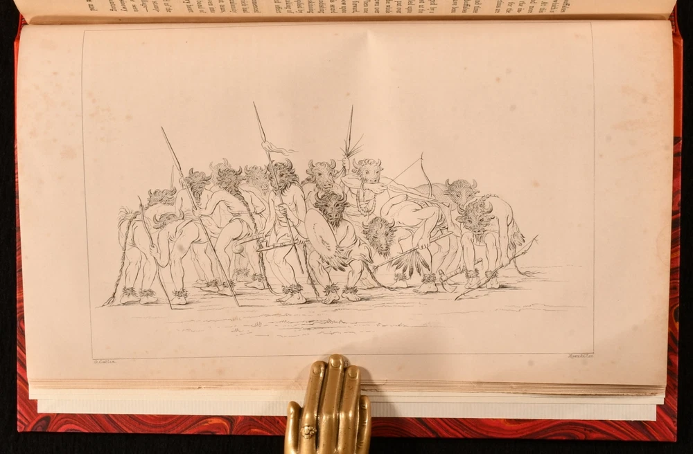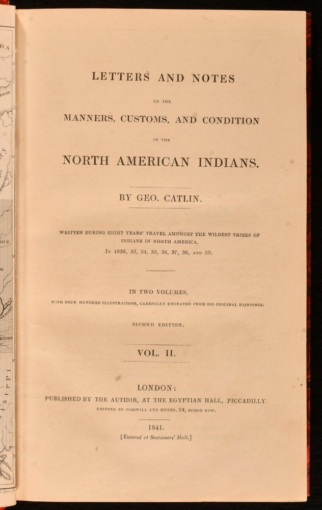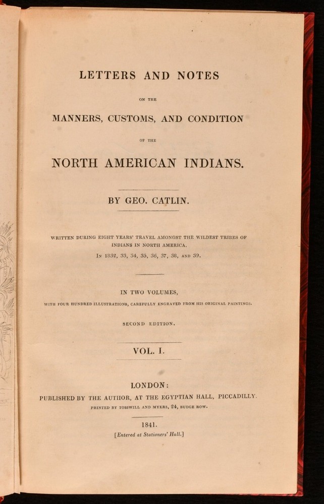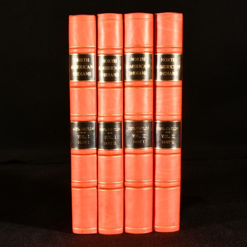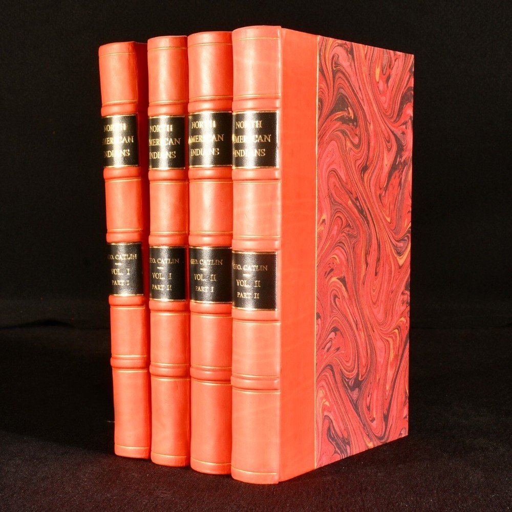 Click here to see our other books! Letters and Notes on the Manners, Customs, and Condition of the North American Indians Geo. Catlin 1841 Published by the Author : London 10" by 6.5" viii [1], 2-140; 141-264; viii [1], 2-134; 266pp SUMMARY A brightly bound example of the second edition of George Catlin's insights into the lives of American Indians, based upon his 1830s travels amongst them. Early Edition,Folding Maps,Illustrated,Leather Binding,Rebound Overall Condition: Very Good Indeed This book weighs 3 KG when packed UK Postage: £ 3.99 US Postage: £ 36.99 EU Postage : £ 25.99 European Postage: £ 27.99 Asia Postage: £ 47.99 Worldwide Postage: £ 69.99 DESCRIPTION The two volume second edition of this work, bound in four volumes. Published in the same year as the first edition. Illustrated with three-hundred and nine engravings on one-hundred and seventy-seven plates, and with a folding map to volume I, and two single page plates to volume II. Collated, complete. An extensive account of the Plains Indians in North America by George Catlin, exploring their culture, costumes, and manners. Compiled from letters and notes kept by the author during his eight years' travels among their tribes from 1832 to 1839, in which he shares his experiences and observations. Volume I of this work is split into two volumes, as Volume I Part I and Volume I Part II; Volume II of this work is split into two volumes, as Volume II Part I, and Volume II Part II. The first part of each volume retains the original title page, with a half title - not original to the work - to the start of the second part of each volume. With library markings to the verso of title pages and half titles, and no further library markings. The second edition of this truly impressive portrait of a native culture. CONDITION Rebound in half calf, with marbled paper covered boards. Externally, exceptionally fine. Endpapers renewed. Internally, firmly bound. Library markings to verso of each title page. First folding map of volume I split at fold, with one portion loosely inserted. Further tape repair to fold of the same map. Neat repairs to final leaf of volume II, part II. Tape repair to margin of page 155-156 of volume I. Pages generally bright, with spotting throughout, most concentrated to plates and pages surrounding them. Overall Condition: Very Good Indeed GLOSSARY OF TERMS Overall Condition (Dustwrapper condition rating is shown after that for the book itself, where a dustwrapper is present) Fine - Very well preserved copy showing very little wear Very Good Indeed - Only one or two minor faults, really a very attractive copy Very Good - Quite a wide term meaning no major faults but probably several smaller ones often expected given the age of the book, but still a respectable copy Good - Meaning not very good. Some more serious faults as will be described in the condition report under 'condition' Good Only - Meaning one or more faults that could really do with repair Fair - As with good only above but with other faults leaving a compromised copy even after repair Poor - Really bad and possibly seriously incomplete. We only sell books in this condition where their rarity or value makes them attractive none the less. Major defects will be described. GUARANTEE We offer a full money back guarantee on our descriptions. Please ask for details and conditions. We prefer PAYPAL. If you pay via PAYPAL we will post the item off the same or the next working day with the postage you have selected. Please note we cannot accept USD cheques