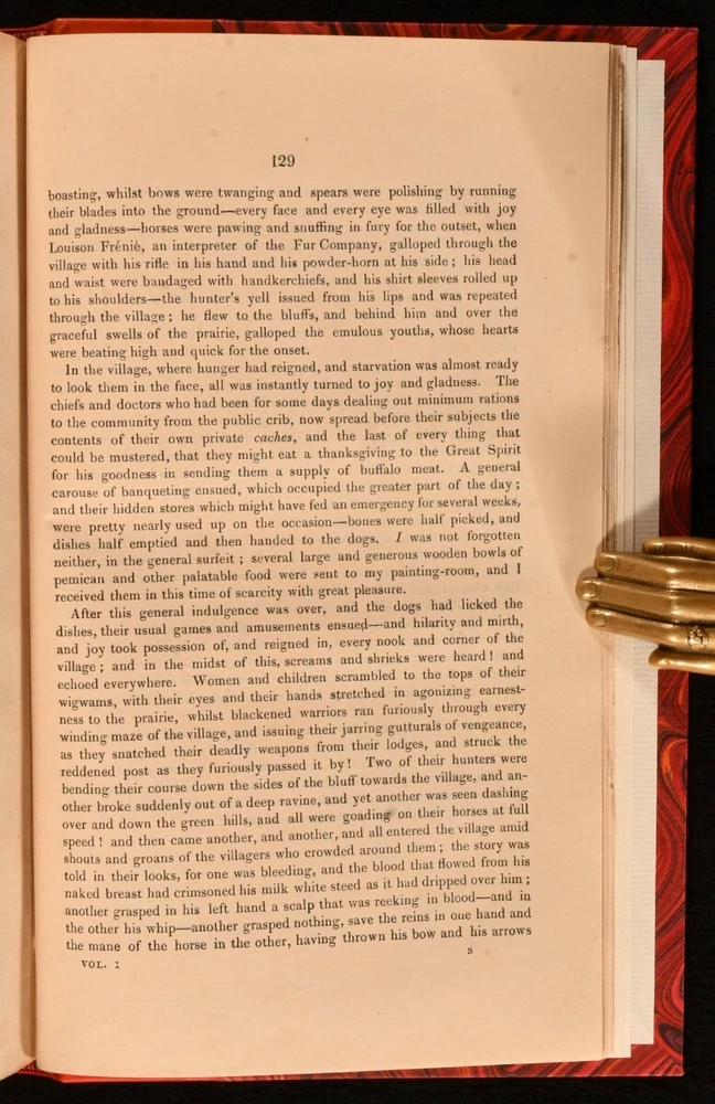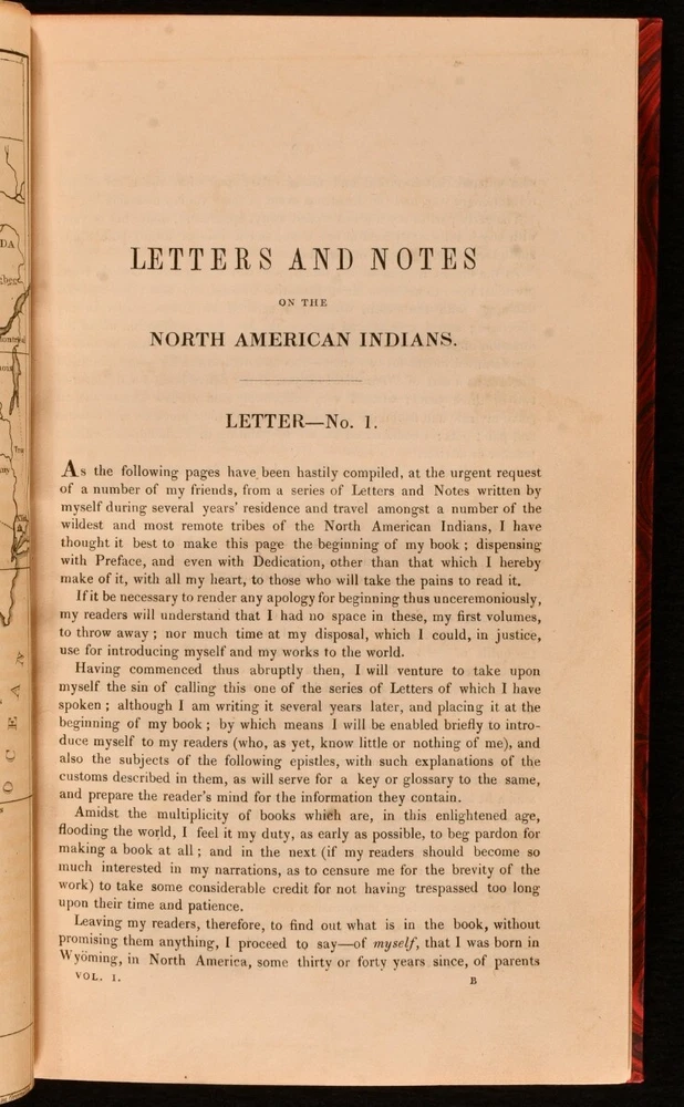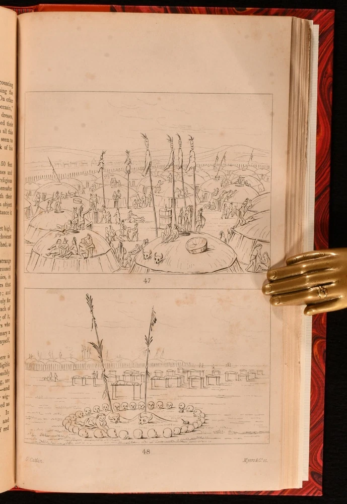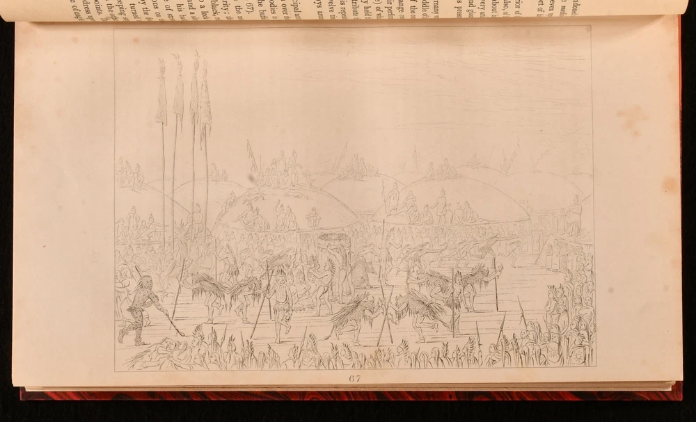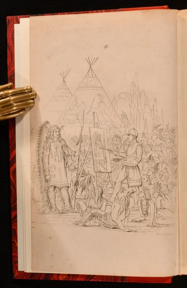 Click here to see our other books! Letters and Notes on the Manners, Customs, and Condition of the North American Indians Geo. Catlin 1841 Published by the Author : London 10" by 6.5" viii [1], 2-140; 141-264; viii [1], 2-134; 266pp SUMMARY A brightly bound example of the second edition of George Catlin's insights into the lives of American Indians, based upon his 1830s travels amongst them. Early Edition,Folding Maps,Illustrated,Leather Binding,Rebound Overall Condition: Very Good Indeed This book weighs 3 KG when packed UK Postage: £ 3.99 US Postage: £ 36.99 EU Postage : £ 25.99 European Postage: £ 27.99 Asia Postage: £ 47.99 Worldwide Postage: £ 69.99 DESCRIPTION The two volume second edition of this work, bound in four volumes. Published in the same year as the first edition. Illustrated with three-hundred and nine engravings on one-hundred and seventy-seven plates, and with a folding map to volume I, and two single page plates to volume II. Collated, complete. An extensive account of the Plains Indians in North America by George Catlin, exploring their culture, costumes, and manners. Compiled from letters and notes kept by the author during his eight years' travels among their tribes from 1832 to 1839, in which he shares his experiences and observations. Volume I of this work is split into two volumes, as Volume I Part I and Volume I Part II; Volume II of this work is split into two volumes, as Volume II Part I, and Volume II Part II. The first part of each volume retains the original title page, with a half title - not original to the work - to the start of the second part of each volume. With library markings to the verso of title pages and half titles, and no further library markings. The second edition of this truly impressive portrait of a native culture. CONDITION Rebound in half calf, with marbled paper covered boards. Externally, exceptionally fine. Endpapers renewed. Internally, firmly bound. Library markings to verso of each title page. First folding map of volume I split at fold, with one portion loosely inserted. Further tape repair to fold of the same map. Neat repairs to final leaf of volume II, part II. Tape repair to margin of page 155-156 of volume I. Pages generally bright, with spotting throughout, most concentrated to plates and pages surrounding them. Overall Condition: Very Good Indeed GLOSSARY OF TERMS Overall Condition (Dustwrapper condition rating is shown after that for the book itself, where a dustwrapper is present) Fine - Very well preserved copy showing very little wear Very Good Indeed - Only one or two minor faults, really a very attractive copy Very Good - Quite a wide term meaning no major faults but probably several smaller ones often expected given the age of the book, but still a respectable copy Good - Meaning not very good. Some more serious faults as will be described in the condition report under 'condition' Good Only - Meaning one or more faults that could really do with repair Fair - As with good only above but with other faults leaving a compromised copy even after repair Poor - Really bad and possibly seriously incomplete. We only sell books in this condition where their rarity or value makes them attractive none the less. Major defects will be described. GUARANTEE We offer a full money back guarantee on our descriptions. Please ask for details and conditions. We prefer PAYPAL. If you pay via PAYPAL we will post the item off the same or the next working day with the postage you have selected. Please note we cannot accept USD cheques