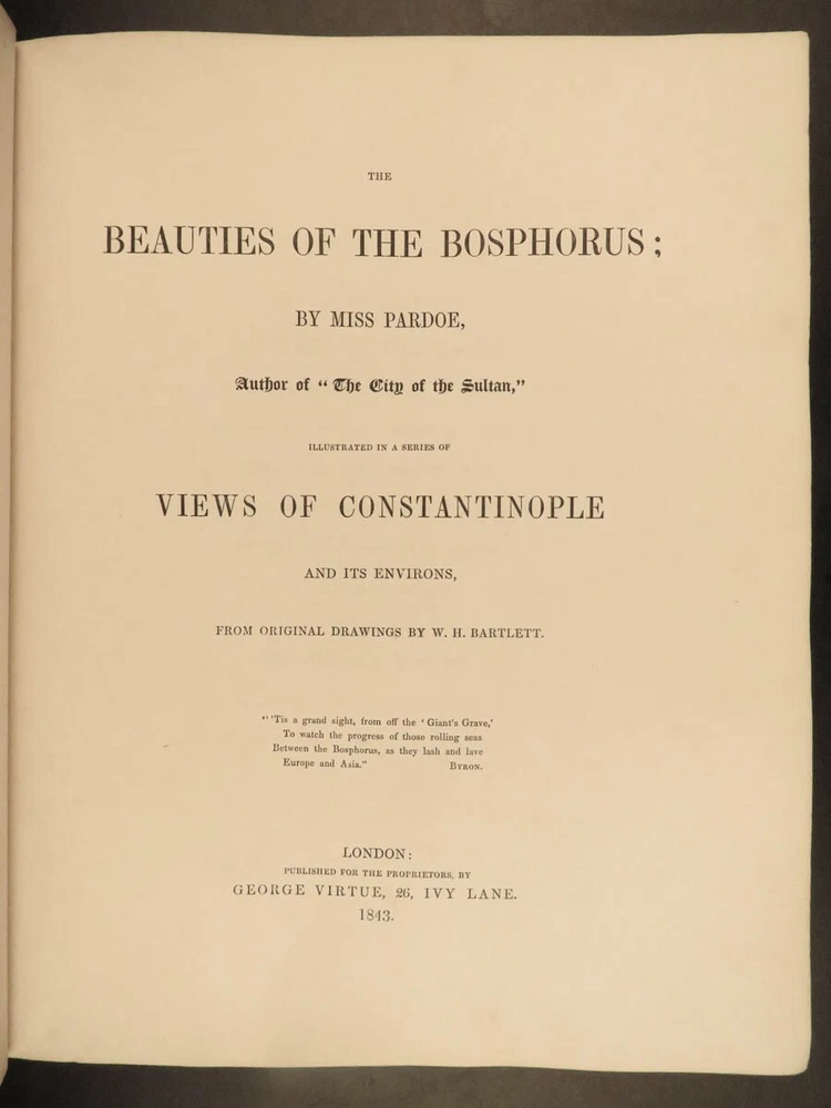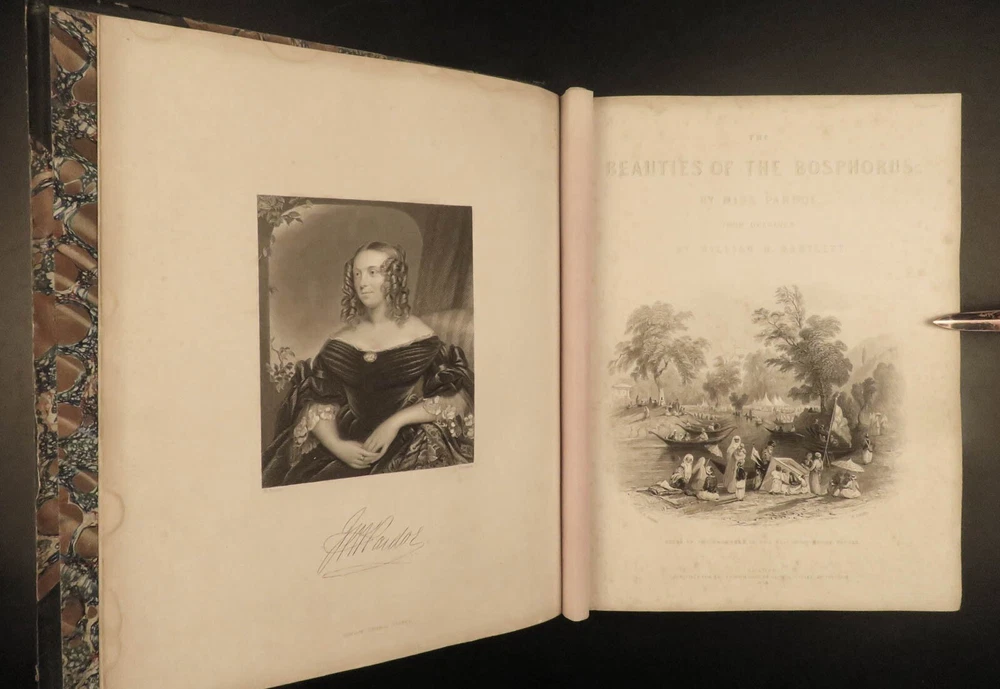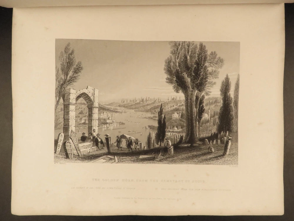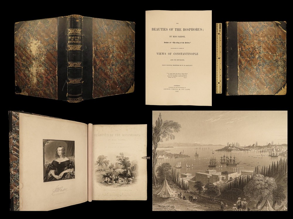1843 Beauties of Bosphorus TURKISH Ottoman Empire Sultan Danube MAP Bartlett ART “ Picturesque Europe ” is was a popular 19 th -century collection of works of art depicting iconic and famous locations from around Europe. This particular tome contains the first series of engravings from the ‘ Beauties of the Bosphorus’ . This tome contains stunning artwork by William Henry Bartlett whose works depicting scenes from Turkey, Turkish culture, mosques, and much more. Curiously, this volume also features a map of Austrian Empire and the Danube. Item number: #21981 Price: $750 PARDOE, Julia [Picturesque Europe] Beauties of the Bosphorus London: Virtue & Co., 1843. Details : · Collation: Complete o [4], 164 o 80 full-page engravings throughout · Provenance: Armorial bookplate – Capt. Sir Geo. Tyler, R.N. K.H. o Sir George Tyler (1792–1862) was a British Royal Navy officer from who became a colonial governor of the island of St. Vincent in the Caribbean and then Conservative Party politician. Motto: NEC ASPERA TERRENT · Language: English · Binding: Leather; tight and secure · Size : ~10.75in X 9in (27cm x 22.5cm) Our Guarantee: Very Fast. Very Safe. Free Shipping Worldwide. Customer satisfaction is our priority! Notify us with 7 days of receiving, and we will offer a full refund without reservation! 21981
