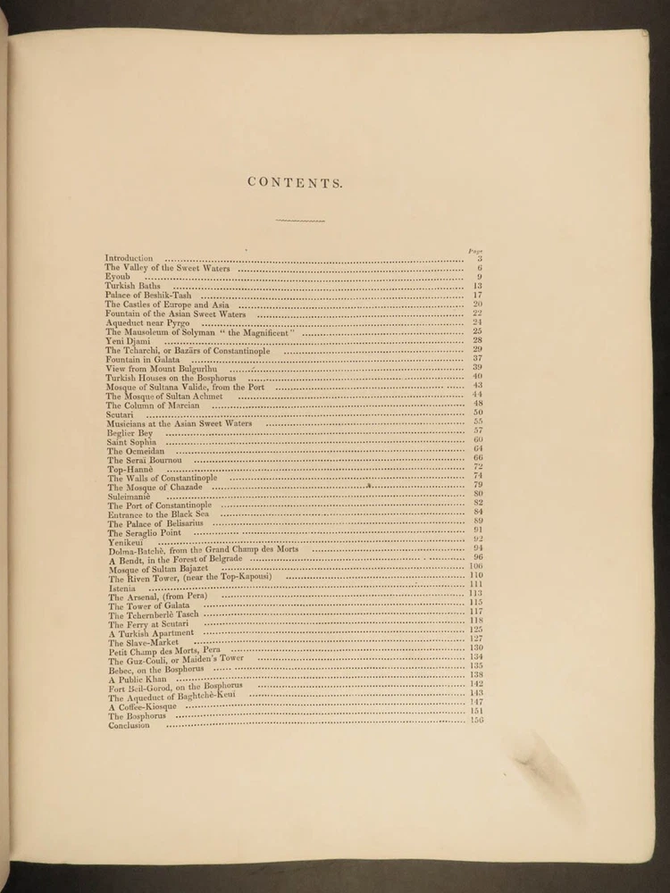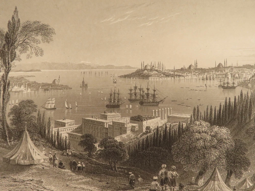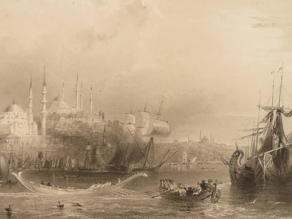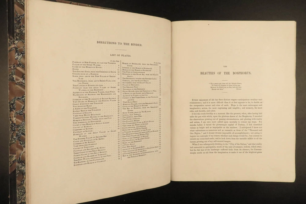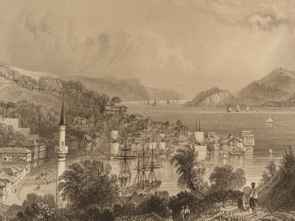 1843 Beauties of Bosphorus TURKISH Ottoman Empire Sultan Danube MAP Bartlett ART “ Picturesque Europe ” is was a popular 19 th -century collection of works of art depicting iconic and famous locations from around Europe. This particular tome contains the first series of engravings from the ‘ Beauties of the Bosphorus’ . This tome contains stunning artwork by William Henry Bartlett whose works depicting scenes from Turkey, Turkish culture, mosques, and much more. Curiously, this volume also features a map of Austrian Empire and the Danube. Item number: #21981 Price: $750 PARDOE, Julia [Picturesque Europe] Beauties of the Bosphorus London: Virtue & Co., 1843. Details : · Collation: Complete o [4], 164 o 80 full-page engravings throughout · Provenance: Armorial bookplate – Capt. Sir Geo. Tyler, R.N. K.H. o Sir George Tyler (1792–1862) was a British Royal Navy officer from who became a colonial governor of the island of St. Vincent in the Caribbean and then Conservative Party politician. Motto: NEC ASPERA TERRENT · Language: English · Binding: Leather; tight and secure · Size : ~10.75in X 9in (27cm x 22.5cm) Our Guarantee: Very Fast. Very Safe. Free Shipping Worldwide. Customer satisfaction is our priority! Notify us with 7 days of receiving, and we will offer a full refund without reservation! 21981