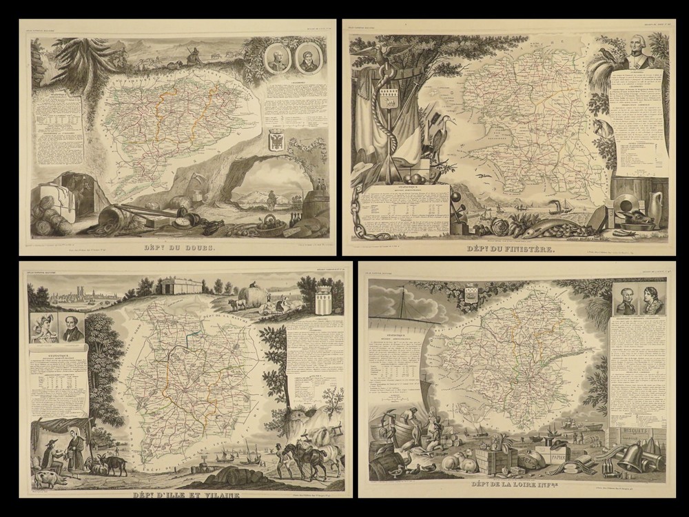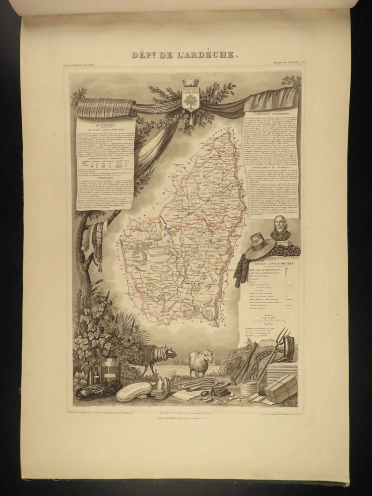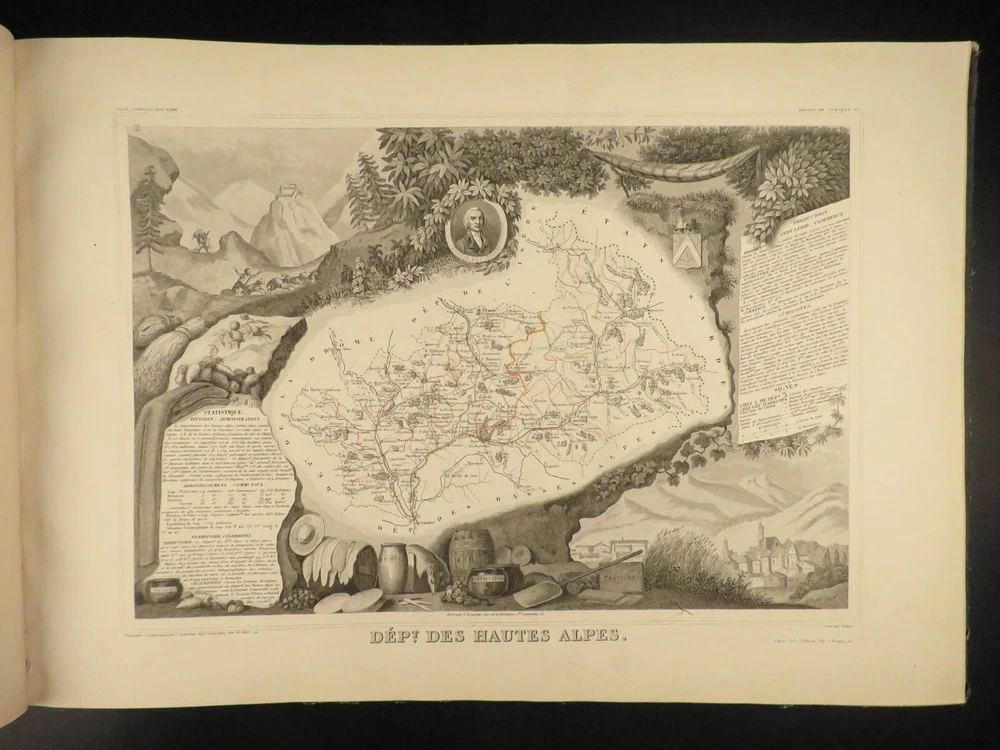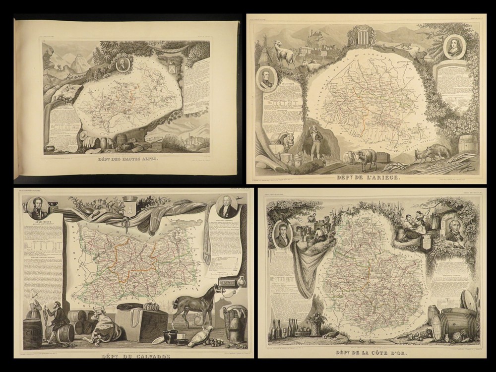 1846 1 ed HUGE French ATLAS 43 MAPS Illustrated Victor Lefasseur ENORMOUS France An absolutely enormous French atlas by Victor Levasseur! This huge, oblong atlas contains 43 fully-illustrated maps of various regions, cities, and counties from around France each decorated with exquisite decorated borders. Item number: #20847 Price: $795 LEVASSEUR, Victor Atlas national illustré des 86 départements et des possessions de la France divisé par arrondissements, cantons et communes Paris: publié par A. Combette Editeur, 1846. Details : · Collation: Complete with all pages; o 43 plates of maps, plus engraved title page · Provenance: Binding stamp – M lle . Pauline Charuel · Language: French · Binding: Leather; tight and secure · Size : ~15.25in X 22in (39cm x 56cm) Our Guarantee: Very Fast. Very Safe. Free Shipping Worldwide. Customer satisfaction is our priority! Notify us with 7 days of receiving, and we will offer a full refund without reservation! 20847