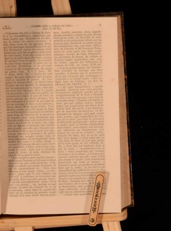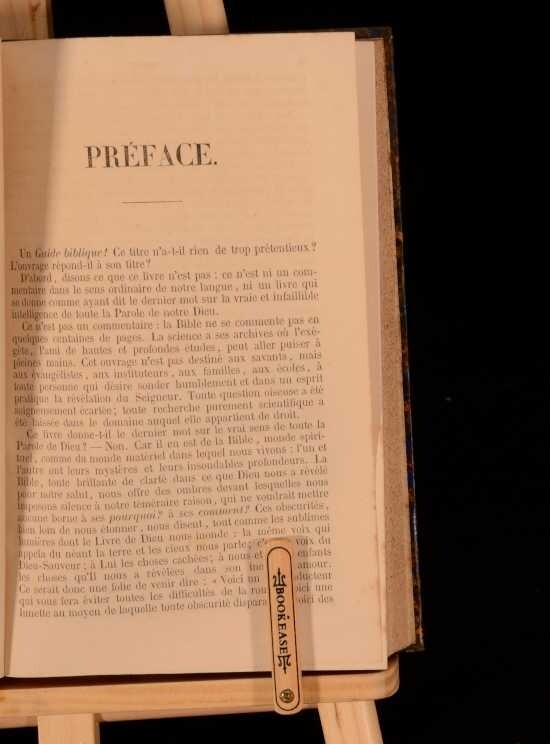 Click here to see our other books! Guide Biblique S. Decomaz 1856 Societe Des Livres Religieux : Toulouse 9" by 6" [xv], 504pp; 484pp; 755pp SUMMARY A smartly bound scarce set of this guide and history of the bible, illustrated with maps. Illustrated,Leather Binding Overall Condition: Good This book weighs 2 KG when packed UK Postage: £ 3.99 US Postage: £ 29.99 EU Postage : £ 21.99 European Postage: £ 23.99 Asia Postage: £ 37.99 Worldwide Postage: £ 38.99 DESCRIPTION A scarce three volume set of this Nineteenth-Century Bible guide and history, in attractive quarter-morocco leather bindings. The volumes are written in French. Including maps and timelines, history and analysis, the volumes make for a comprehensive and interesting example of Bible study, and is described as for the use of teachers, evangelists and priests in their studies of both testaments. The maps included depict such events as the Exodus from Egypt, as well as Palestine and Roman Europe. Each volume contains the inkstamp and bookplate of the Guille-Alles Library of Guernsey. CONDITION In decorative quarter-morocco bindings with gilt detailing and paper-covered boards. Externally smart. Some minor wear to the extremities, joints and backstrip, as well as some inscriptions and institutional labels to backstrip. The hinges of volumes two and three are slightly strained. Internally, firmly bound. Pages are bright and clean, although there is foxing to endages and maps to the rear of each volume, as well as the odd spot throughout. There are inkstamps to each half-title and title page. Overall Condition: Good GLOSSARY OF TERMS Overall Condition (Dustwrapper condition rating is shown after that for the book itself, where a dustwrapper is present) Fine - Very well preserved copy showing very little wear Very Good Indeed - Only one or two minor faults, really a very attractive copy Very Good - Quite a wide term meaning no major faults but probably several smaller ones often expected given the age of the book, but still a respectable copy Good - Meaning not very good. Some more serious faults as will be described in the condition report under 'condition' Good Only - Meaning one or more faults that could really do with repair Fair - As with good only above but with other faults leaving a compromised copy even after repair Poor - Really bad and possibly seriously incomplete. We only sell books in this condition where their rarity or value makes them attractive none the less. Major defects will be described. GUARANTEE We offer a full money back guarantee on our descriptions. Please ask for details and conditions. We prefer PAYPAL. If you pay via PAYPAL we will post the item off the same or the next working day with the postage you have selected. Please note we cannot accept USD cheques