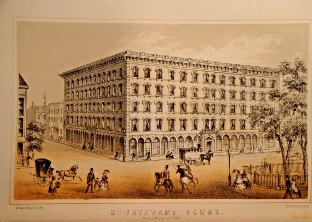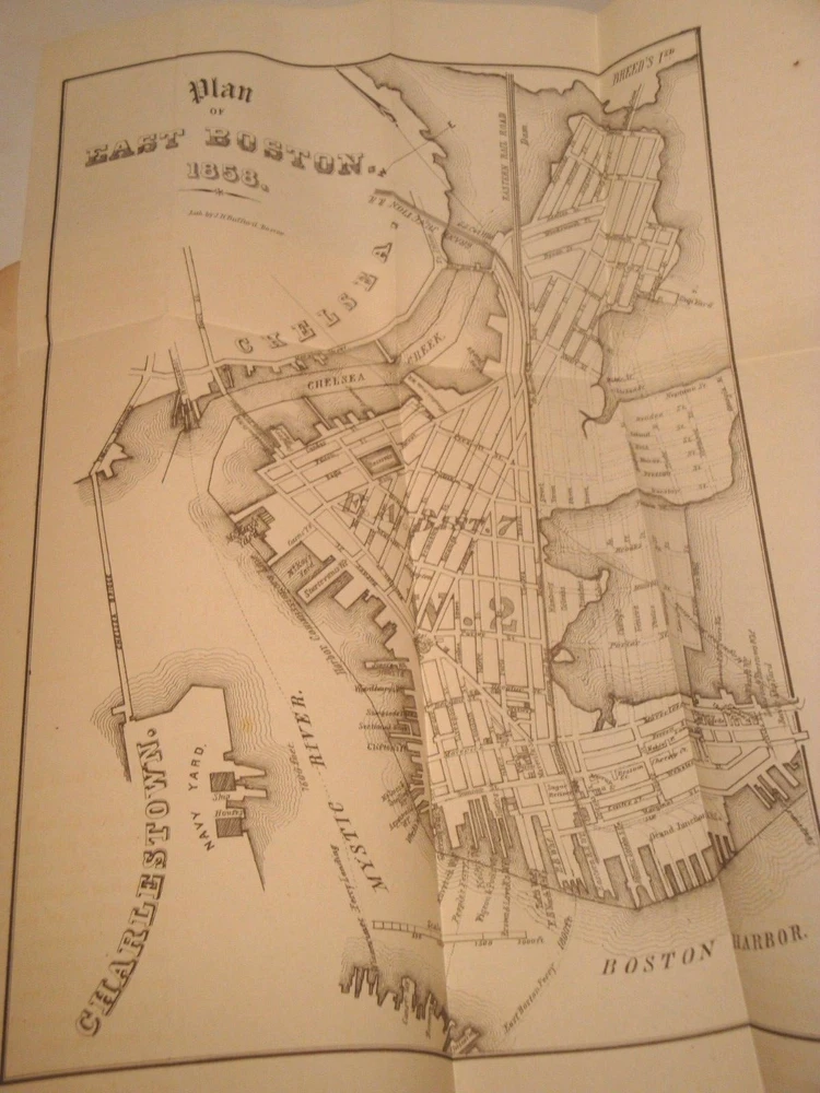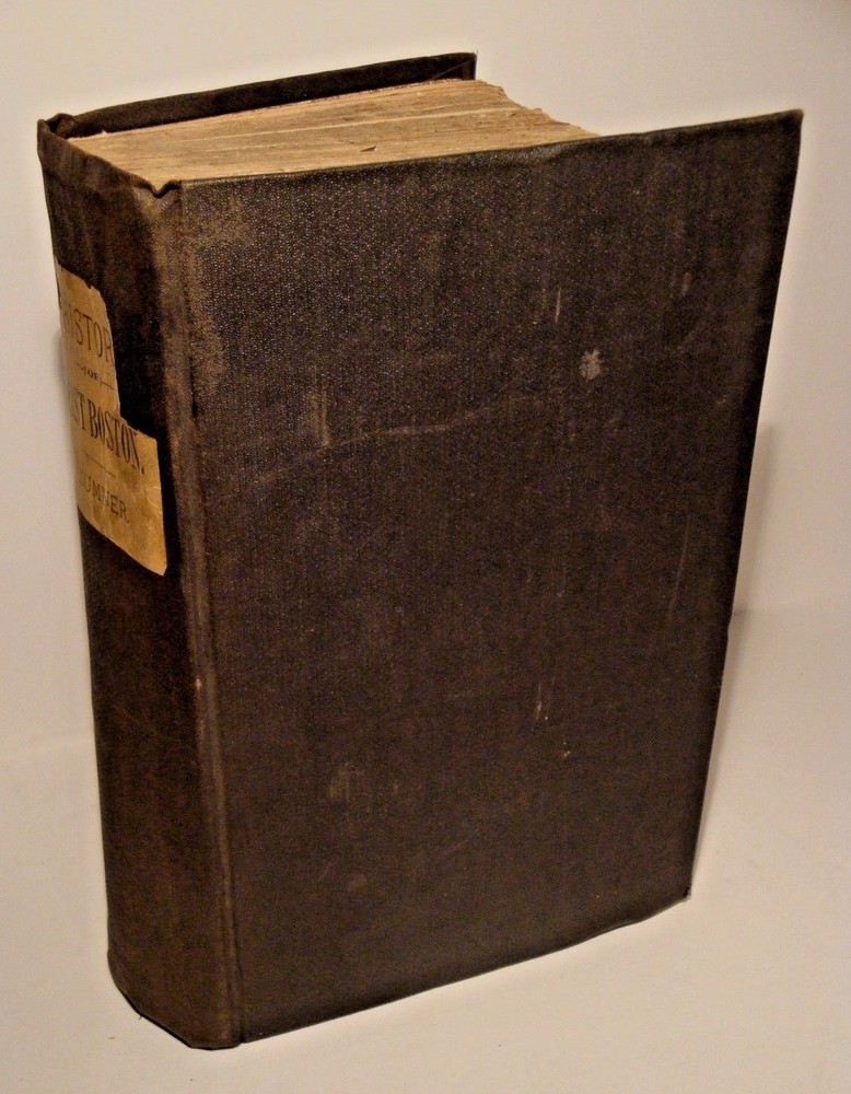 HISTORY OF EAST BOSTON WITH BIOGRAPHICAL SKETCHES OF IT'S EARLY PROPRIETORS, AND AN APPENDIX BY WILLIAM H. SUMNER. Published in 1858 by E. Tilton and Company, Boston. RARE First Edition. Includes 12 high quality plates on thick paper, two of which are tinted, 3 additional illustrations, 2 folding genealogical charts, folding maps of Noddle's Island and East Boston, both in fine condition, elaborate flower pattern in brown on endpapers, Original brown cloth boards (this is NOT an ex-library edition). Heavy volume. Contains 801 rough-cut pages. Measures 7 3/4" x 9 3/4". Boards in amazingly fine condition for it's advanced age w/ only mild wear, scratching & scoff marks, chipped paste down on spine, a few pen markings on front endpapers, mild spot staining on some pages, tightly bound, very good condition. Have not found another in this condition for sale on the internet. Would make an excellent gift, keepsake research aid or addition to a museum collection.
