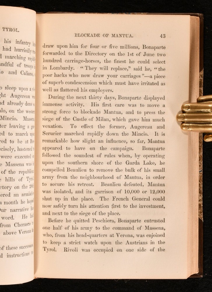 Click here to see our other books! The Italian Campaigns of General Bonaparte George Hooper 1859 Smith, Elder and Co. : London 7.5" by 4.5" iv, 247pp SUMMARY An excellent first edition of George Hooper's description of Bonaparte's military campaigns in Italy, illustrated with a folding map. Folding Maps,Illustrated,Leather Binding Overall Condition: Near Fine This book weighs 0.5 KG when packed UK Postage: £ 3.99 US Postage: £ 15.99 EU Postage : £ 13.99 European Postage: £ 14.99 Asia Postage: £ 18.99 Worldwide Postage: £ 19.99 DESCRIPTION Detailing Bonaparte's campaigns between 1796 and 1800. On the conquest of North Italy and the campaign of Marengo. Illustrated with a folding map frontispiece. Written by George Hooper. CONDITION In a half calf binding. Externally very smart; with light rubbing to the joints and spine. Internally, firmly bound. Pages are bright and clean. Overall Condition: Near Fine GLOSSARY OF TERMS Overall Condition (Dustwrapper condition rating is shown after that for the book itself, where a dustwrapper is present) Fine - Very well preserved copy showing very little wear Very Good Indeed - Only one or two minor faults, really a very attractive copy Very Good - Quite a wide term meaning no major faults but probably several smaller ones often expected given the age of the book, but still a respectable copy Good - Meaning not very good. Some more serious faults as will be described in the condition report under 'condition' Good Only - Meaning one or more faults that could really do with repair Fair - As with good only above but with other faults leaving a compromised copy even after repair Poor - Really bad and possibly seriously incomplete. We only sell books in this condition where their rarity or value makes them attractive none the less. Major defects will be described. GUARANTEE We offer a full money back guarantee on our descriptions. Please ask for details and conditions. We prefer PAYPAL. If you pay via PAYPAL we will post the item off the same or the next working day with the postage you have selected. Please note we cannot accept USD cheques