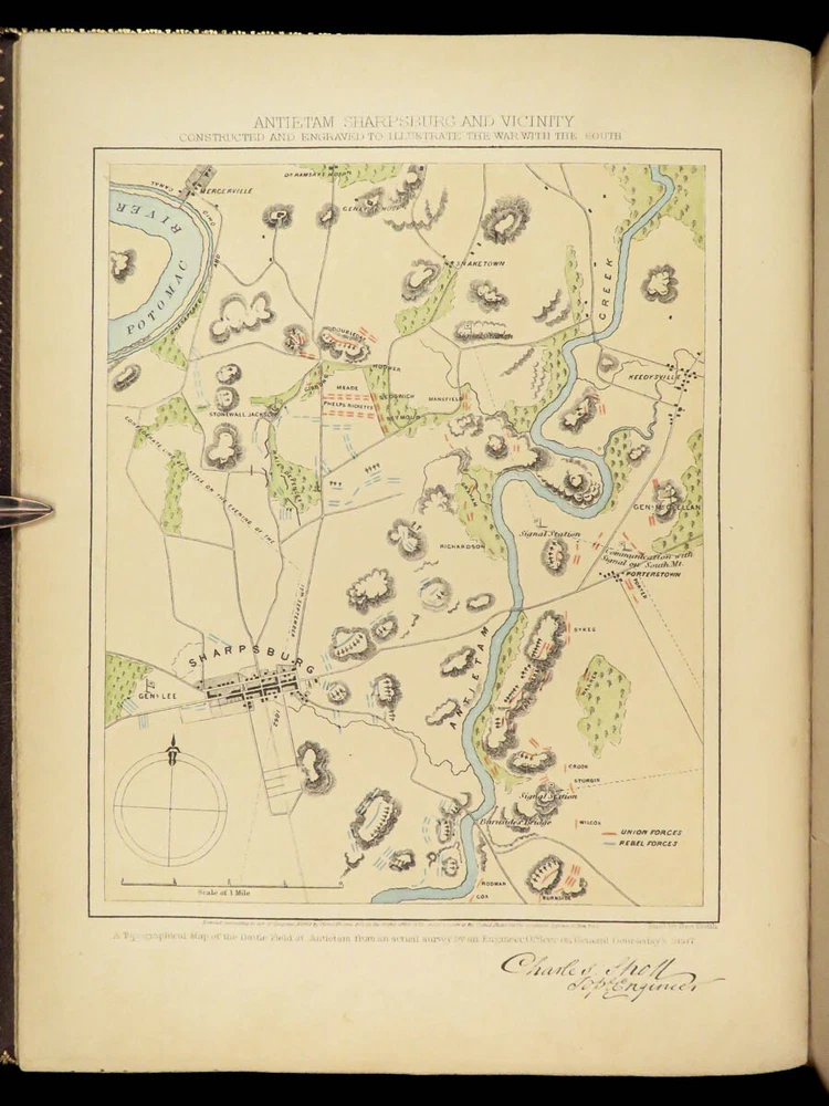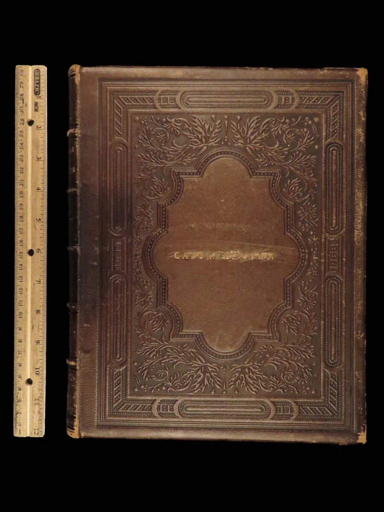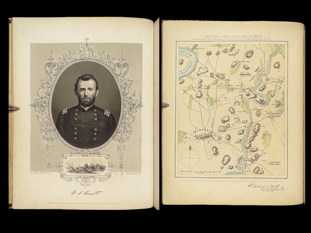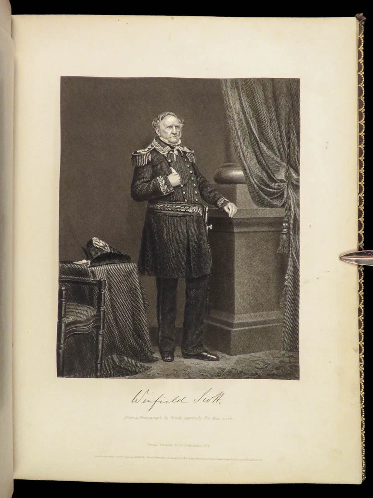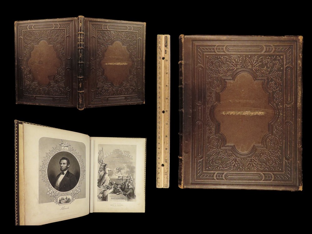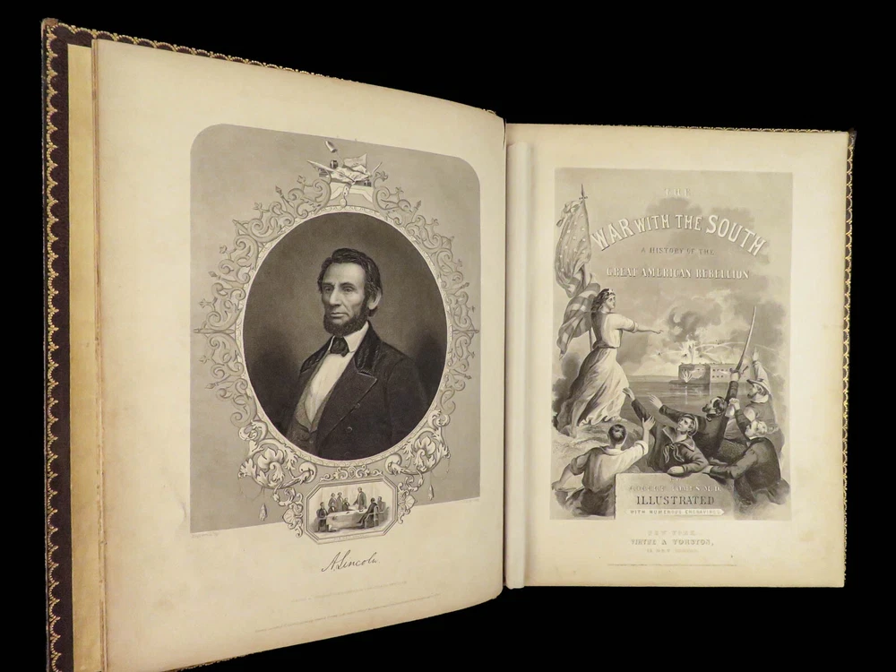 1862 EXQUISITE 1 ed War with South CIVIL WAR Military Tomes Gettysburg MAPS The American Civil War played an important role in the expansion and growth of book publication in the United States, as people were craving an understanding of the conflict. Robert Tomes began publishing a subscription book that would give insight to the war, but he believed his work would help end the battles quickly. It didn’t. “ The War with the South ” saw print in dozens of separate parts during the height of the Civil War. This collection of engravings was part of the original work – this tome contains illustrations including portraits of Ambrose Burnside, Ulysses S Grant, and battlefield maps of both Gettysburg and Antietam ! Item number: #24274 Price: $499 TOMES, Robert The war with the South: a history of the great American rebellion; New York: Virtue and Yorston, [ca. 1865]. Details : · Collation: Collection of plates and maps o 22 engraved plates and maps (including frontispiece and title page) · References: Nevins II:29; · Provenance: Binding stamp – [Capt. N. Kenton] · Language: English · Binding: Leather; tight and secure · Size : ~11.5in X 9.25in (29cm x 23.5cm) Our Guarantee: Very Fast. Very Safe. Free Shipping Worldwide. Customer satisfaction is our priority! Notify us with 7 days of receiving, and we will offer a full refund without reservation! 24274
