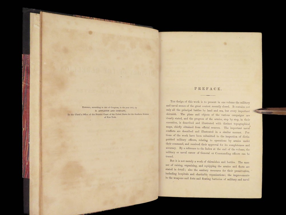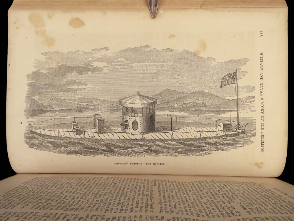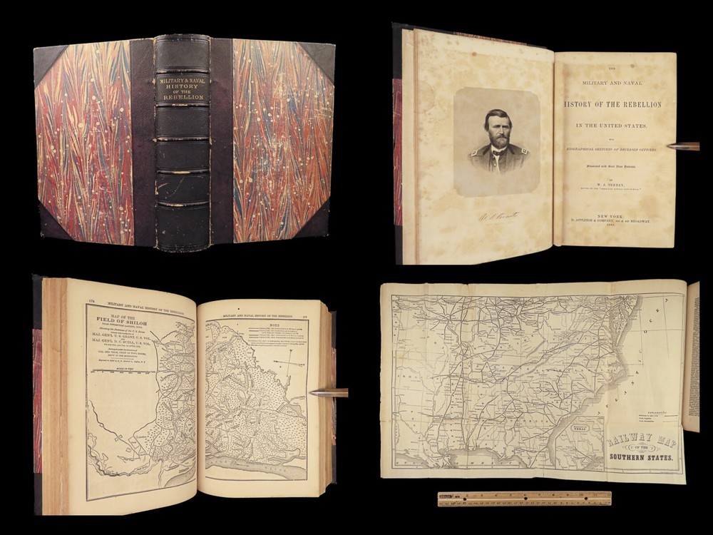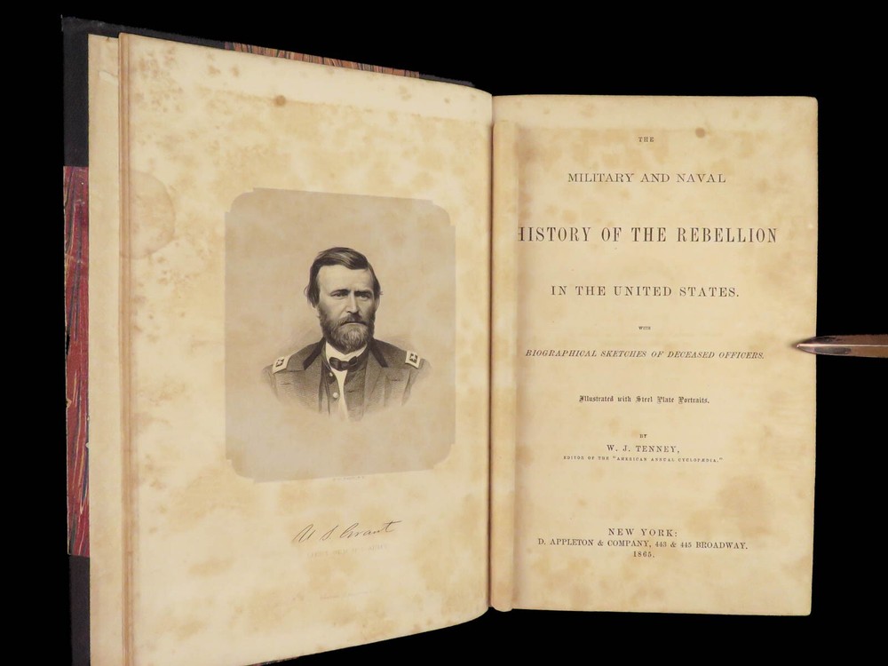 1865 CIVIL WAR 1 ed Military Naval History NAVY Gettysburg Tenney MAPS Railroad William Tenney’s ‘ Military and Naval History of the Rebellion’ is a rare Civil War-era account of the war. This work provides details on battles and troop movements such as Gettysburg, biographical sketches of notable figures such as Abraham Lincoln, and messages regarding emancipating slavery and governmental policies. This rare first edition includes portraits, engraved maps, and illustrations of firearms. Item number: #25461 Price: $499 TENNEY, William Jewett The military and naval history of the rebellion in the United States: with biographical sketches of deceased officers ... New York: D. Appleton & Company, 1865. First edition. Details : · Collation: Complete with all pages o [2], x, 843, [1] o Heavily illustrated with portraits, engravings, and maps throughout · Language: English · Binding: Leather; tight and secure · Size : ~10in X 7in (25.5cm x 17.5cm) Our Guarantee: Very Fast. Very Safe. Free Shipping Worldwide. Customer satisfaction is our priority! Notify us with 7 days of receiving, and we will offer a full refund without reservation! 25461