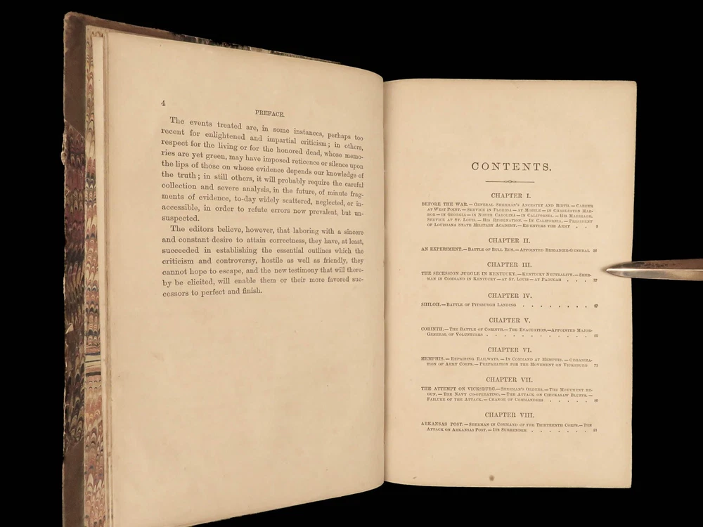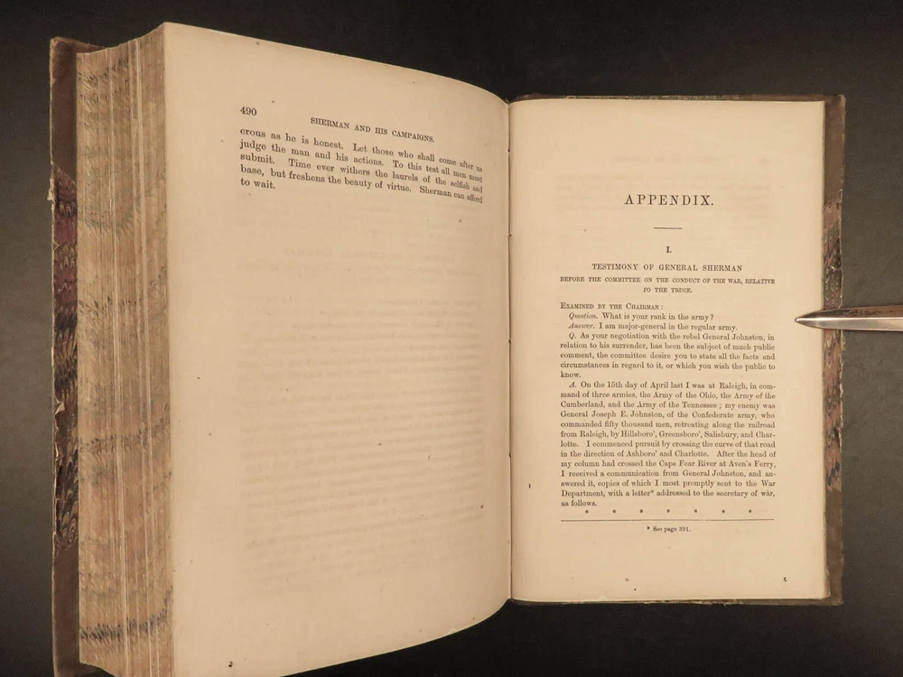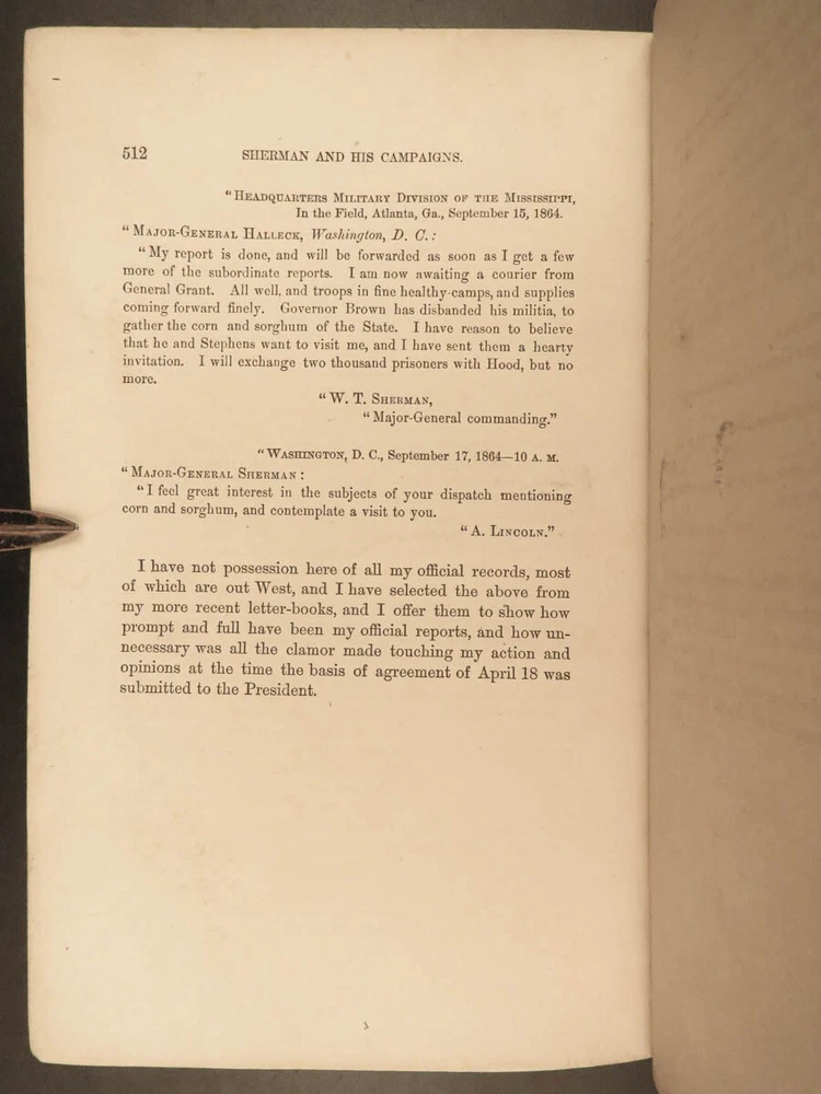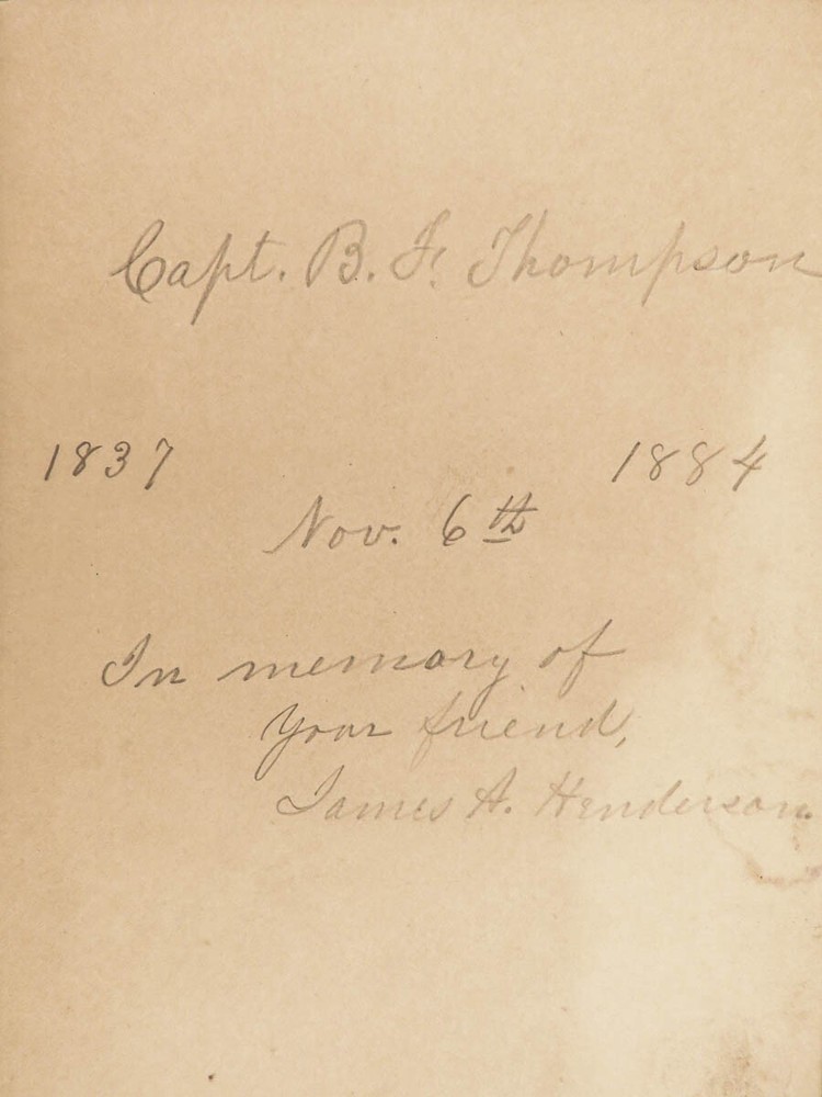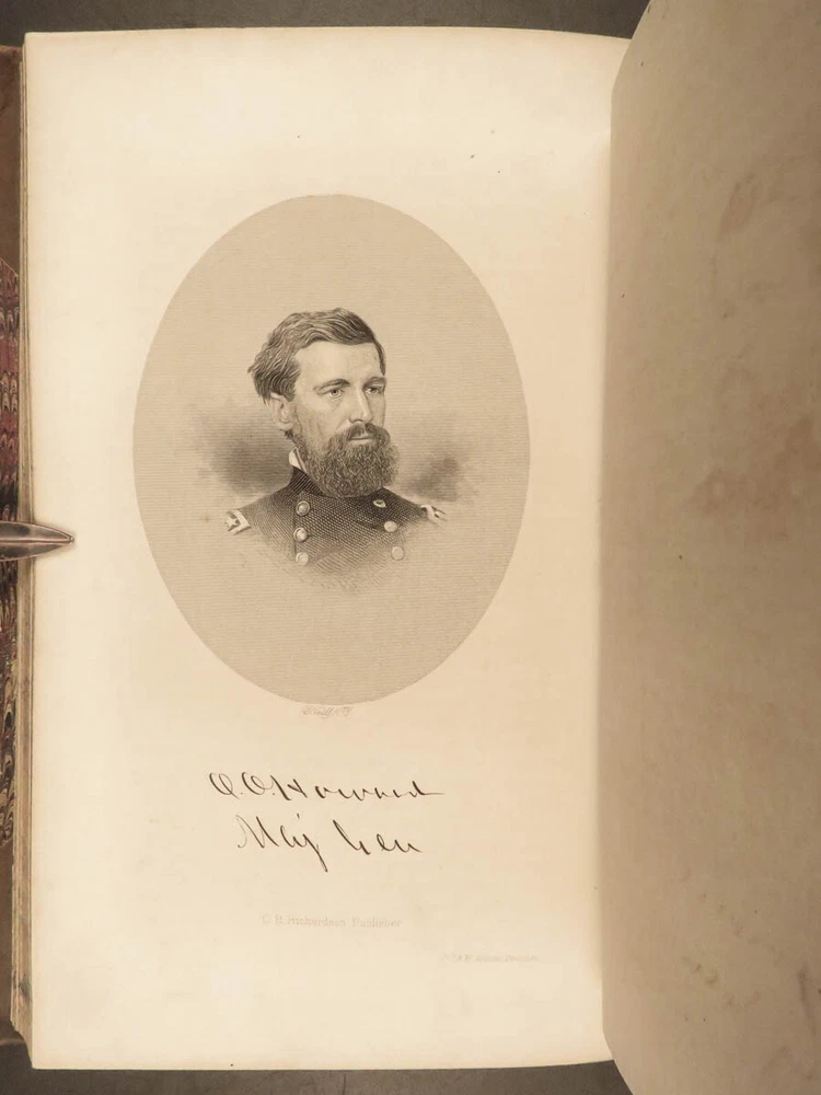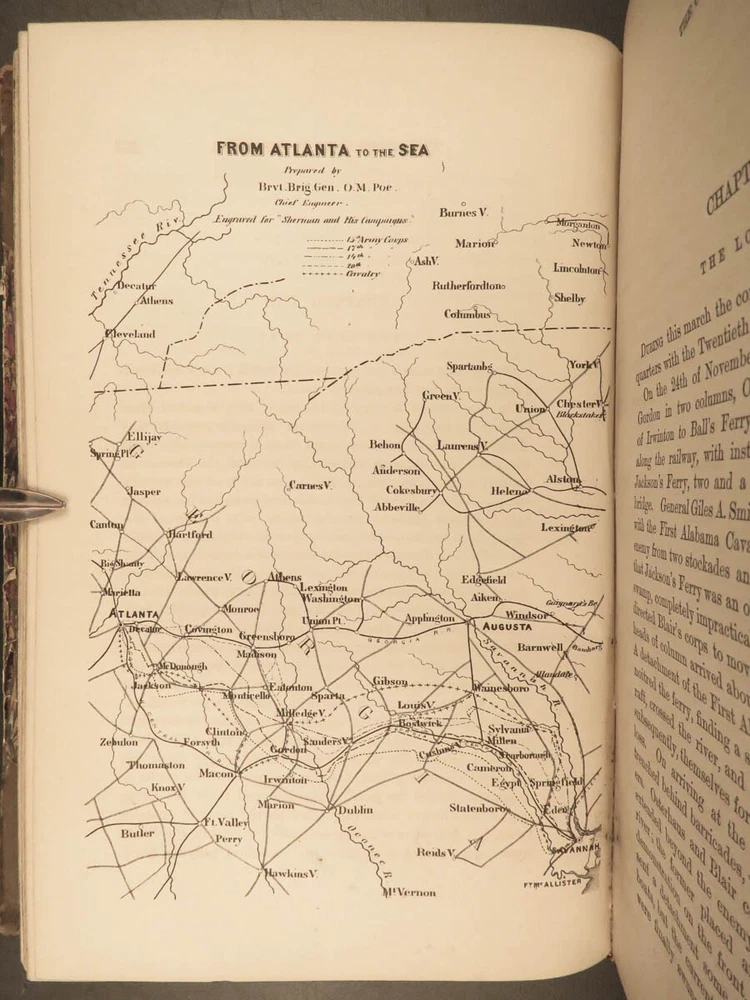1865 PROVENANCE General Sherman 1 st ed Campaigns Civil War Union Military Maps “ Sherman and His Campaigns: A Military Biography ” by Col. Samuel Millard Bowman and Lt.-Col. Richard Biddle Irwin is a meticulously detailed account of the military endeavors of Gen. William Tecumseh Sherman during the U.S. Civil War. Presenting a well-rounded view of Sherman’s life, the authors delve into his strategic genius, innovative command style, and decisive campaigns that earned him recognition as the “first modern general” by esteemed historian B.H. Liddell Hart. The authors go beyond narrating Sherman’s military successes; they intricately explore his character, shedding light on his leadership style and the respect he commanded from his soldiers. The book also offers a defense of Sherman against critics of his truce agreement with J.E. Johnston in 1865, highlighting the authors’ commitment to preserving historical accuracy. A significant contribution to Civil War literature, this first edition offers a thorough and enlightening exploration of one of the war’s pivotal figures. Item number: #30539 Price: $599 BOWMAN, Col. S.M.; IRWIN, Lt.-Col. R.B. Sherman and His Campaigns: A Military Biography New York: Charles B. Richardson; Cincinnati: C.F. Vent and Co.; Springfield: W.J. Holland, 1865. First Edition. Details : · Collation: Complete o [2], 512 o 8 portraits o 5 maps · Provenance: Handwritten o Capt. B. F. Thompson, 1884 § Capt. Bradford F. Thompson of the 112 th Illinois Volunteer Infantry. In 1885, Thompson completed and published a detailed account of the regiment’s service, which his fellow soldiers lauded as being both impressively accurate and comprehensive. A large part of the 112 th ’s service was given to the Atlanta Campaign led by General Sherman, the success of which paved the way for Sherman's March to the Sea and hastening the end of the war. Many of the maps in this volume of Sherman and His Campaigns are dedicated to battles fought during this campaign. o James A. Henderson, 1884 · Language: English · Binding: Leather; secure · Size : ~9in X 6in (23cm x 15cm) Our Guarantee: Very Fast. Very Safe. Free Shipping Worldwide. Customer satisfaction is our priority! Notify us with 7 days of receiving, and we will offer a full refund without reservation! 30539