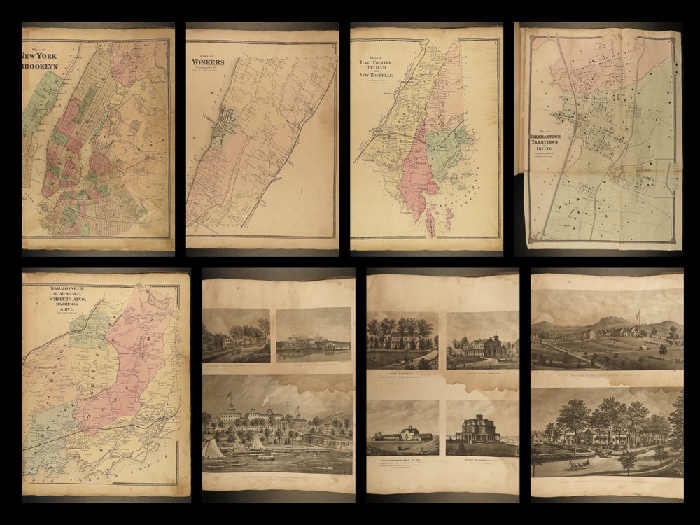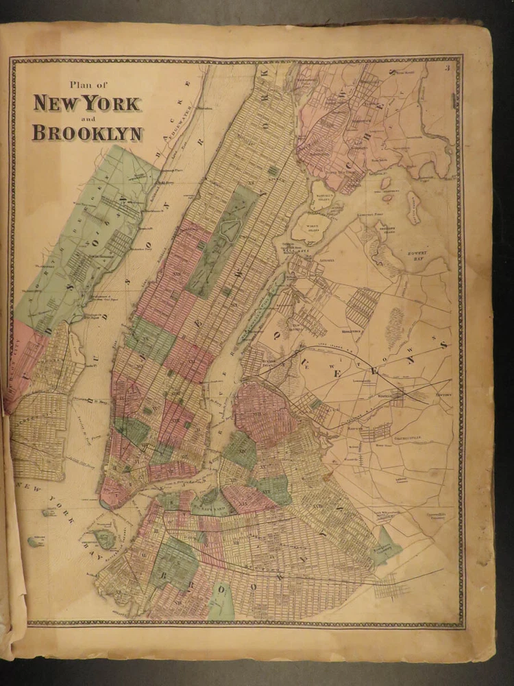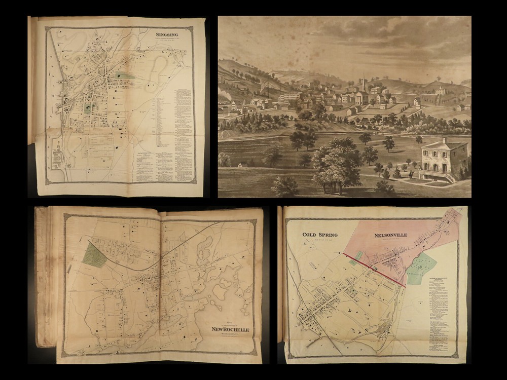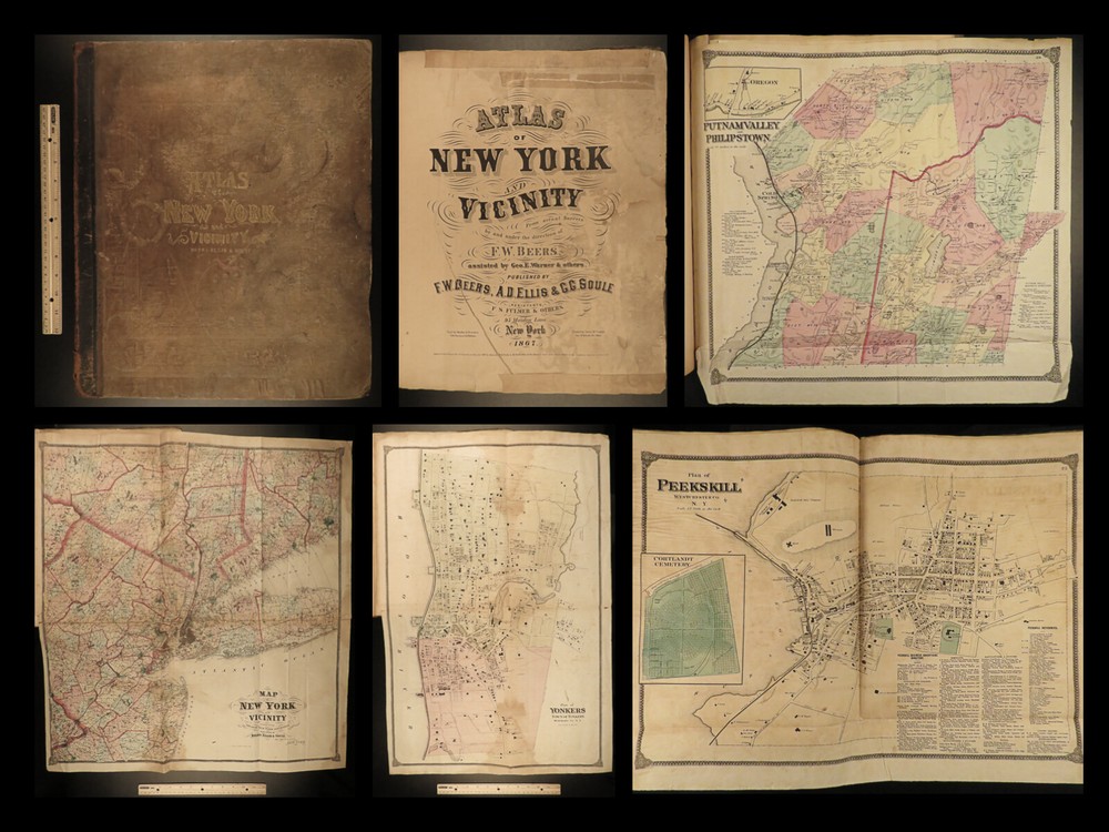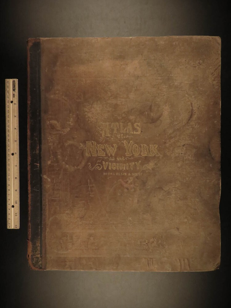 1867 HUGE ATLAS New York City Brooklyn Yonkers Color City MAPS FW Beers A rare 19 th -century atlas of New York! Collected by F.W. Beers, this enormous atlas contains numerous maps contains views of New York City, cities and towns, Burroughs, and neighborhoods, as well as illustrations of iconic locations and buildings. Notable maps included in this atlas include: · Peekskill · Beekmantown, Tarrytown, Irving · Putnam Valley and Philipstown · Cortland · Singsing · Yonkers · New York City · Brooklyn Item number: #18366 Price: $950 BEERS, F.W. Atlas of New York and vicinity : from actual surveys New York : F.W. Beers, A.D. Ellis, and G.G. Soule, 1867. Details : · Collation: Complete with all pages o 35 maps · Provenance: Handwritten – John Bailey · Language: English · Binding: Leather; secure · Size : ~17.75in X 14.75in (45cm x 37.5cm) Our Guarantee: Very Fast. Very Safe. Free Shipping Worldwide. Customer satisfaction is our priority! Notify us with 7 days of receiving, and we will offer a full refund without reservation! 18366