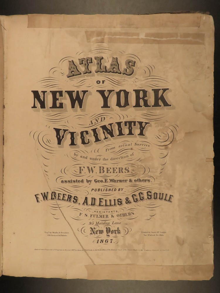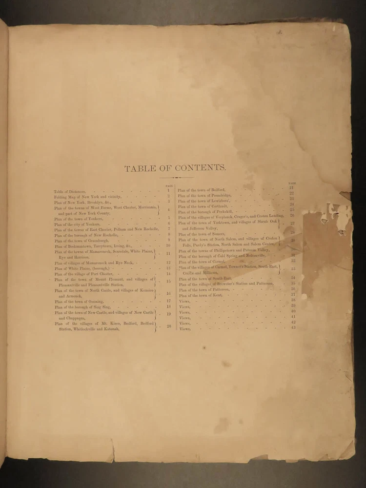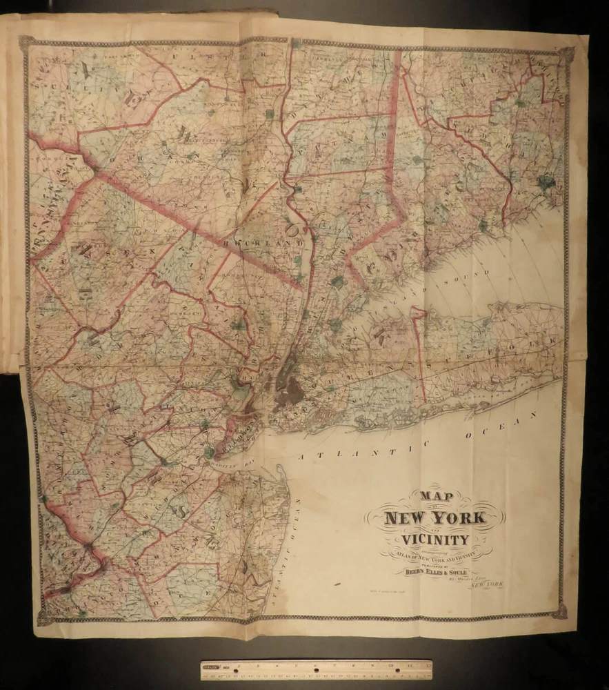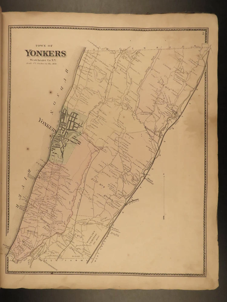 1867 HUGE ATLAS New York City Brooklyn Yonkers Color City MAPS FW Beers A rare 19 th -century atlas of New York! Collected by F.W. Beers, this enormous atlas contains numerous maps contains views of New York City, cities and towns, Burroughs, and neighborhoods, as well as illustrations of iconic locations and buildings. Notable maps included in this atlas include: · Peekskill · Beekmantown, Tarrytown, Irving · Putnam Valley and Philipstown · Cortland · Singsing · Yonkers · New York City · Brooklyn Item number: #18366 Price: $950 BEERS, F.W. Atlas of New York and vicinity : from actual surveys New York : F.W. Beers, A.D. Ellis, and G.G. Soule, 1867. Details : · Collation: Complete with all pages o 35 maps · Provenance: Handwritten – John Bailey · Language: English · Binding: Leather; secure · Size : ~17.75in X 14.75in (45cm x 37.5cm) Our Guarantee: Very Fast. Very Safe. Free Shipping Worldwide. Customer satisfaction is our priority! Notify us with 7 days of receiving, and we will offer a full refund without reservation! 18366