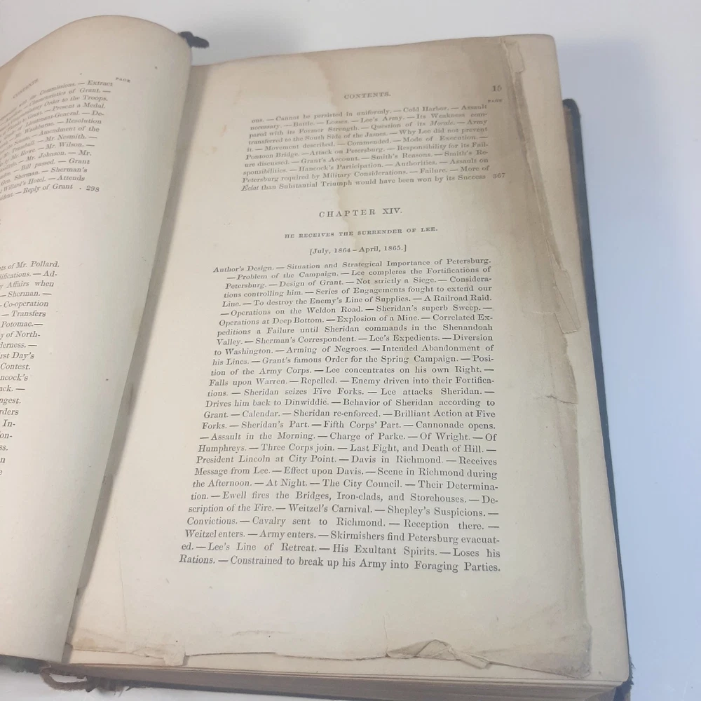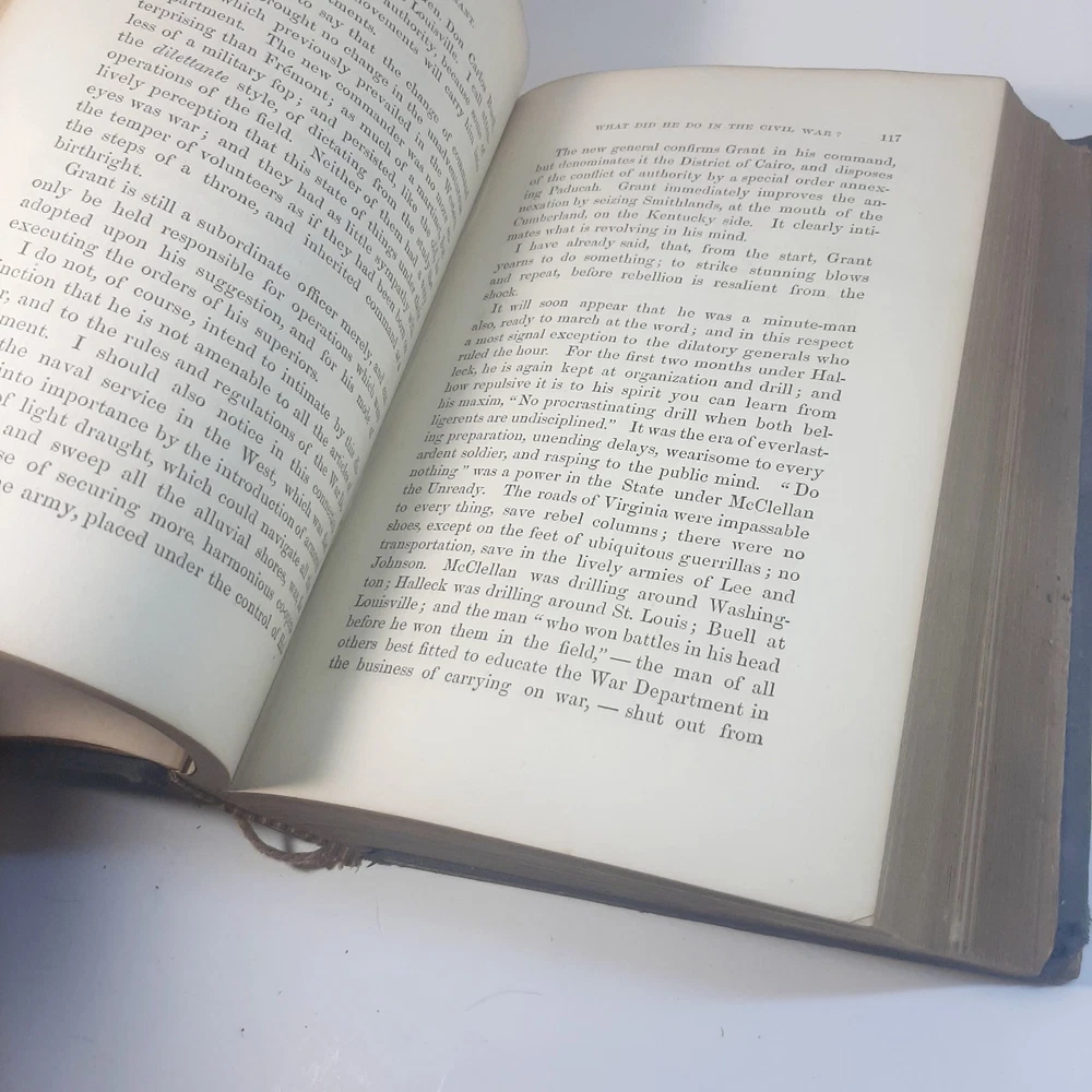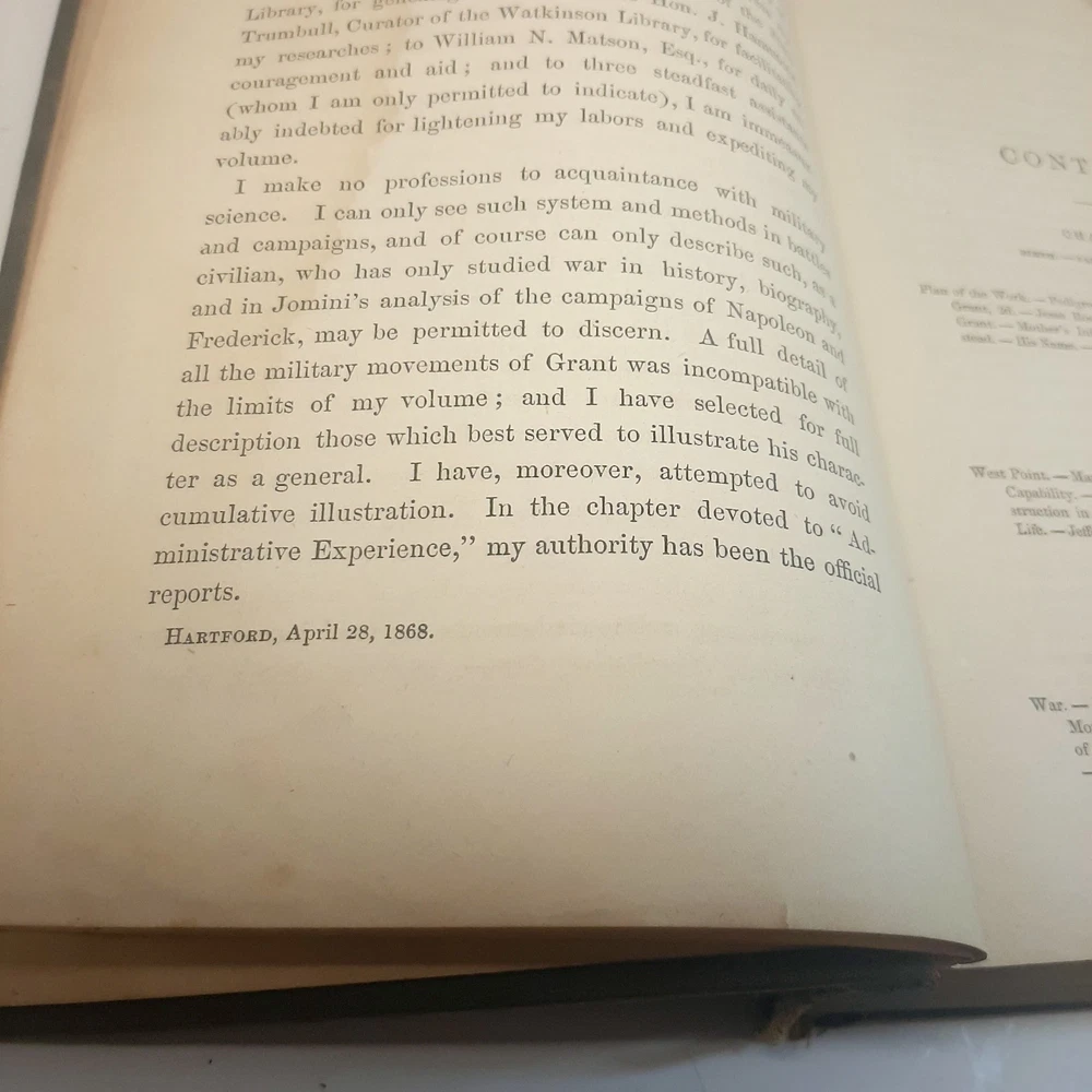The product is a leather-bound copy of "The Life Of General Ulysses S. Grant" by John ABBOTT, published in 1868, focusing on the life of General Ulysses S. Grant during the Civil War period. This original work delves into the militaria theme, providing historical insight into the conflict and military strategies of the Civil War. With maps and detailed accounts, this book serves as a valuable collectible for those interested in the history of this tumultuous period in American history. Please note pictures carefully. Spine covering is deteriorating but spine itself is good. There are pencil scribbles on 2 pages one near the front and one near the back. Some staining and discration on some pages.