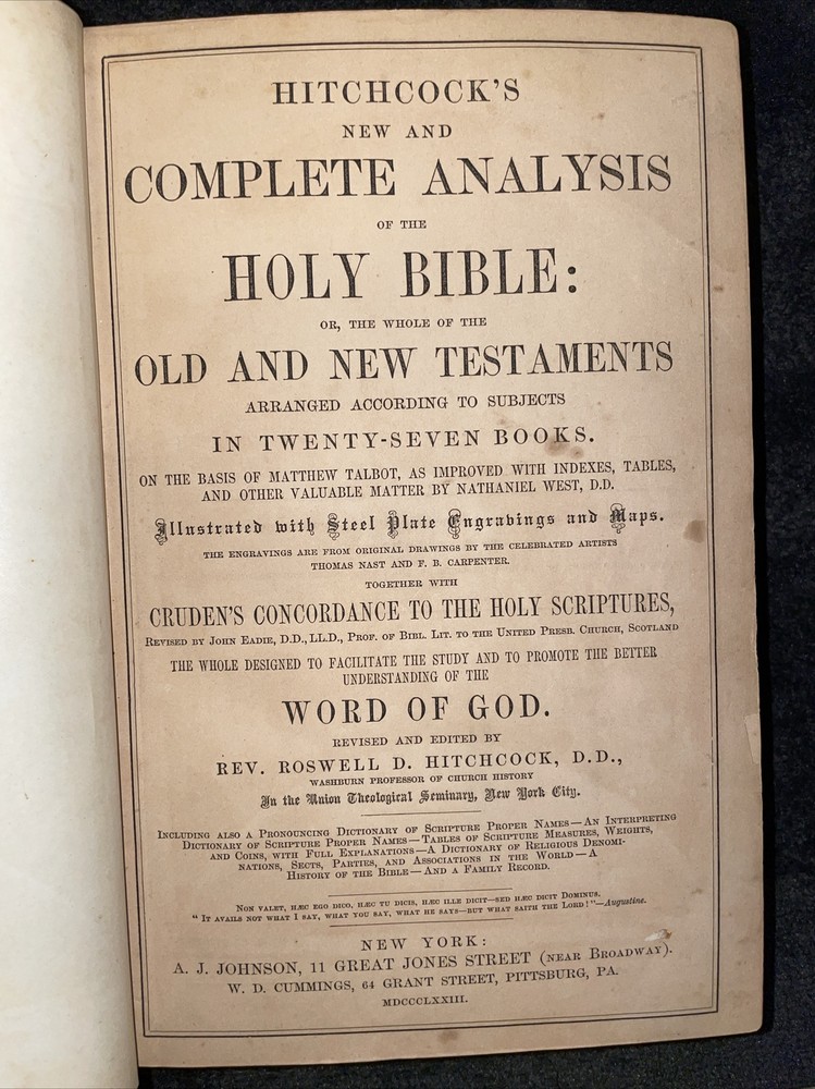 1874 HOLY BIBLE HITCHCOCK'S NEW AND COMPLETE ANALYSIS OF THE BIBLE w MAPS Needs rebinding old...