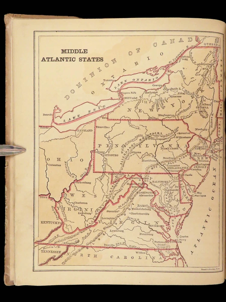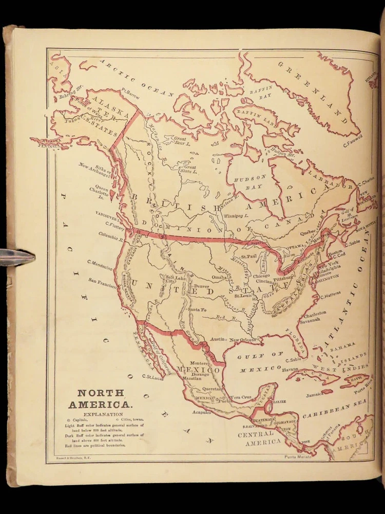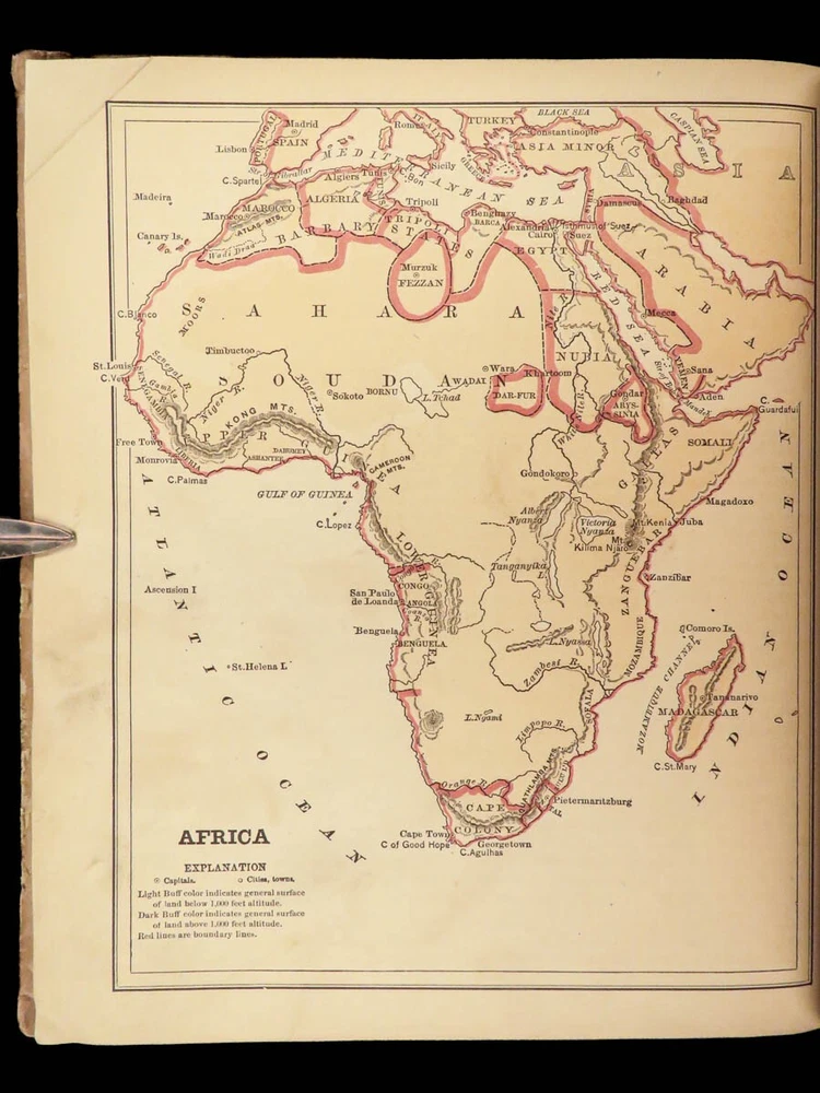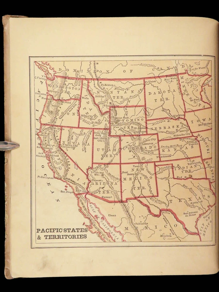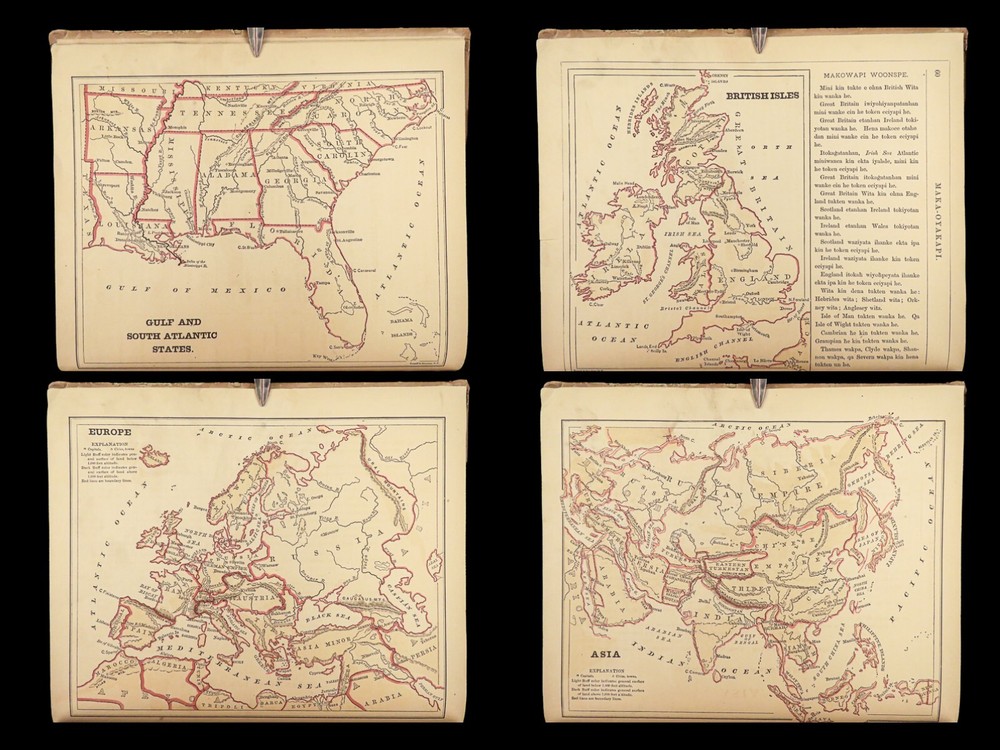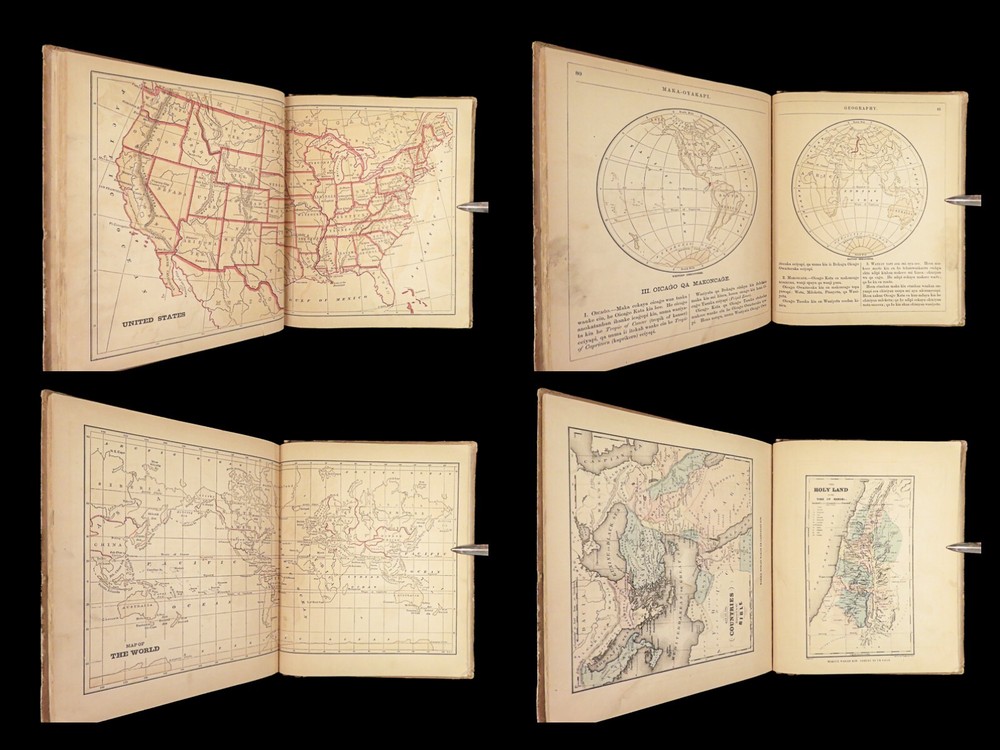1876 Dakota INDIAN 1 ed Maka Oyakapi Language Geography MAPS Holy Land America Alfred and Stephen Riggs’ “ Maka-Oyakapi ” is a rare 19 th -century elementary geography textbook written in the Dakota language for the Native American people groups in the Dakota mission. This 1876 book describes, in basic terms, North America, Europe, Africa, Asia, and Australia with fascinating illustrations and full-page and double-page maps. It concludes with a section entitled “ Makoce wowapi wakan kin en cajeyatapi kin ” – the geography of the Bible lands including Galilee, Jerusalem, Israel, Palestine, and more. Item number: #23171 Price: $499 RIGGS, Stephen & Alfred Maka-Oyakapi, Geography. Guyot's Elementary Geography in the Dakota Language New York: Scribner, Armstrong, & Co., 1876. 1 st edition Details : · Collation: Complete with all pages o Geography – 83, [3] o Bible lands – [2], 4, [2] · Language: Dakota / English · Binding: Leather; secure · Size : ~8.75in X 7.5in (22.5cm x 19cm) Our Guarantee: Very Fast. Very Safe. Free Shipping Worldwide. Customer satisfaction is our priority! Notify us with 7 days of receiving, and we will offer a full refund without reservation! 23171