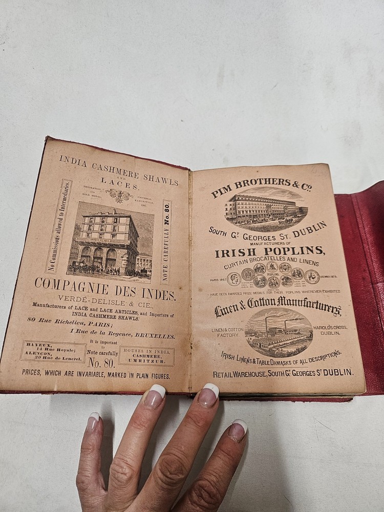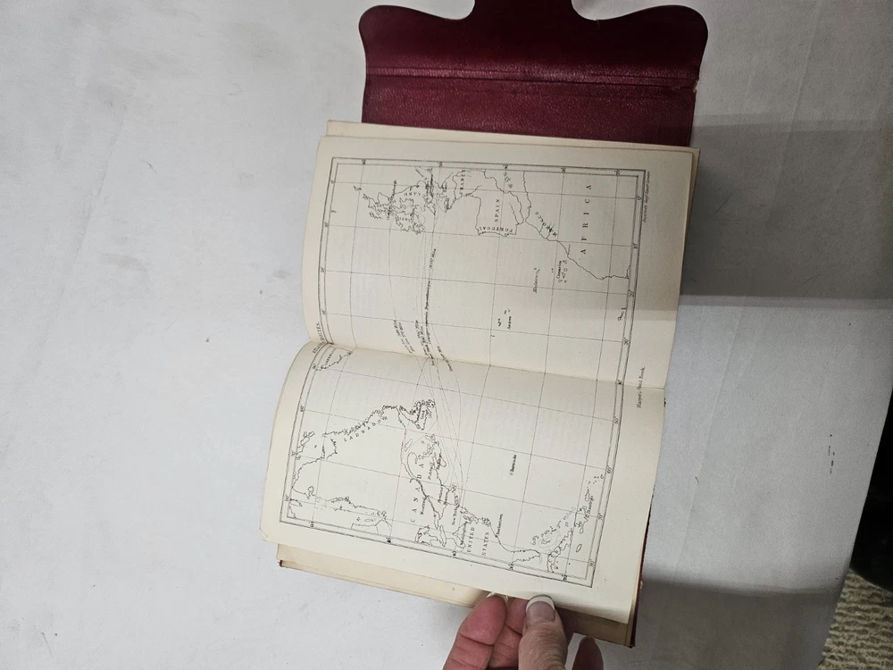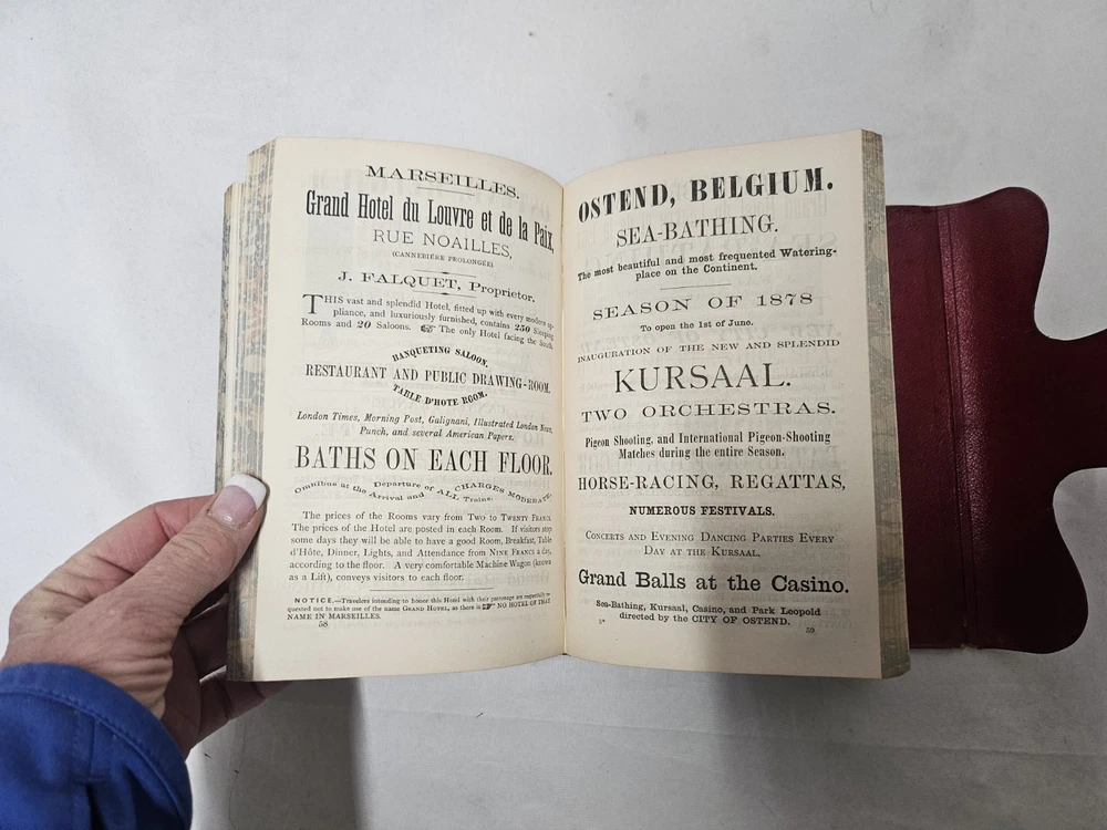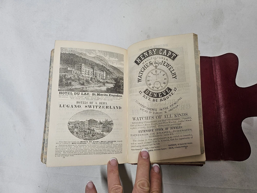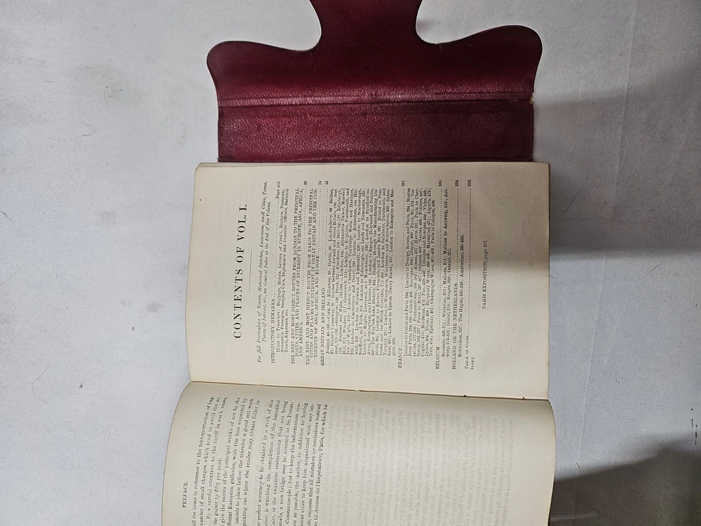 HARPER'S HAND-BOOK FOR TRAVELLERS Volume 1 1885 Edition Harper & Brothers Publishers, NY volume is 7 1/2" X 5 1/4" X 1 1/2" written by Pembroke Fetridge, M.S.G. "with 115 maps and plans of cities" volume has over 500 pages of information, an extensive index, and about 90 pages of advertising packed with information Condition.. .the leather covers are in Very Good Condition. Some edge wear but NO cracking or rips. The pages are excellent see photos for condition local pickup is an option; or media USPS shipping Let me know if you have questions and I will get right back to you. Thanks for looking!