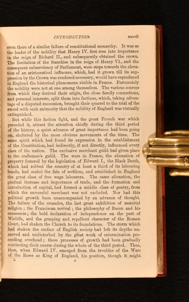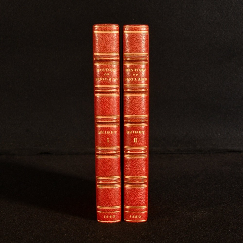 Click here to see our other books! A History of England, Period I: Medieval Monarchy from the Departure of the Romans to King Richard III, 449-1485 J. Franck Bright 1880 Rivingtons : London 7" by 5" lii, 170; 171-374pp. SUMMARY Period I of Bright's history of England, written for his students; handsomely bound by Morrell, this set is from the library of William Foyle, co-founder of Foyles bookshop. Illustrated,Leather Binding,Signed Binding,Uncommon Overall Condition: Fine This book weighs 0.75 KG when packed UK Postage: £ 3.99 US Postage: £ 19.99 EU Postage : £ 15.99 European Postage: £ 16.99 Asia Postage: £ 21.99 Worldwide Postage: £ 25.99 DESCRIPTION The third edition of this two volume set containing Period I, in half calf bindings. Top edge gilt. Binder's stamp of Morrell ('Morrell. Binder. London') to the verso of the front free end paper to each volume. James Franck Bright (1832-1920) was a British historian and Master of University College, Oxford. He wrote A History of England as a textbook for his students at Marlborough College, where he was Head of the Modern Department in the late nineteenth century. This two-volume set contains Period I of Bright's history of England, covering Medieval monarchy from the departure of the Romans to the reign King Richard III (449-1485). Illustrated with a frontispiece and twenty-two plates, six of which are in colour, to Volume I; illustrated with a frontispiece and nineteen plates, three of which are in colour, and six folding maps to the rear, one of which is in colour, to Volume II. From the library of W. A. Foyle at Beeleigh Abbey, with his morocco bookplate to the front paste down of each volume. William Foyle was the co-founder of Foyles bookshop, founding the leading bookshop in 1903 alongside his brother. He purchased Beeleigh Abbey during the Second World War, an impressive twelfth century monastery in Essex, which became home to his library, one the largest private libraries in England. CONDITION In half calf bindings. Externally in lovely condition. Internally, firmly bound. Pages are bright and clean with occasional pencil markings. Maps and plates are in excellent condition. Overall Condition: Fine GLOSSARY OF TERMS Overall Condition (Dustwrapper condition rating is shown after that for the book itself, where a dustwrapper is present) Fine - Very well preserved copy showing very little wear Very Good Indeed - Only one or two minor faults, really a very attractive copy Very Good - Quite a wide term meaning no major faults but probably several smaller ones often expected given the age of the book, but still a respectable copy Good - Meaning not very good. Some more serious faults as will be described in the condition report under 'condition' Good Only - Meaning one or more faults that could really do with repair Fair - As with good only above but with other faults leaving a compromised copy even after repair Poor - Really bad and possibly seriously incomplete. We only sell books in this condition where their rarity or value makes them attractive none the less. Major defects will be described. GUARANTEE We offer a full money back guarantee on our descriptions. Please ask for details and conditions. We prefer PAYPAL. If you pay via PAYPAL we will post the item off the same or the next working day with the postage you have selected. Please note we cannot accept USD cheques