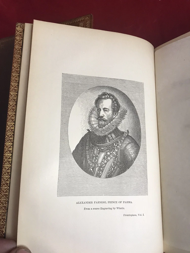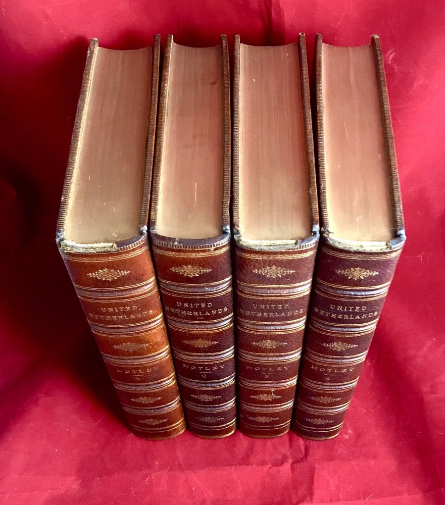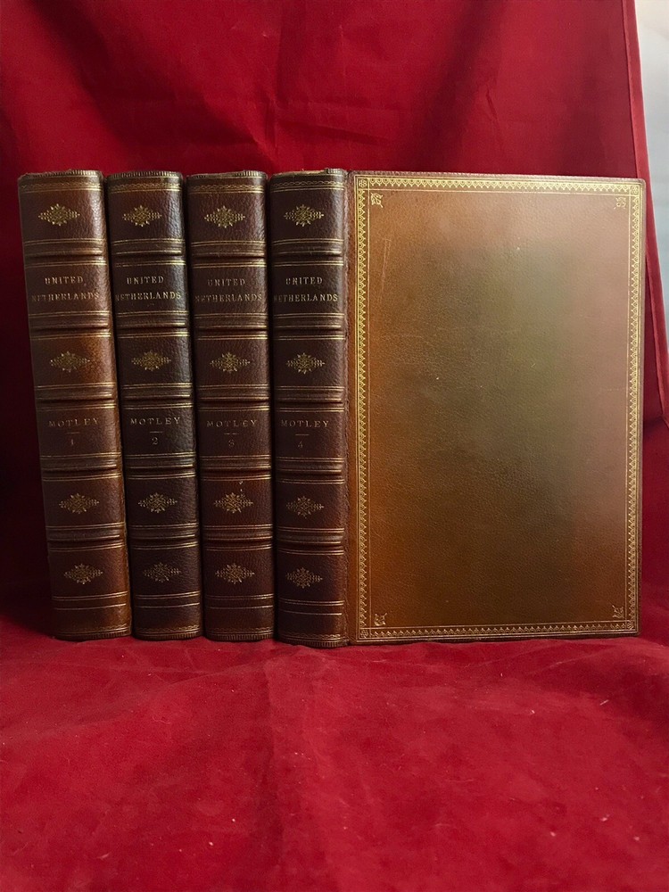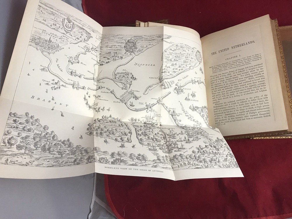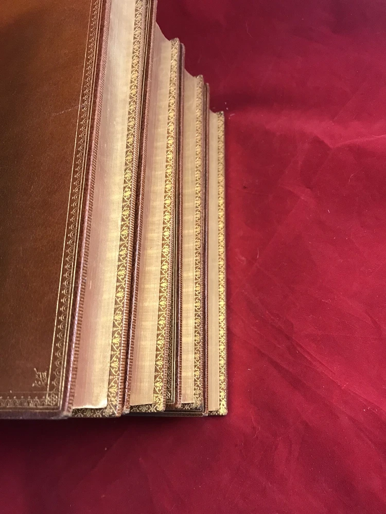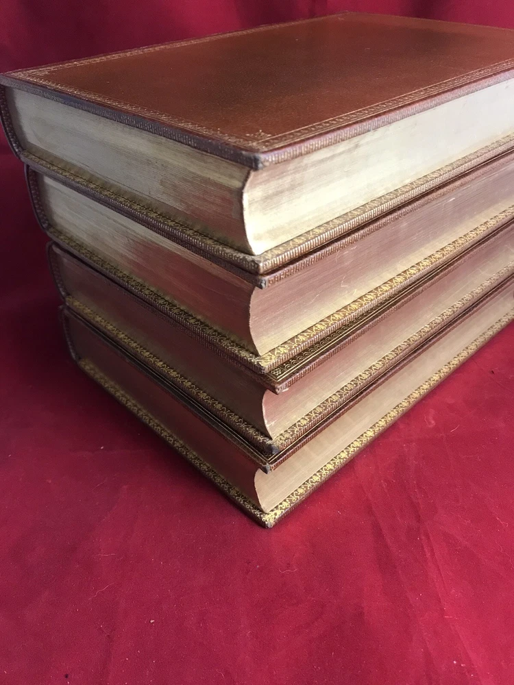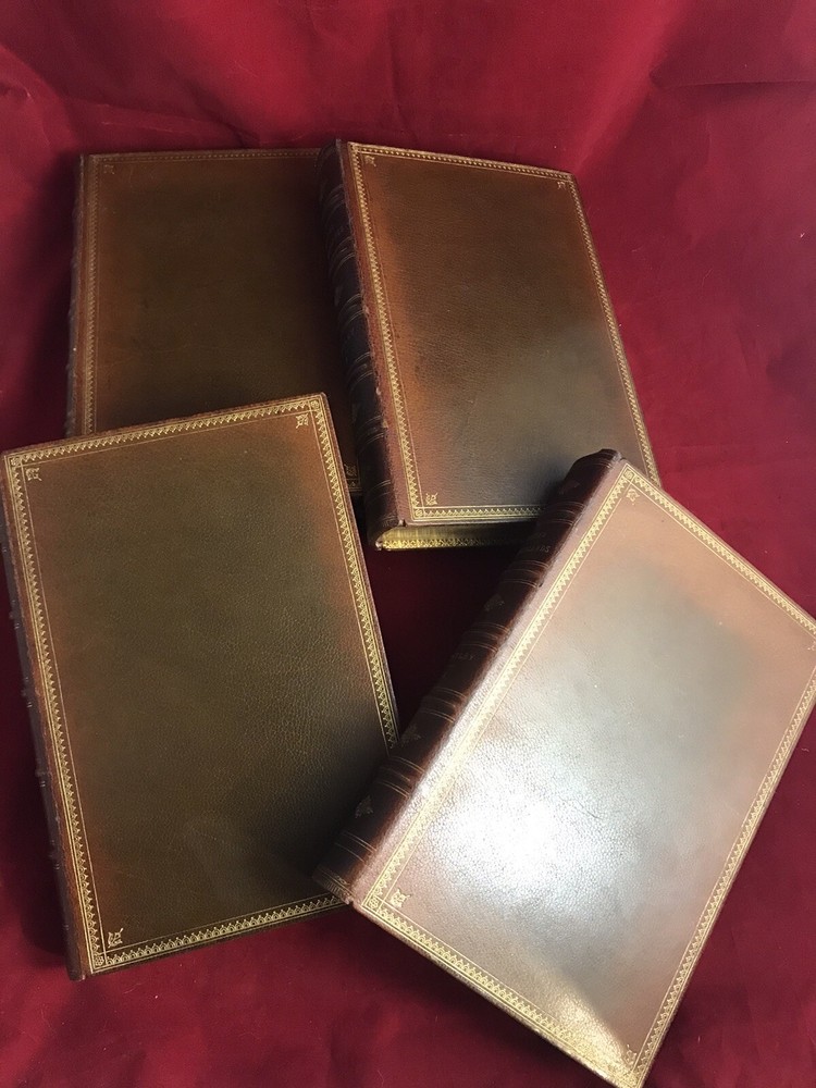 Complete for volume set in full leather with bright gilt decoration. Illustrated with frontispiece plates and a folding map. Pages gilded on all edges. Bindings are all tight and square, internally clean and like new. Leather has a few small chips at the spine heads; otherwise looks great. Near fine bindings and fine interiors. 9” x 6” each.