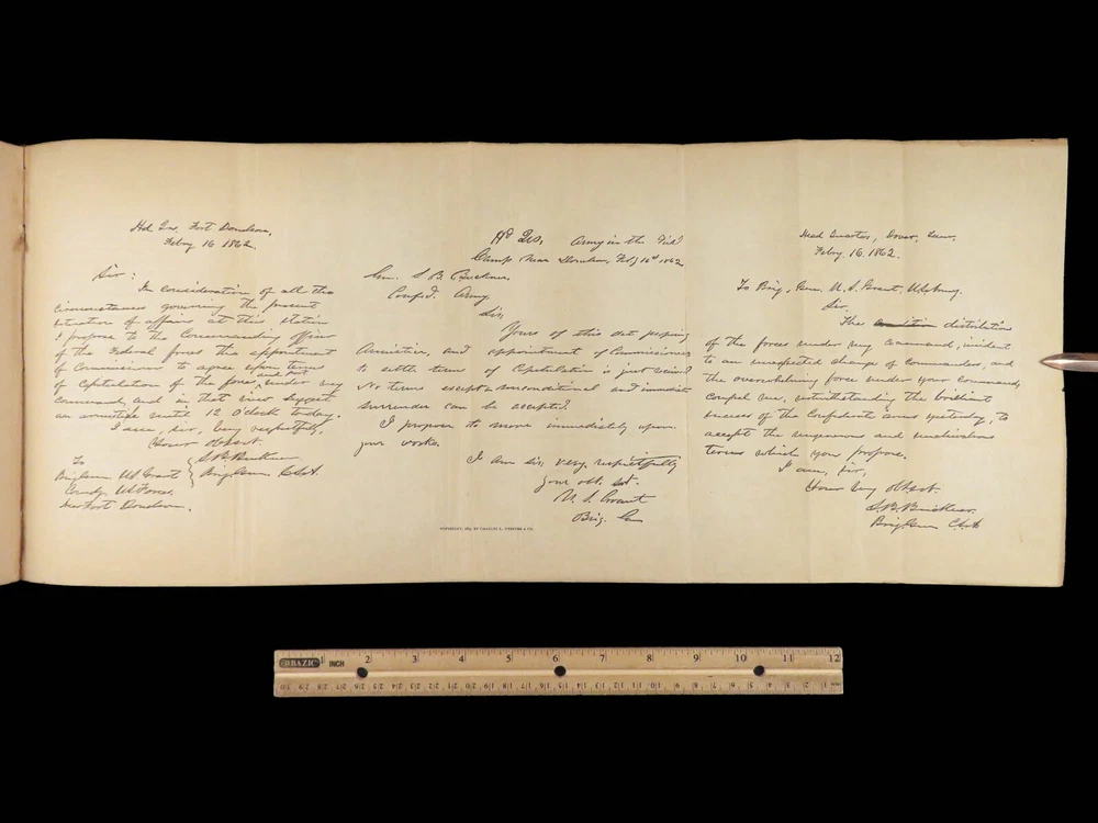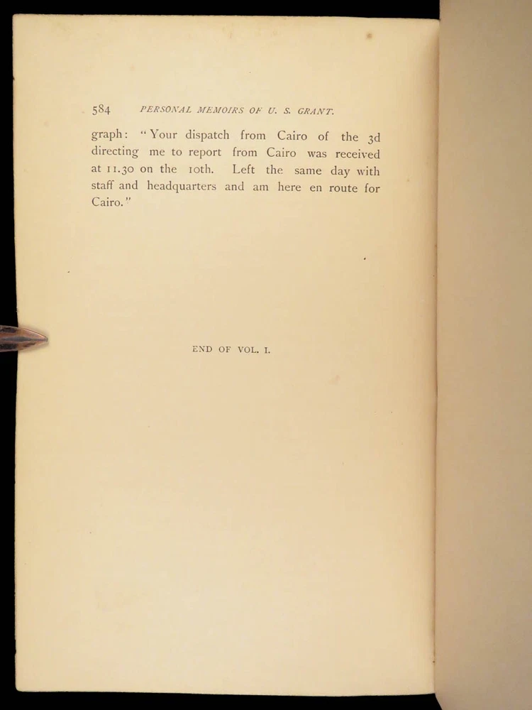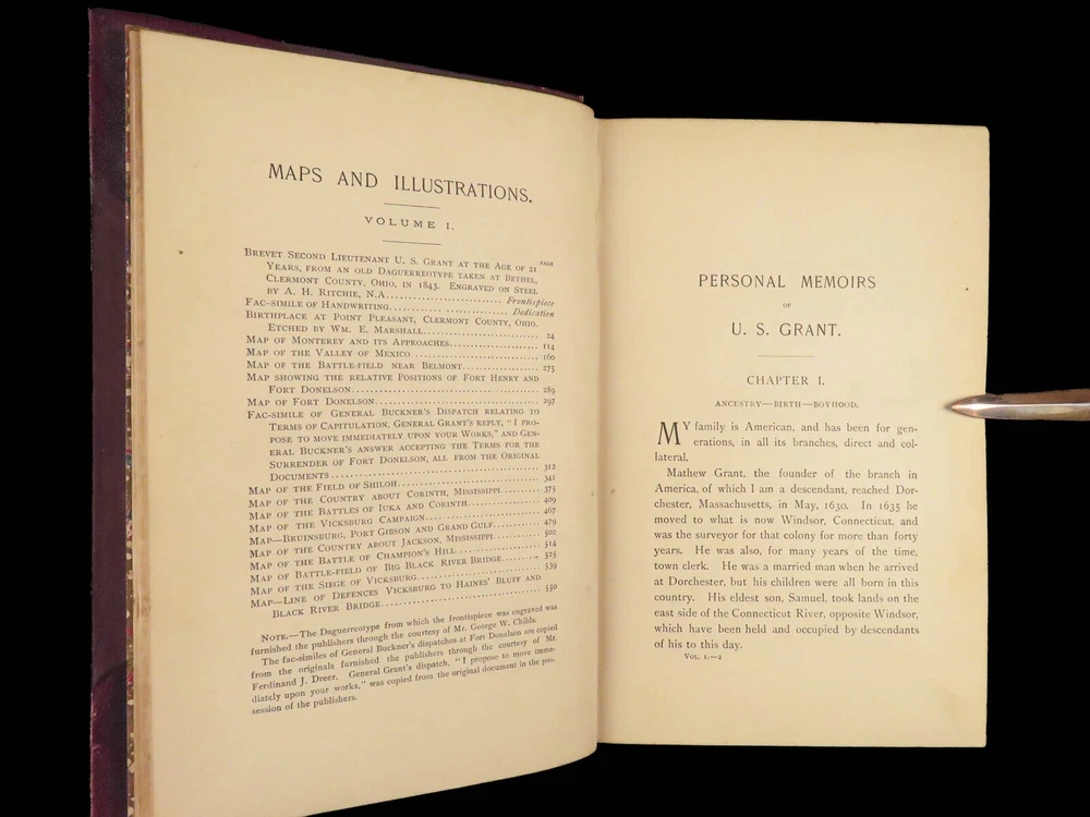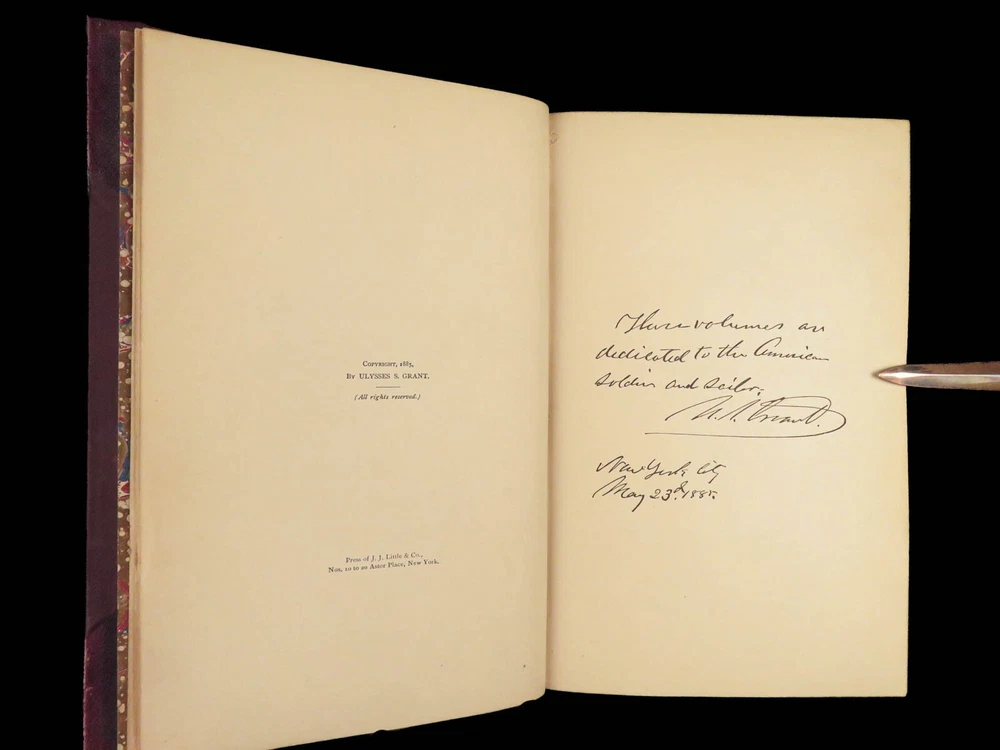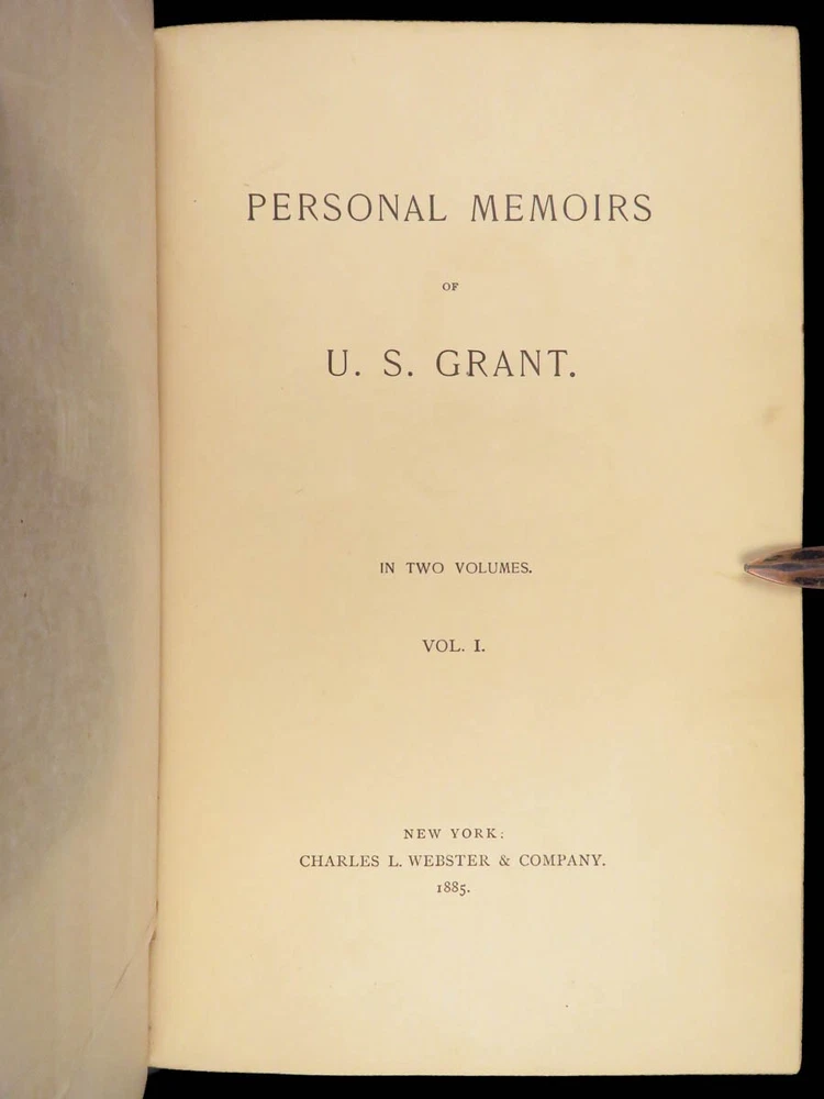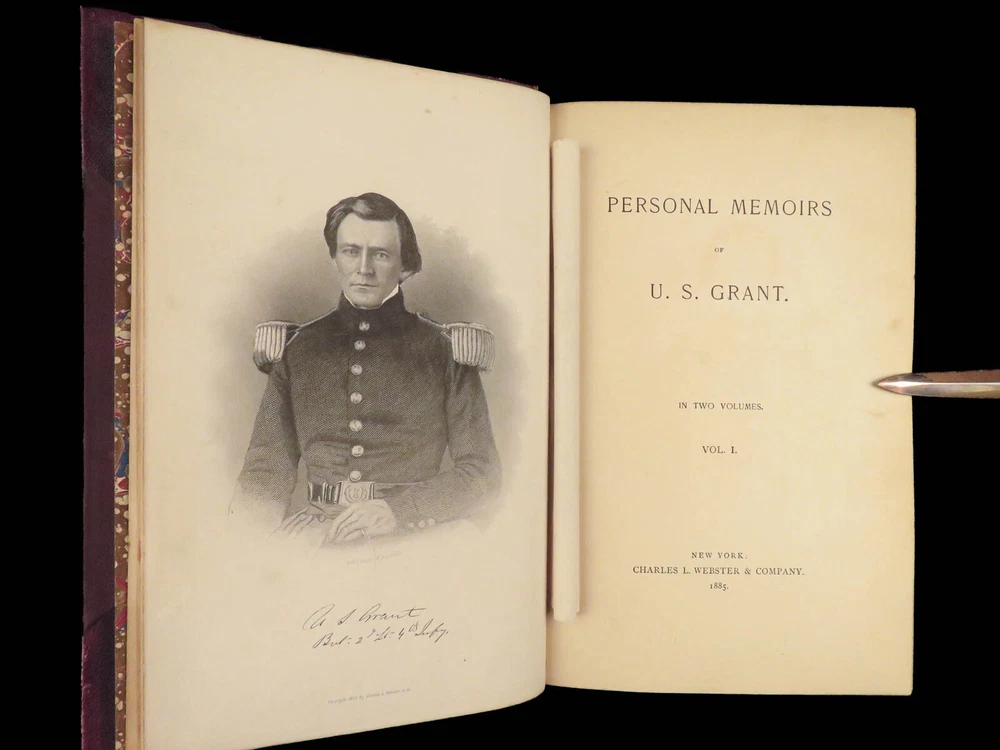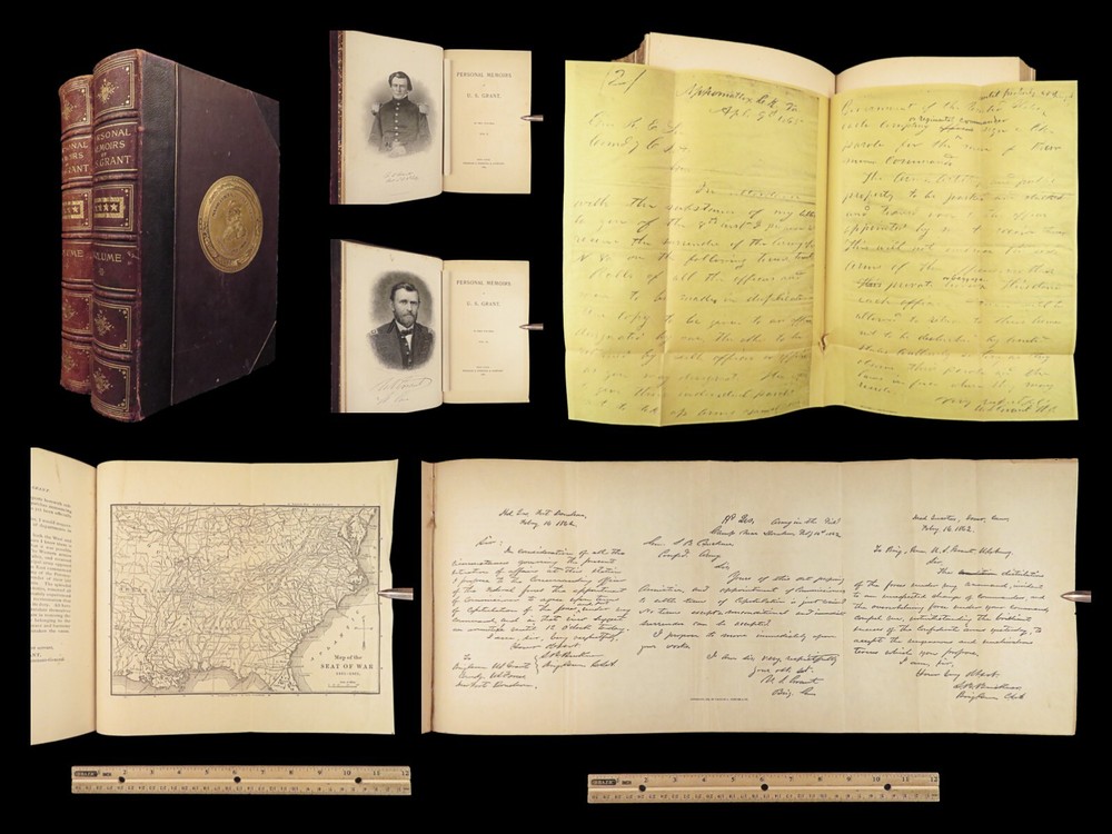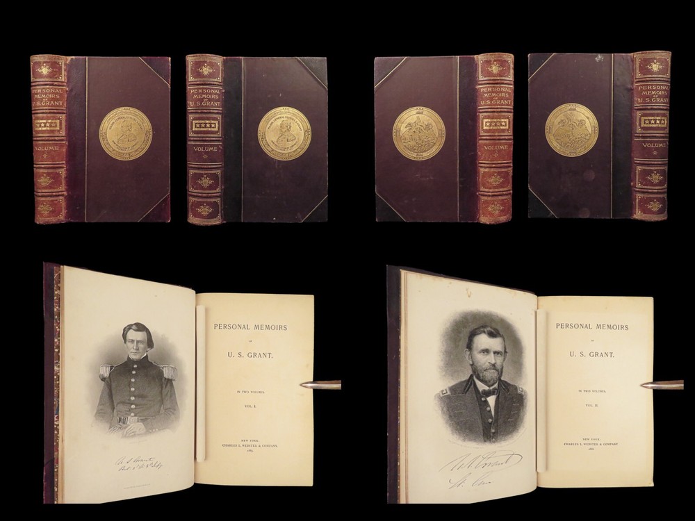 1885 Civil War Memoirs of Ulysses S Grant | 1 st edition 2v | Maps & Leather “The art of war is simple enough. Find out where your enemy is. Get at him as soon as you can. Strike him as hard as you can and keep moving on.” – Ulysses S. Grant An important historical memoir of the Civil War, arguably the most important, and the best thing that Grant ever wrote. General Norman Schwartzkopf has recently called this the finest memoir of war experiences that has ever been penned. As such, it is valuable in its scope, its plain and clear analysis and language, and its broad conclusions about the conduct of the war. Item number: #28231 Price: $1500 GRANT, Ulysses S Personal Memoirs of U.S. Grant New York: Charles L. Webster and Co., 1885-86. First edition. Details : · Collation: Complete; 2 volumes o Vol. I – 584 § 19 illustrations o Vol. II – 647, [1] § 31 illustrations · Language: English · Binding: Leather; secure o Publisher’s leather binding · Size: ~9.5in X 6.5in (24cm x 16cm) Our Guarantee: Very Fast. Very Safe. Free Shipping Worldwide. Customer satisfaction is our priority! Notify us with 7 days of receiving, and we will offer a full refund without reservation!