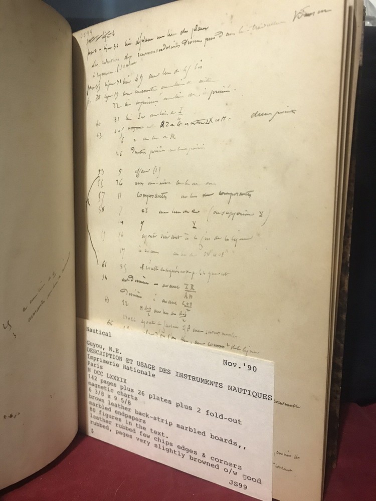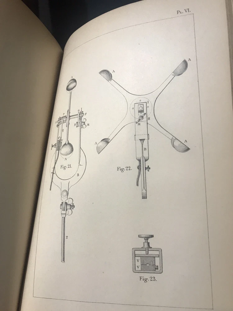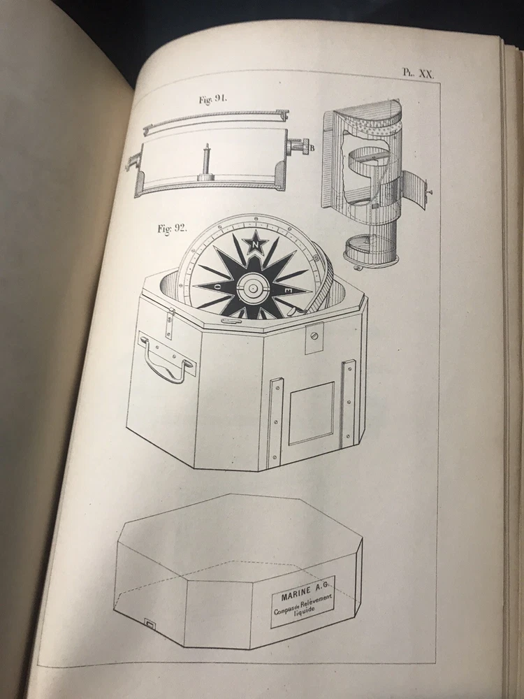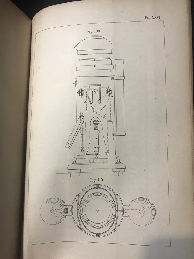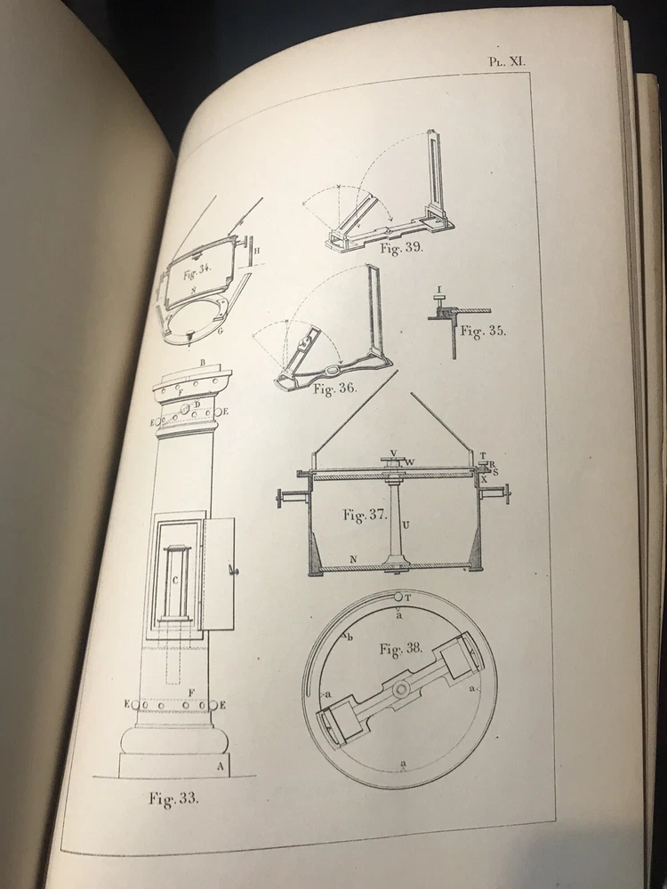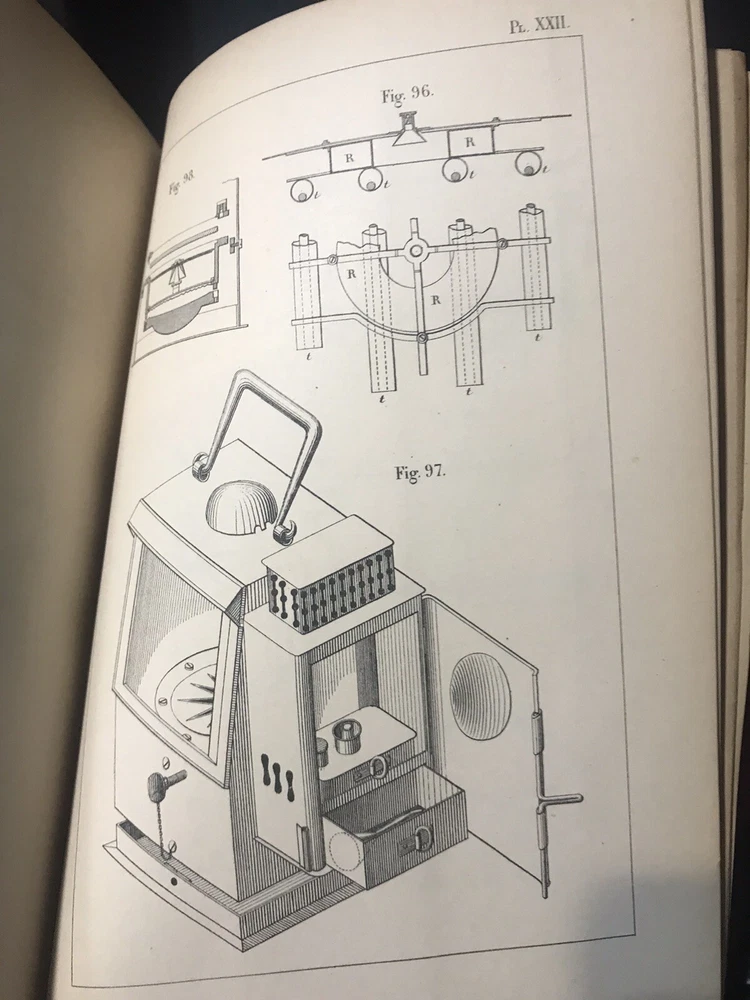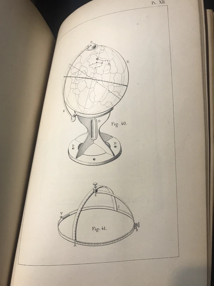Fine half leather, over marbled paper. Near fine condition with a fully intact original binding with tight clean pages; spine has scuffing, but title is still bright and leather is not compromised. Illustrated with many full page plates, some folding and woodcuts/diagrams among text. French language.