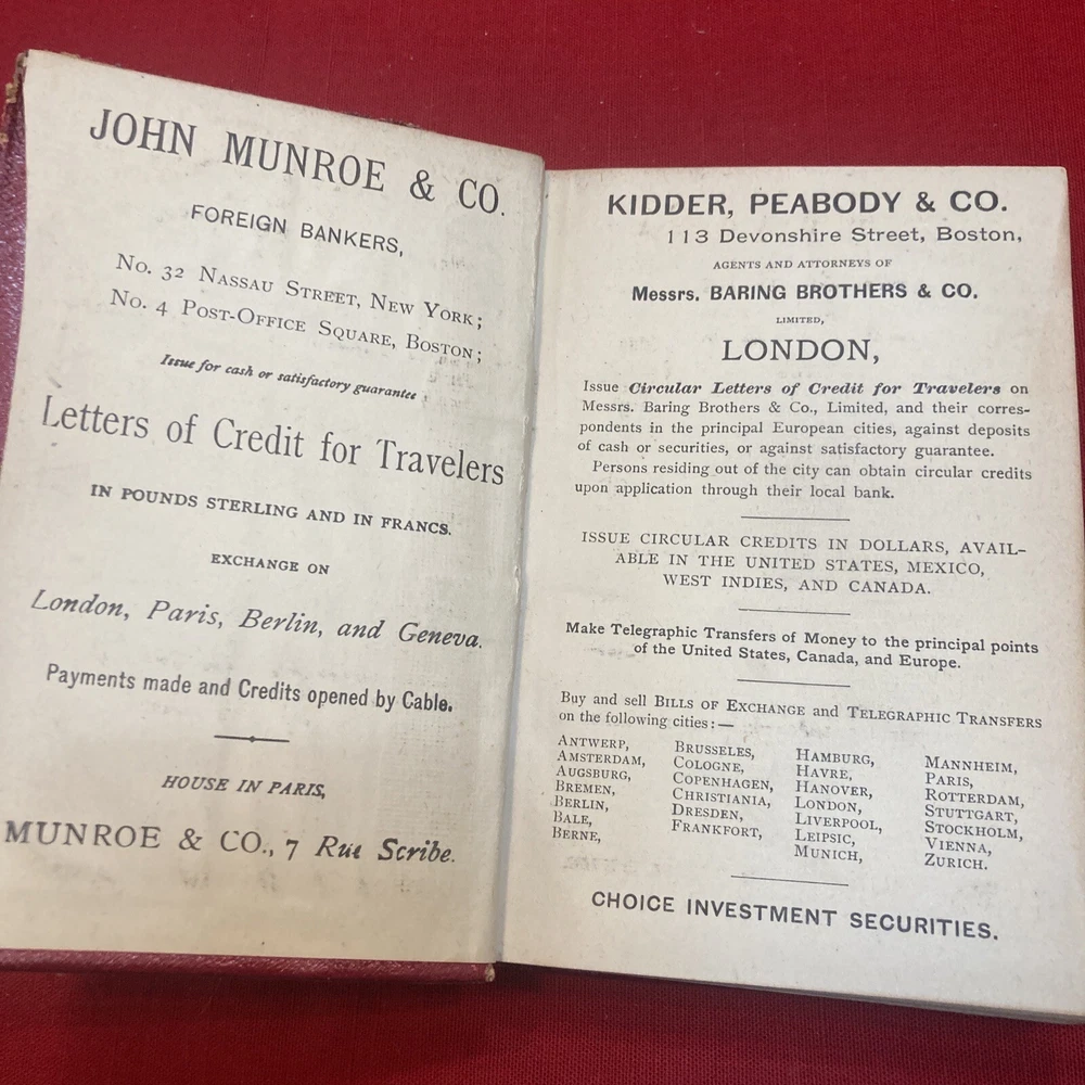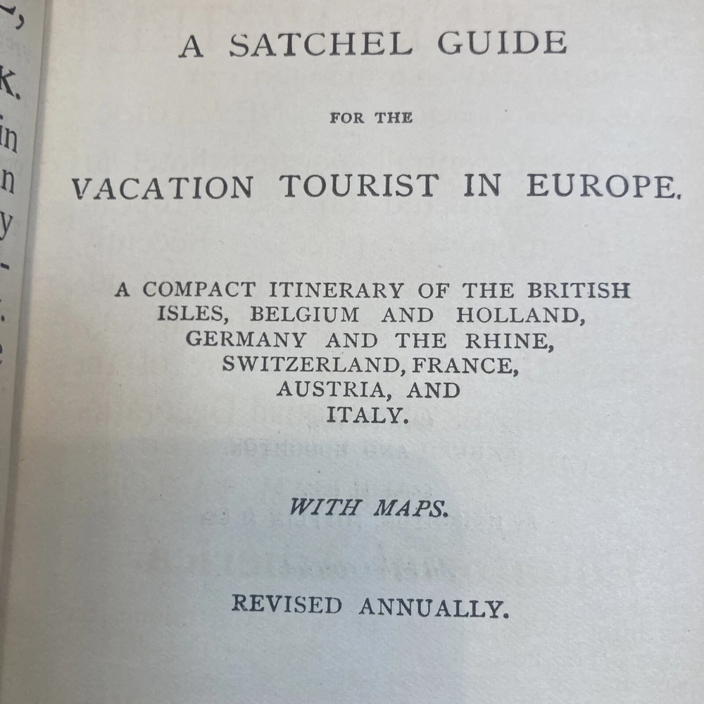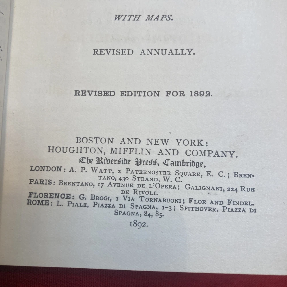 This antique book from 1892 is a must-have for any avid traveler or collector. Filled with detailed information and fold-out maps, it serves as a valuable guide for the vacation tourist in Europe. The leather-bound cover and intricate illustrations make it a special addition to any collection. The book is written in English and published by Houghton, Mifflin and Company in Boston, making it a unique piece of North American history. It covers a range of topics including travel, history, and culture, making it an interesting read for anyone seeking to learn more about Europe. This original, first edition copy is a rare find and a true gem for collectors. Smaller book is in very good condition. Please see all photos.