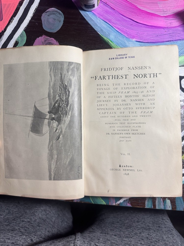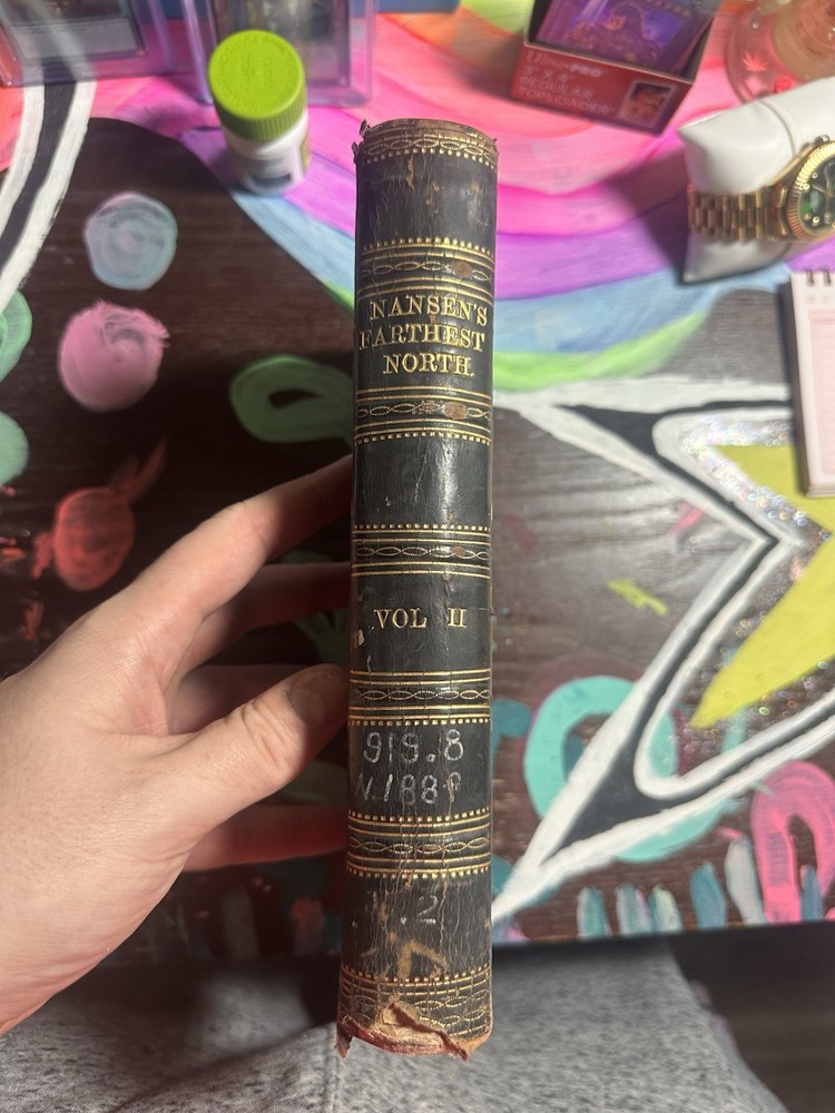This is a rare and valuable copy of "Farthest North Vol.2" by Fridtjof Nansen, published by Harper & Brothers in 1897. It is a first edition copy that contains illustrations, maps, and etchings to enhance the reading experience. The book is bound in leather and is in excellent shape, considering its age. The book is ex-library and has special attributes that make it a collectible item for enthusiasts of exploration and travel. The language of the book is English, and it falls under the categories of Antiquarian & Collectible, Books & Magazines. This copy is perfect for those who appreciate the bravery and dedication of explorers like Nansen.