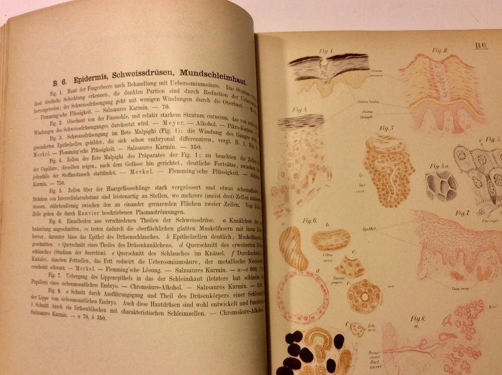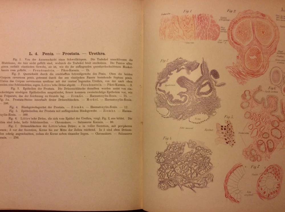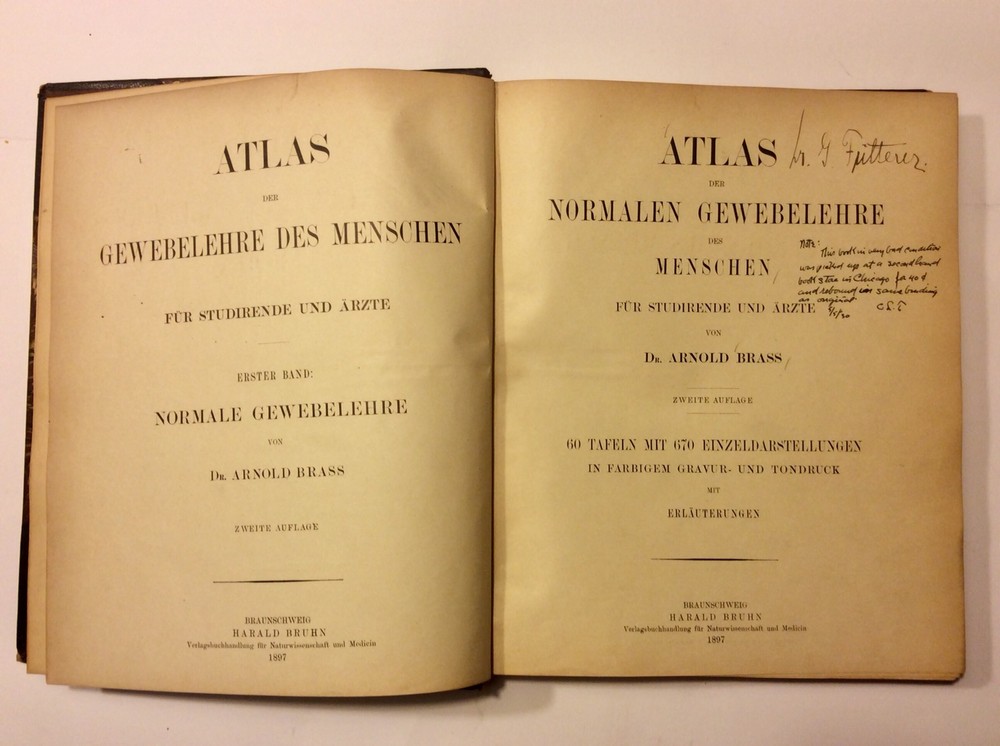 Antique very rare book, 1897 Histology of the Human German “Atlas der Normalen Gewebelehre des Menschen” , leather . Very clean book, excellent Condition. Small loss of leather on the spine. German 1897 tlas der normalen gewebelehre des menschen für studirende und ärzte erster band normale gewebelehre Dr Arnold Brass .60 tafeln mit 670 einzeldarstellungen in fabrigem gravur und tondruck miterlauterungen. ***** Atlas of the normal histology of the human for students and doctors first volume, normal histology 60 panels with 670 individual illustrations in regular engraving and clay printing explanations Pictures are part of the description. Please review them and examine all photos and descriptions carefully. Please if you have any questions or need clarifications ask prior to purchase or bidding. Please purchase when you are satisfied that your questions have been answered fully. Please note: On all Pre-Owned/ Used Items, signs of previous use should be expected. I combine the shipments if it is possible. I offer free local pick-up and preview of fragile and heavy items. All items above $50 will be shipped insured. Please view my other items for sale. I am downsizing and I will list for sale many unique pieces I have been collecting for decades.Thank you