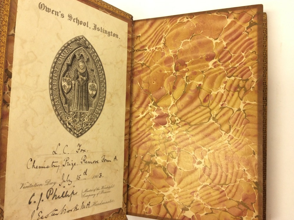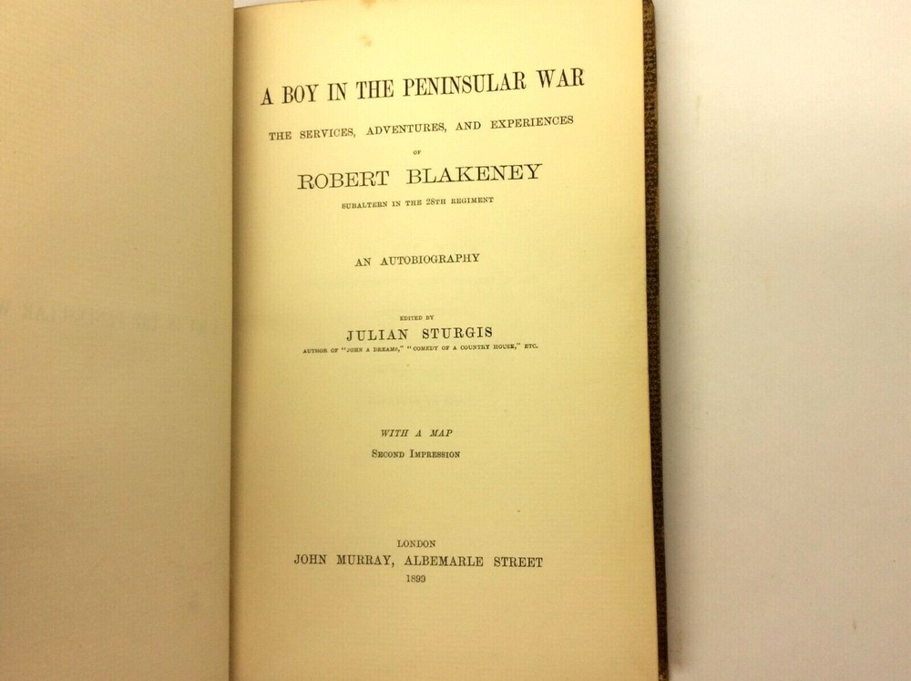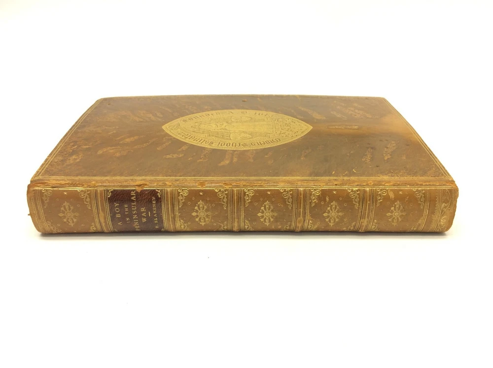 Leather Antique A Boy in the Peninsular War Robert Blakeney Chemistry Prize July 15 th 1903 Signed by the Headmaster CJ Philips Owens School Islington 2 nd Impression Printed 1899 John Murray London Map Rare The book shows wear including wear to the leather, foxing, staining on a few of the inside pages and signs of age. The book comes in good overall condition for its age. This item measures 5.75” x 1.375” x 8.75”. Please see pictures for more details. P22