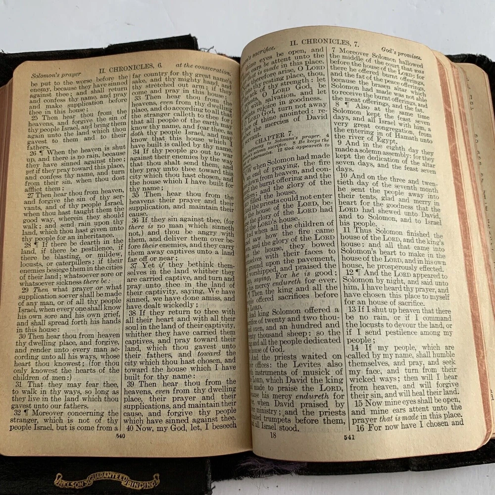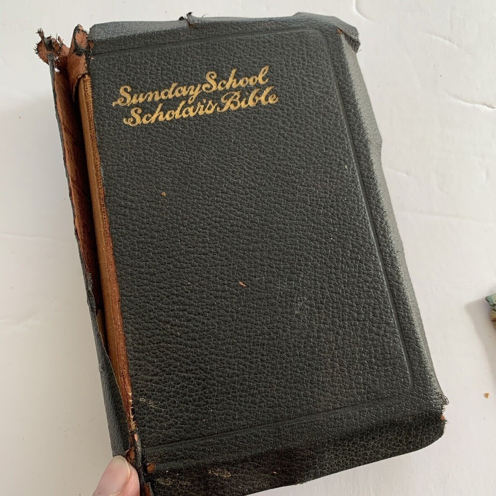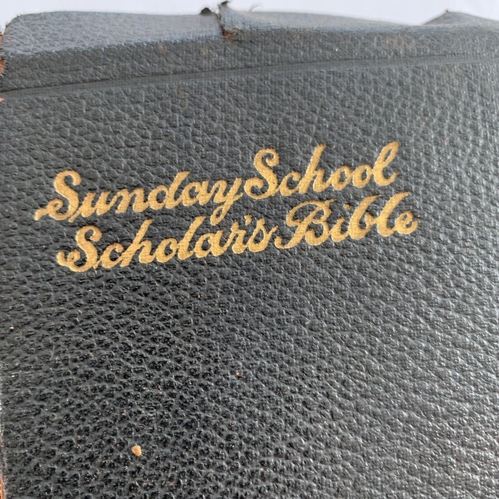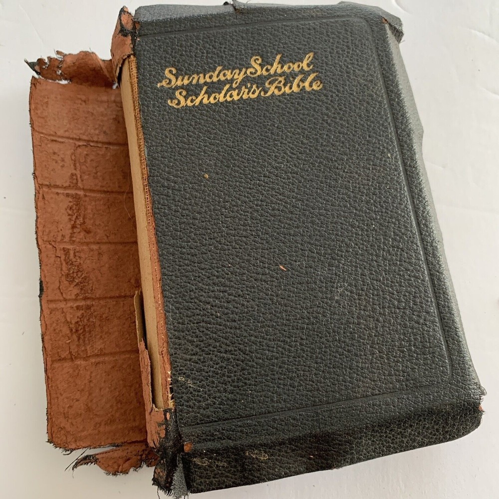 Great for Crafters and Junk Journals 1906 Thomas Nelson Sons Bible Sunday School Scholar's Leather w/ Maps King James. See photos for details and condition *please note this bible is over 100 years old, it has major wear, distressed pages and the spine is damaged. It would be a better addition to a collection rather than one for studying or worship. Collectors will also enjoy the inscription page dedicated in 1932. It also comes with a leather bookmark from 1940. Great Find! See Photos for details and condition