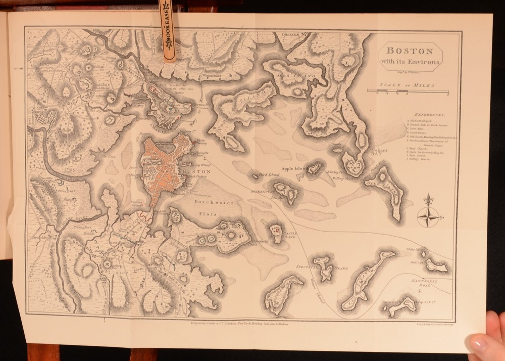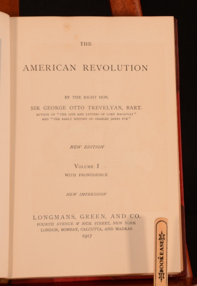Click here to see our other books! The American Revolution Volume I George Otto Trevelyan 1917 Longmans, Green, and Co. : New York 8" by 5.5" xviii, 394pp [1 folding map] SUMMARY A fascinating study of the American Revolution by George Otto Trevelyan, in a lovely half crushed morocco binding with cloth covered boards and attractive marbled endpapers. Colour Plates,Fine Binding,Folding Maps,Illustrated,Leather Binding,Rebound Overall Condition: Near Fine This book weighs 0.75 KG when packed UK Postage: £ 3.99 US Postage: £ 19.99 EU Postage : £ 15.99 European Postage: £ 16.99 Asia Postage: £ 21.99 Worldwide Postage: £ 25.99 DESCRIPTION Whilst primarily remembered for his biography of his uncle Lord Macaulay, Trevelyan was also a notable historian writing many influential works including his 'Early History of Charles James Fox' and his study of the American Revolution. This is Volume I only. A New Edition. Complete with a portrait frontispiece of the author with a facsimile of his signature, and a folding coloured map of to Boston the rear of the text. CONDITION Rebound in a half crushed morocco binding with cloth covered boards. Externally excellent. Very slightly rubbed to extremities head and tail of spine.Very slight rubbing to front joint. Front hinge partially split, strained but firm. Slight offsetting to very extremity of endpapers. Internally firmly bound. Pages very bright and clean throughout. Slight age toning to page edges. Very small closed tear to gutter of folding map, otherwise very bright and clean. Overall Condition: Near Fine GLOSSARY OF TERMS Overall Condition (Dustwrapper condition rating is shown after that for the book itself, where a dustwrapper is present) Fine - Very well preserved copy showing very little wear Very Good Indeed - Only one or two minor faults, really a very attractive copy Very Good - Quite a wide term meaning no major faults but probably several smaller ones often expected given the age of the book, but still a respectable copy Good - Meaning not very good. Some more serious faults as will be described in the condition report under 'condition' Good Only - Meaning one or more faults that could really do with repair Fair - As with good only above but with other faults leaving a compromised copy even after repair Poor - Really bad and possibly seriously incomplete. We only sell books in this condition where their rarity or value makes them attractive none the less. Major defects will be described. GUARANTEE We offer a full money back guarantee on our descriptions. Please ask for details and conditions. We prefer PAYPAL. If you pay via PAYPAL we will post the item off the same or the next working day with the postage you have selected. Please note we cannot accept USD cheques