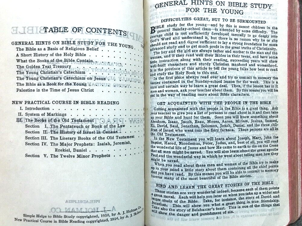 Bible is KJV. Includes: Simple helps to bible study; Young christian's bible class questions & answers on the old and new testaments; maps; pictures Measurements: 5 x 7.5 x 1.5 inches Thanks for considering my item. I never use stock photos. The item you see in the picture(s) is the actual item you will be bidding on. Always sold as is, but I ensure customer satisfaction. You come first. I allow my feedback to speak for me. Payment: PayPal, within 3 days of purchase. Shipping: USPS Priority or Media Mail. I ship within one day of receiving payment, often the same day. I can accommodate special requests at buyer?s expense & combined shipping is welcomed. I do not ship on Saturday. Return Policy: If you are not happy with your purchase please give me the opportunity to make it right. Buyer has 30 days to return the item after sale. Buyer pays return shipping. Thank you