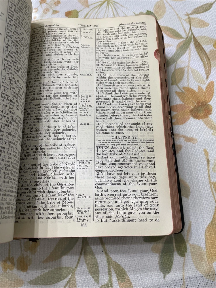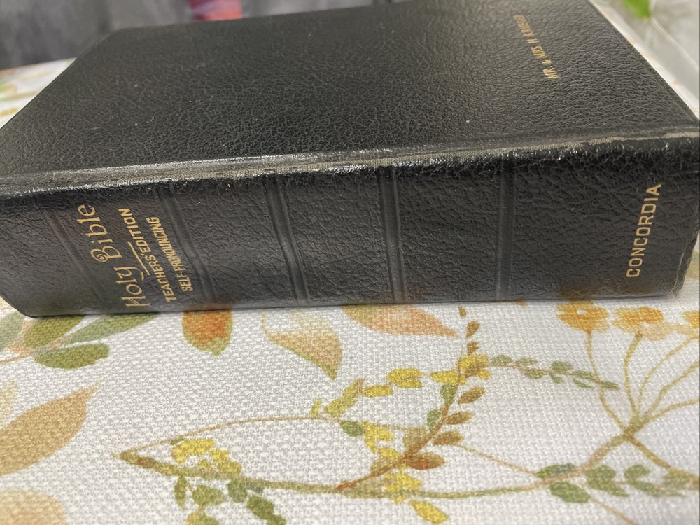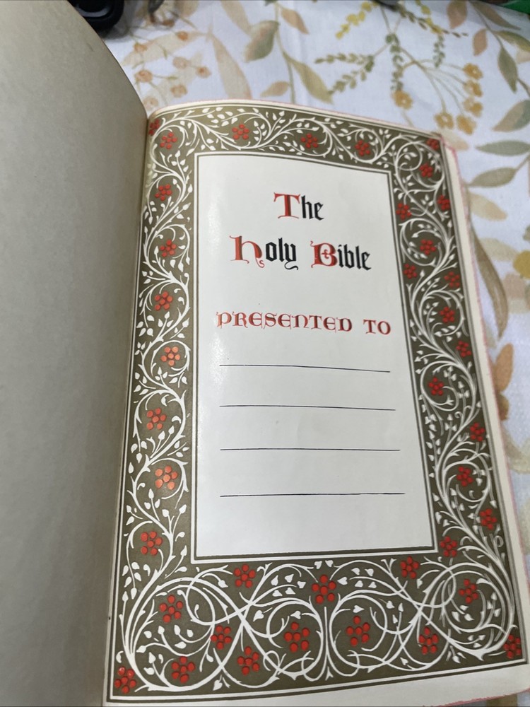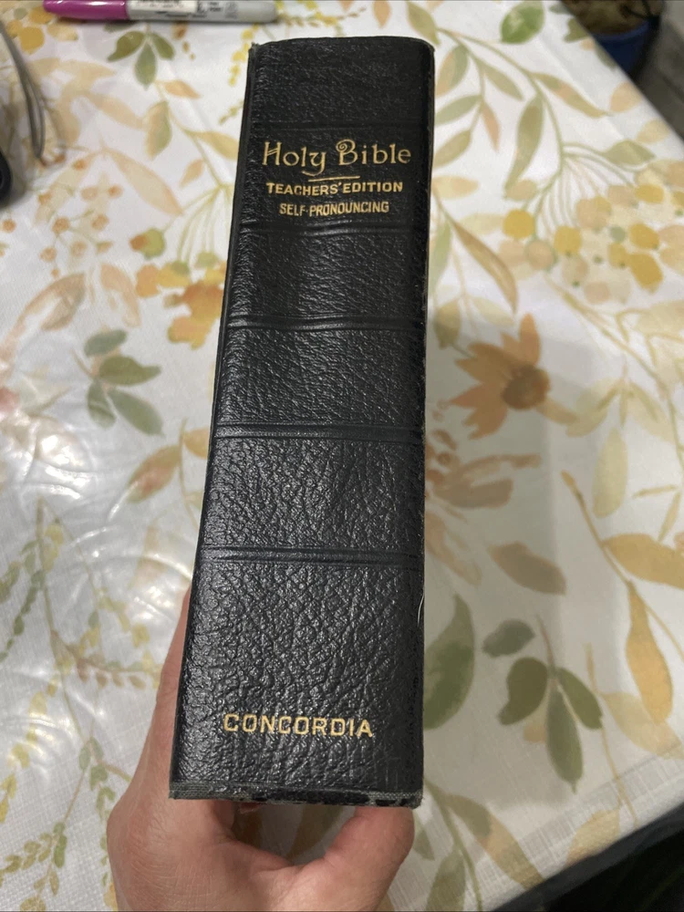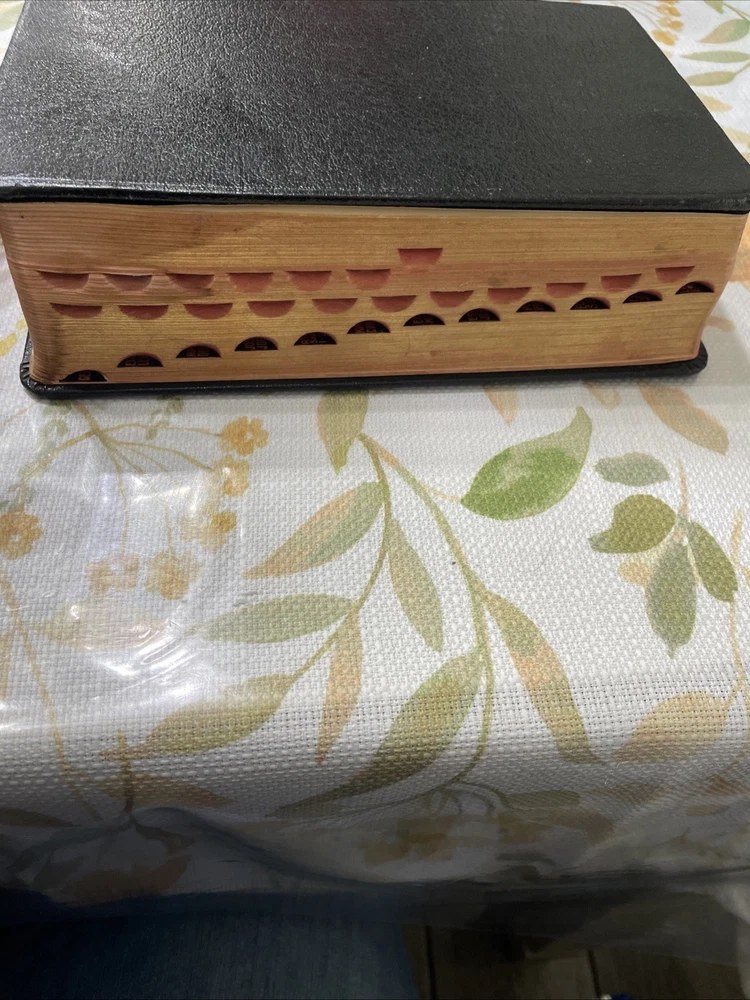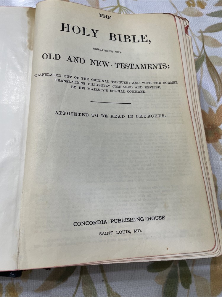 This vintage 1932 edition of the Holy Bible from Concordia is a treasure for any collector or person interested in religion and spirituality. The gold and red page edges and colored maps make it a visually stunning piece, while the leather binding ensures its durability. The Bible includes both the Old and New Testaments and is written in English. It features self-pronouncing terms and is perfect for anyone interested in Christianity and Proverbs. The book is personalized and has a vintage feel, making it a unique addition to any collection.