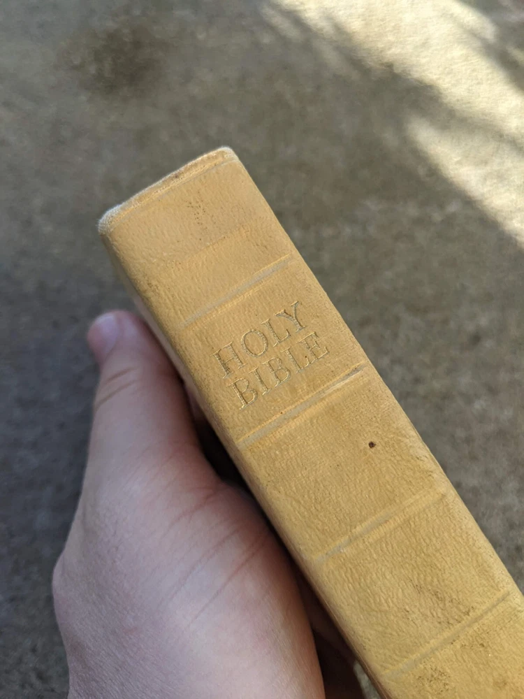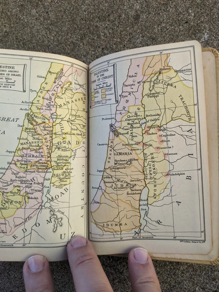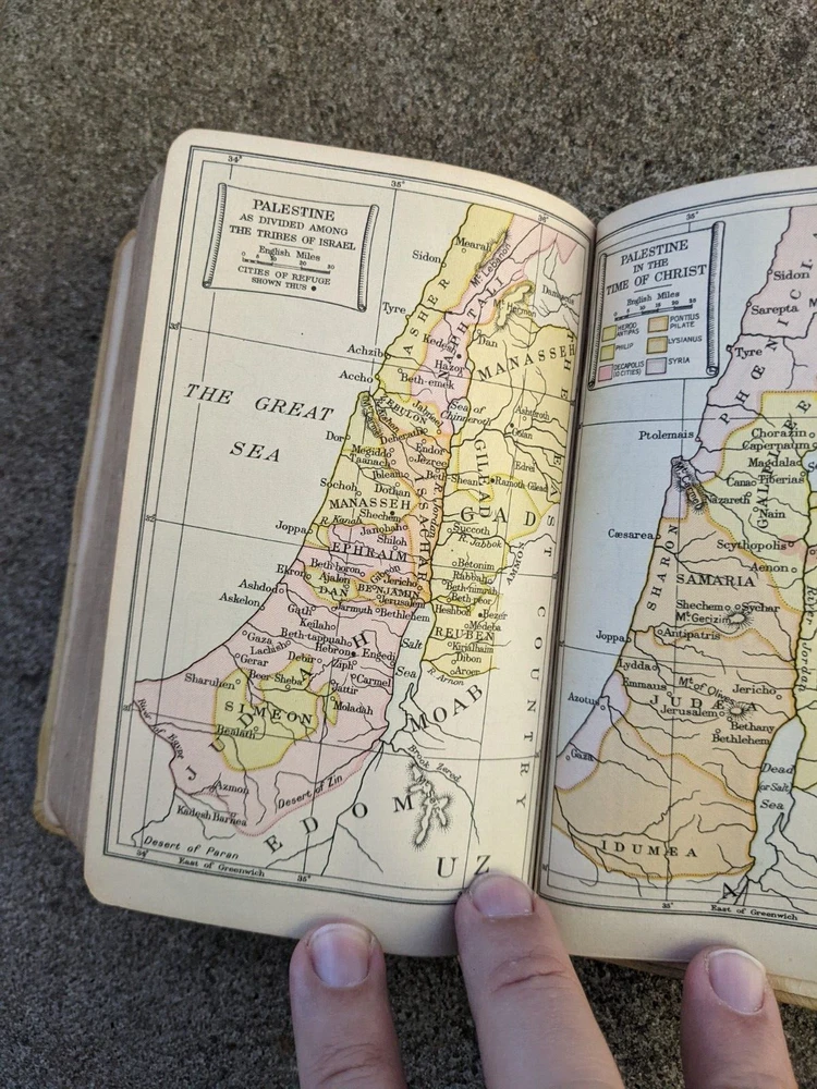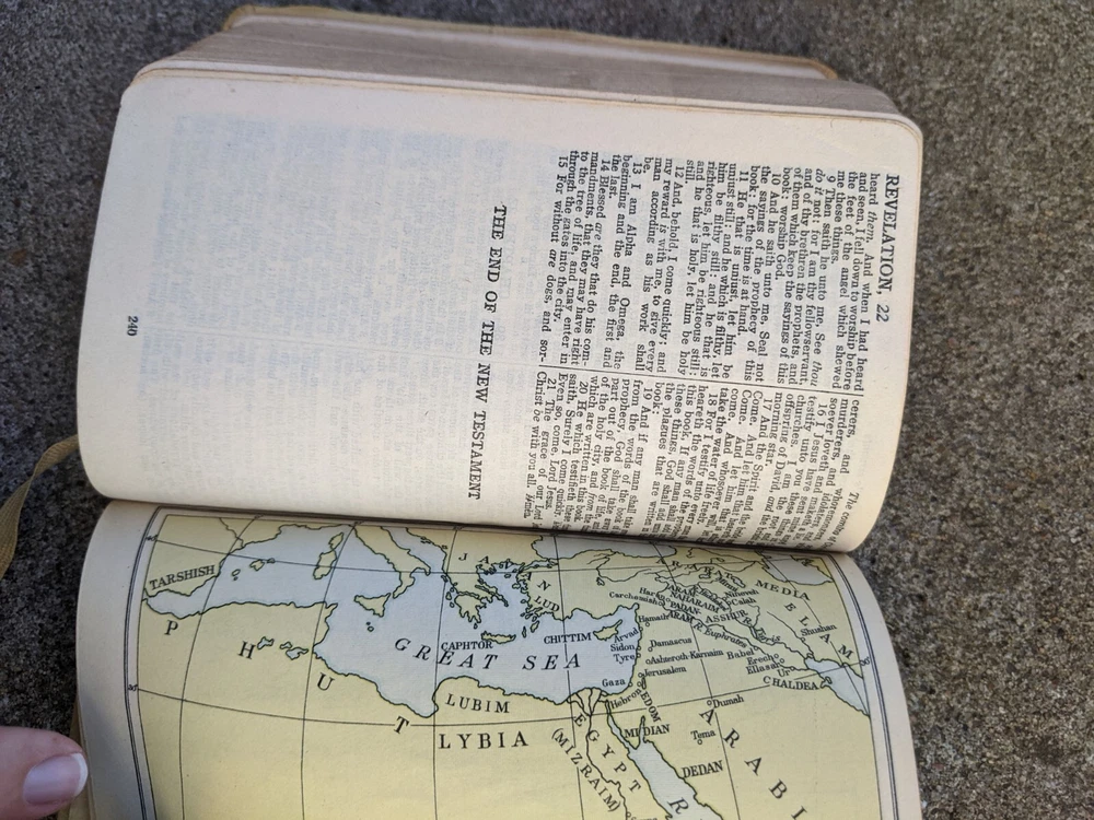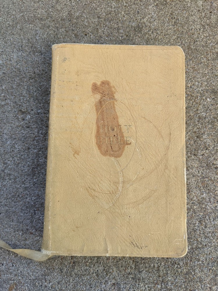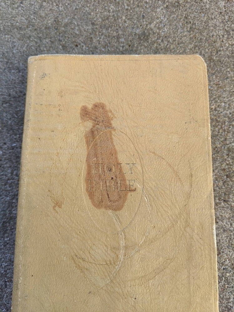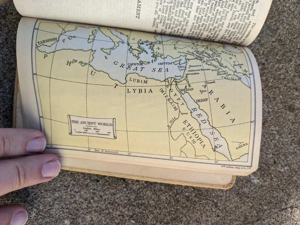 Vintage Book Hallmarks: Collins Condition: The bible has a stain on the outside cover. It is in otherwise good condition.