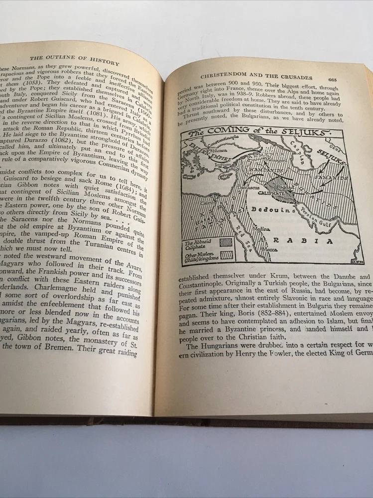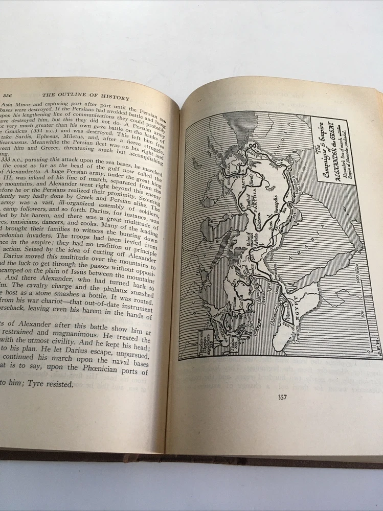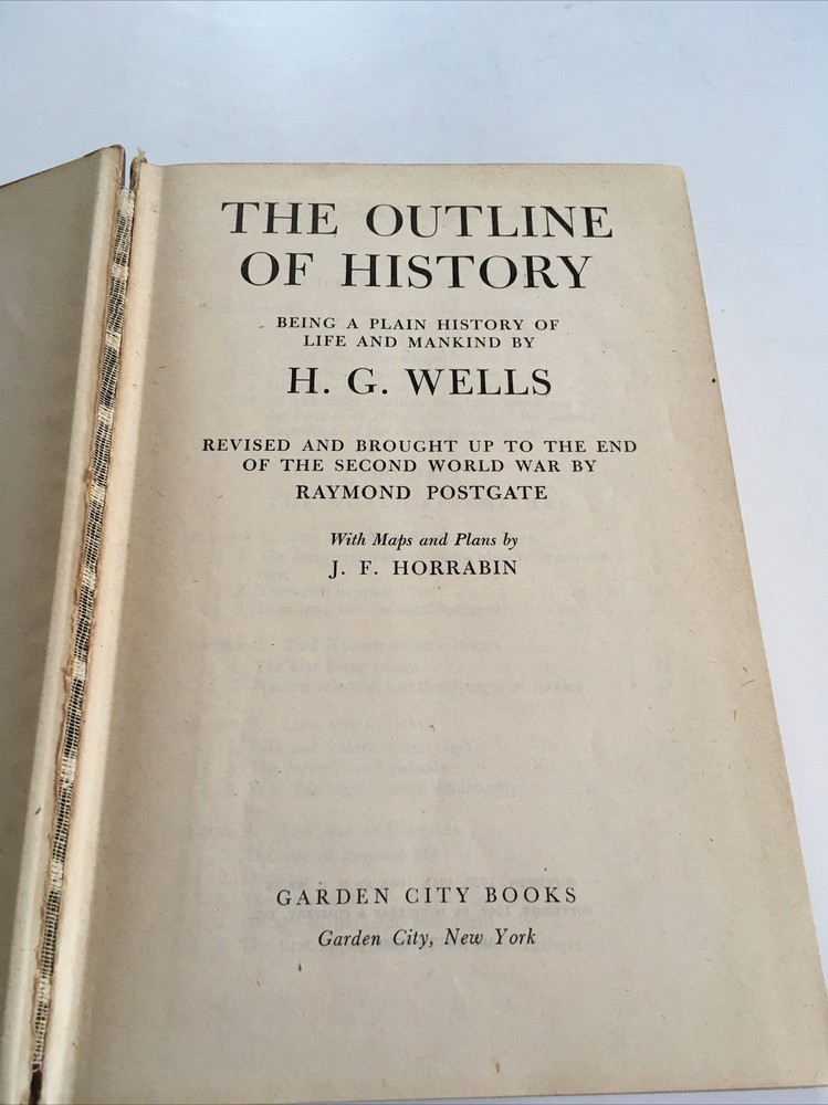 This is a 1949 THE OUTLINE OF HISTORY - by H.G. Wells with Maps and Plans VG. This book is in Very good condition. It has a little wear on the edges, corners and covers of the book. The binder is a little loose. The pages are in very good plus condition. THIS IS A 1949 COPYRIGHT. Pictures are available. Buyer pays shipping cost. Any questions, please, ask. Thanks, for looking. Hank.