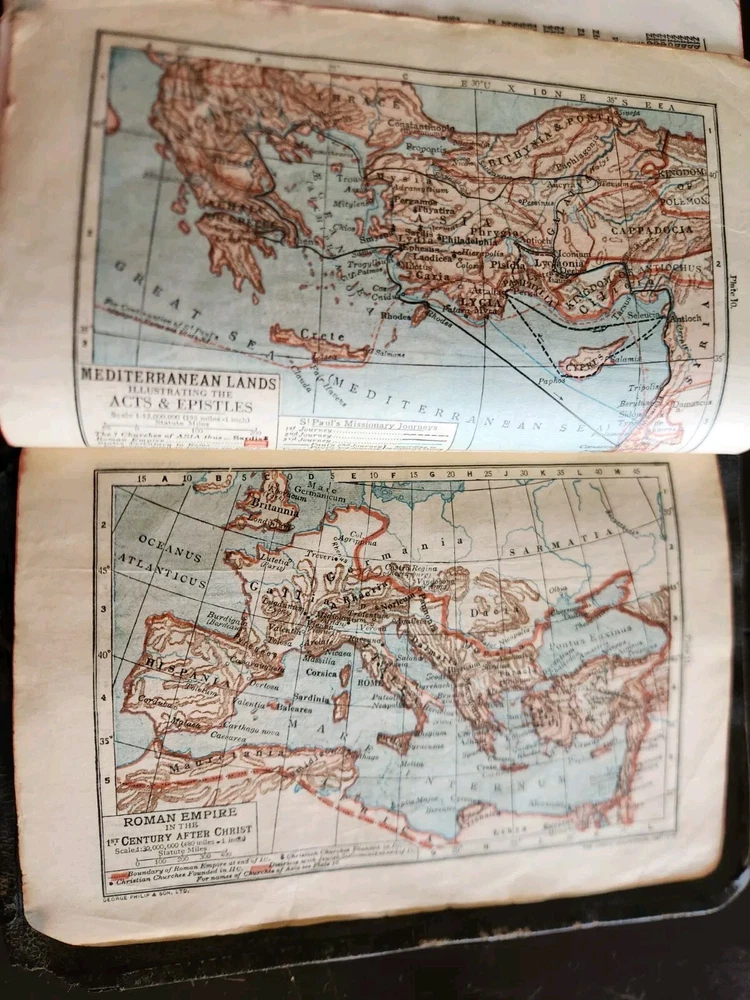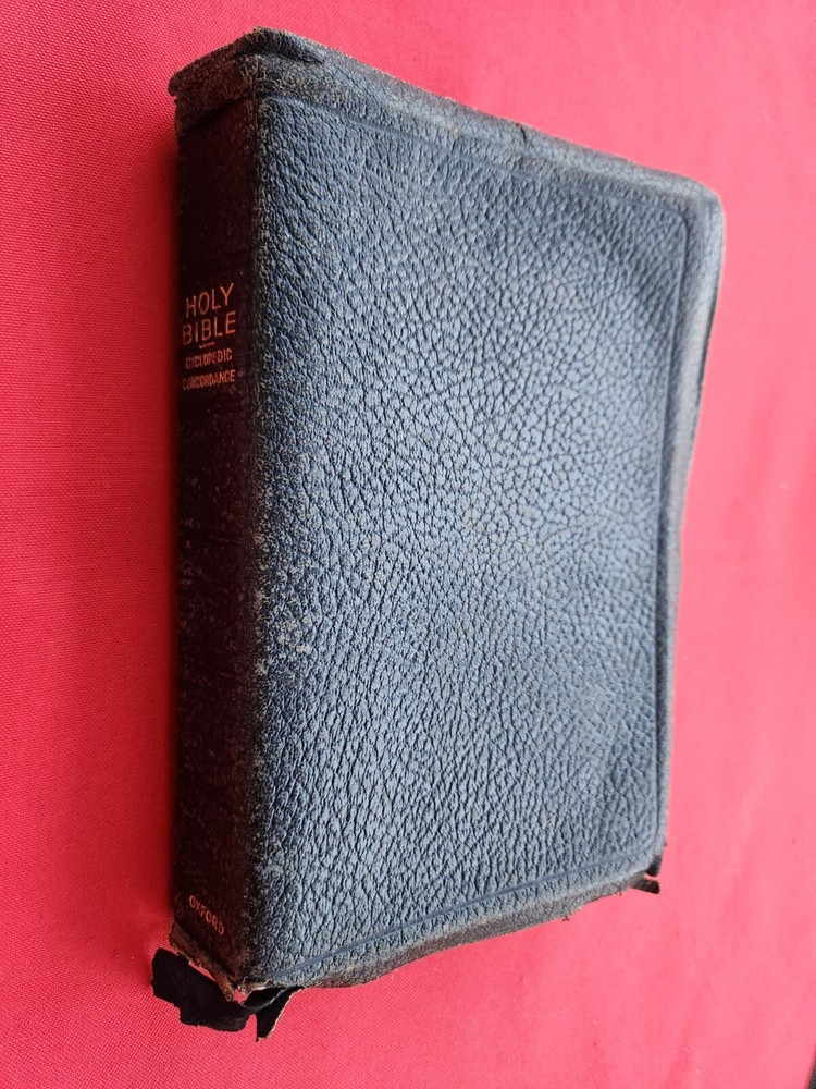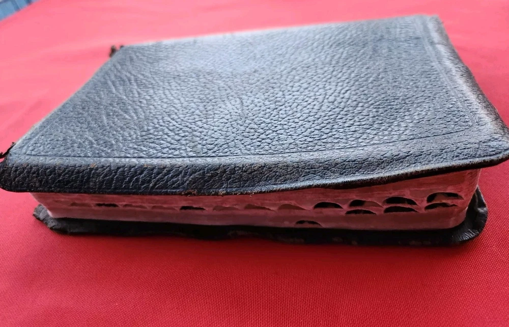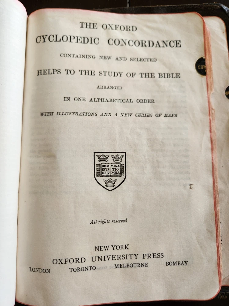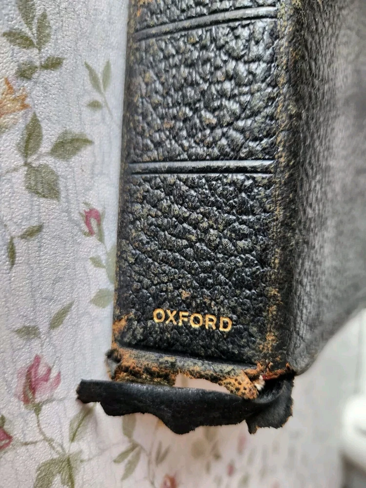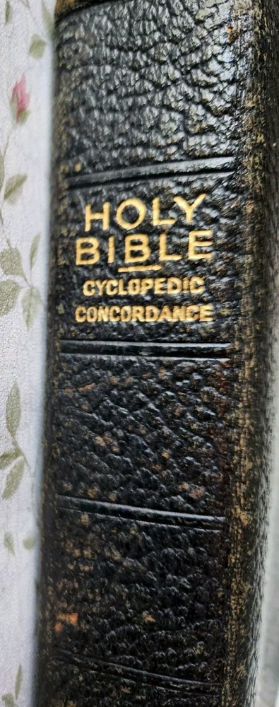 Vintage approximately 1950s maybe older? I couldn't find a date. Oxford University Teachers Edition Cyclopedic Concordance Black Leather Gold Gilt Thumb Indexed Maps Helps Old and New Testament The Bible is in acceptance condition. See all pictures. All pages are in it, back binding is pulled loose. Fast Shipping