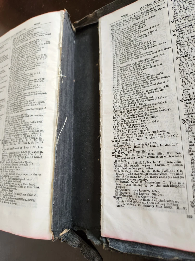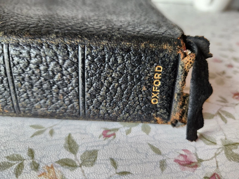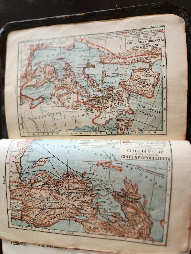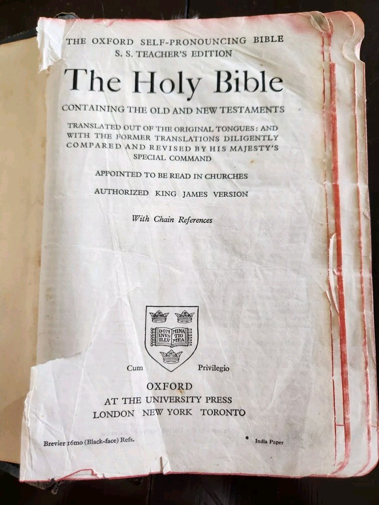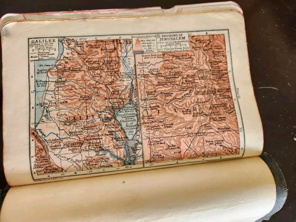 Vintage approximately 1950s maybe older? I couldn't find a date. Oxford University Teachers Edition Cyclopedic Concordance Black Leather Gold Gilt Thumb Indexed Maps Helps Old and New Testament The Bible is in acceptance condition. See all pictures. All pages are in it, back binding is pulled loose. Fast Shipping