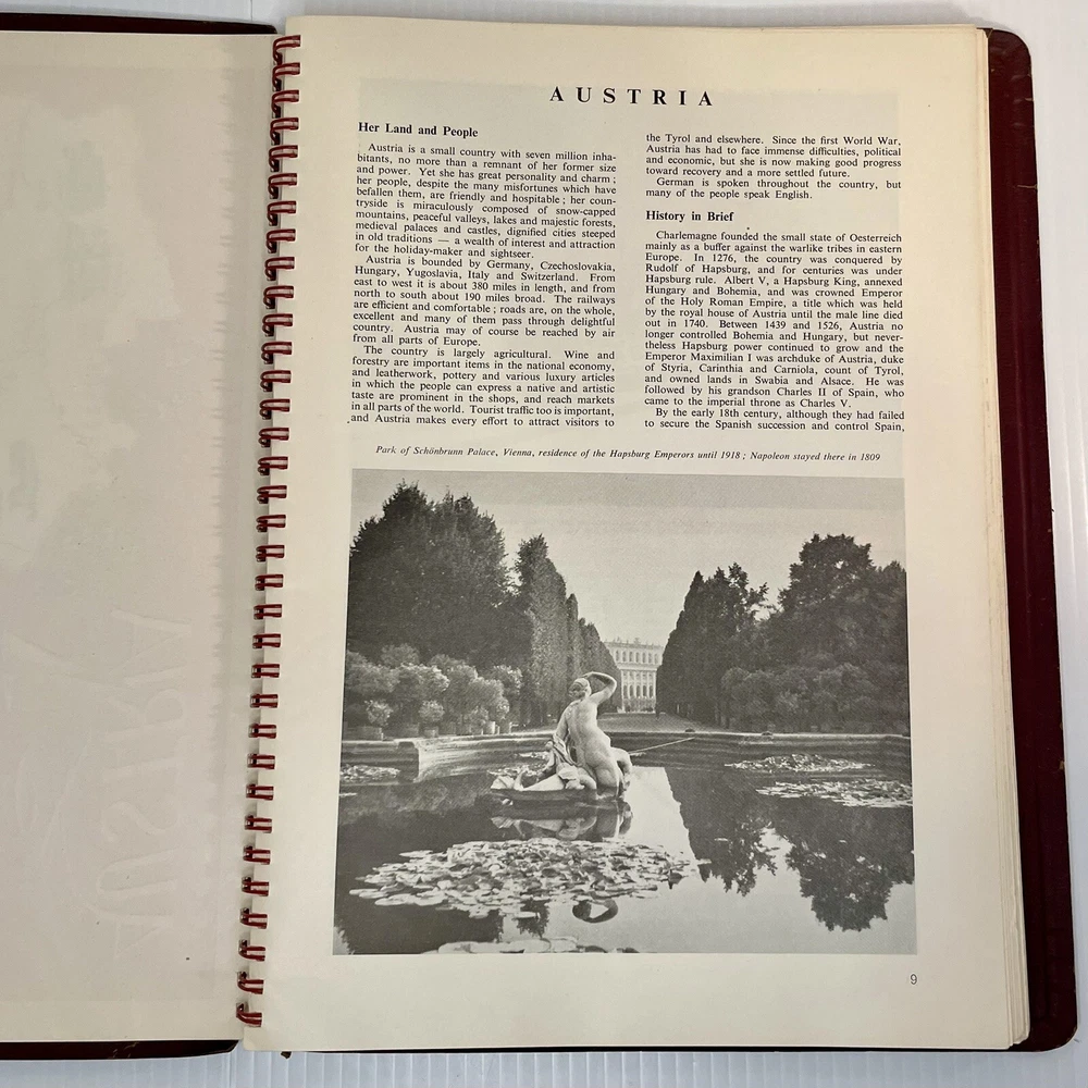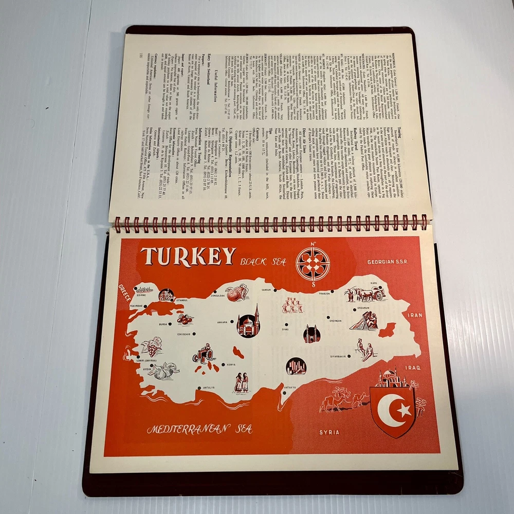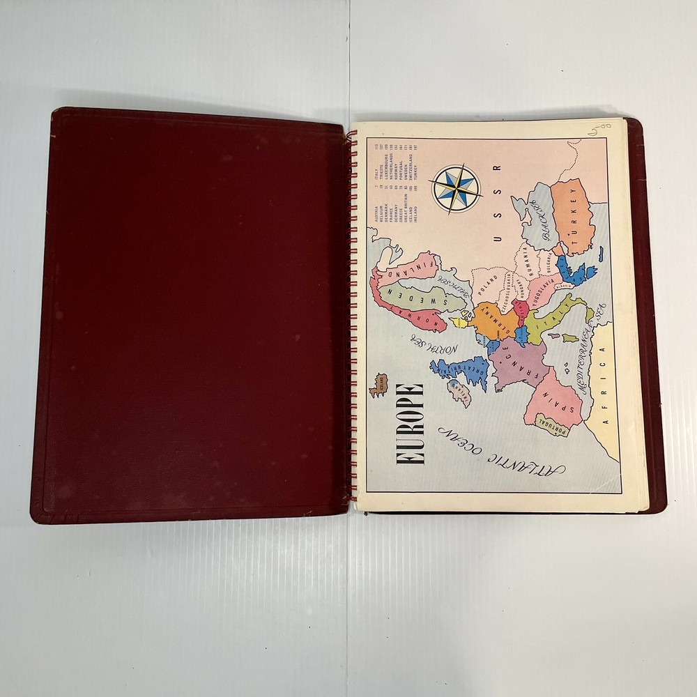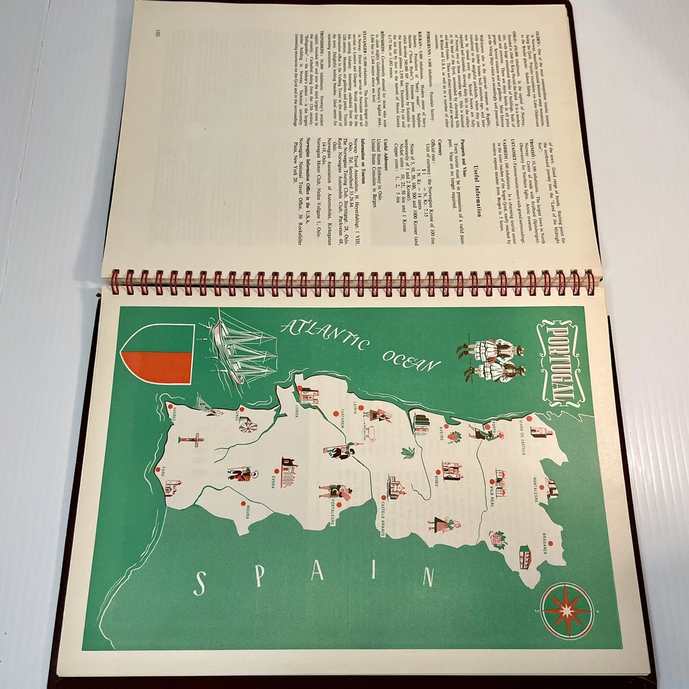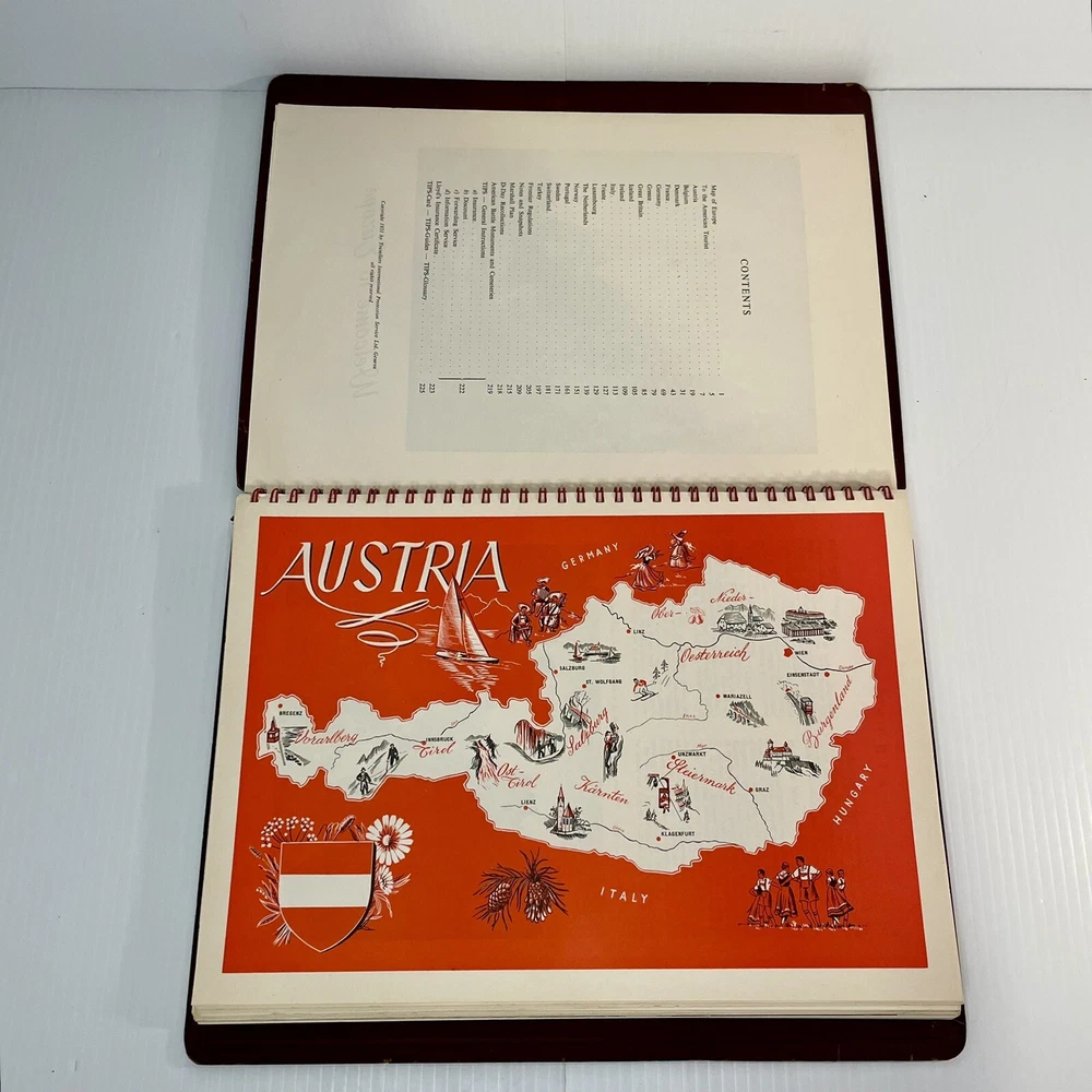 Very good condition overall with minimal yellowing to pages, no writing, spiral binding functioning well. The leather has cracked a bit along the spiral, and has a little spotting on the inside covers. Rare item. 222 pages. Measures 12” x 8 1/2” x 1/2”.