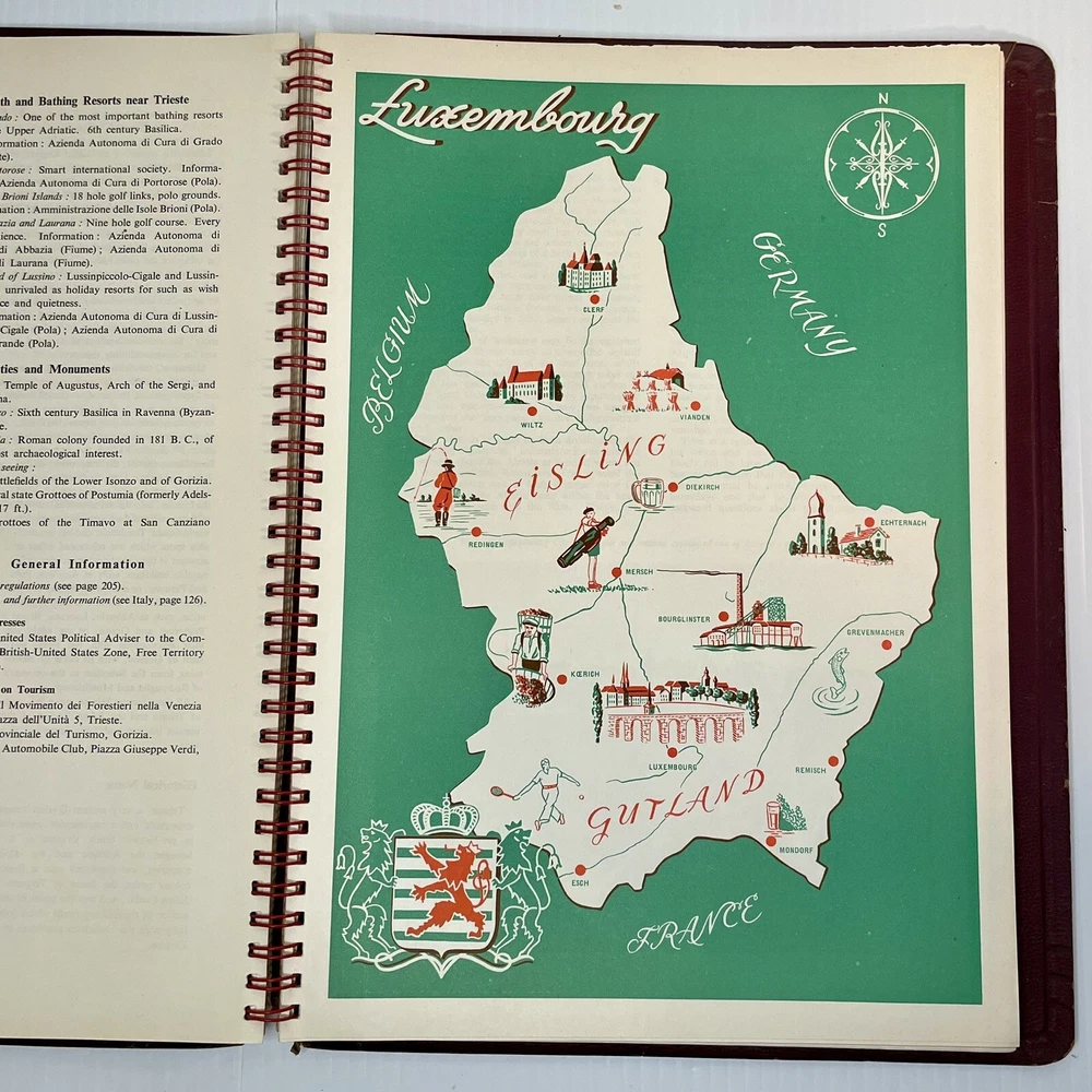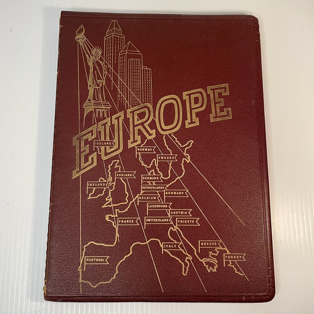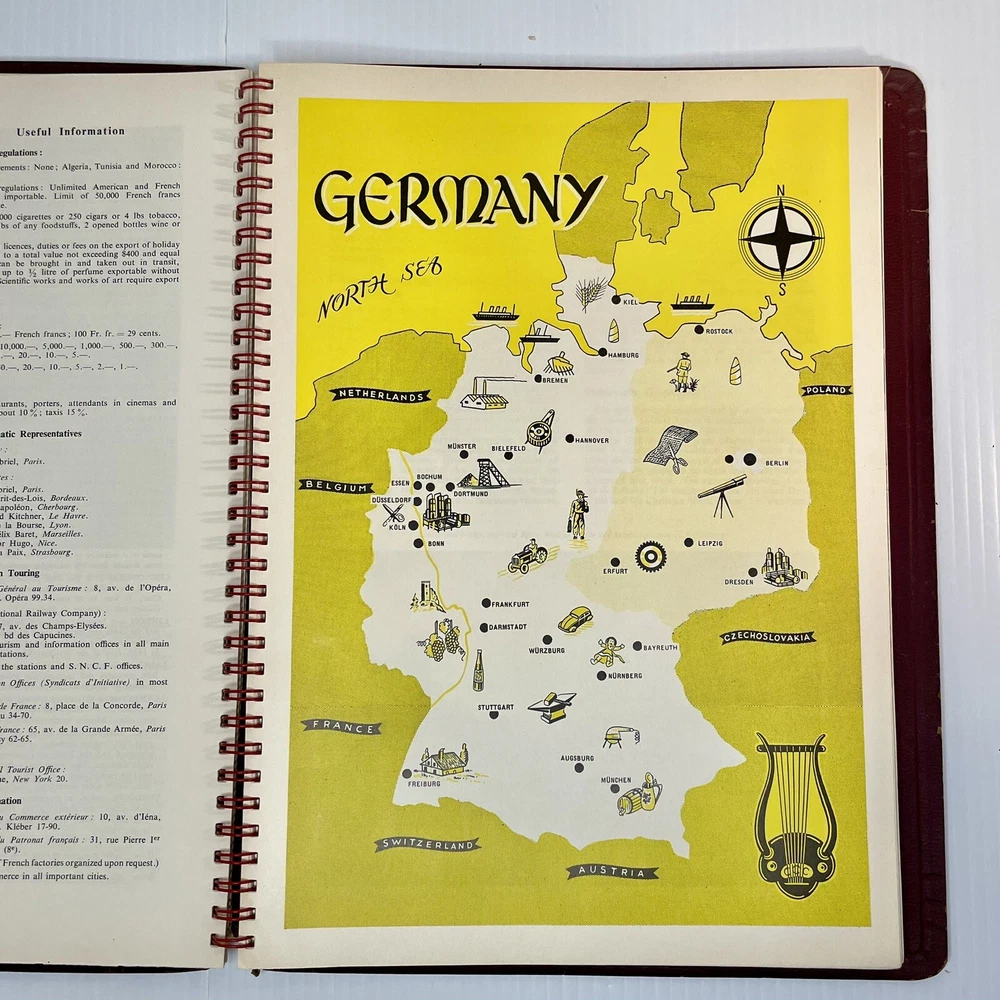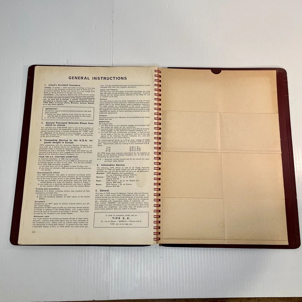 Very good condition overall with minimal yellowing to pages, no writing, spiral binding functioning well. The leather has cracked a bit along the spiral, and has a little spotting on the inside covers. Rare item. 222 pages. Measures 12” x 8 1/2” x 1/2”.
