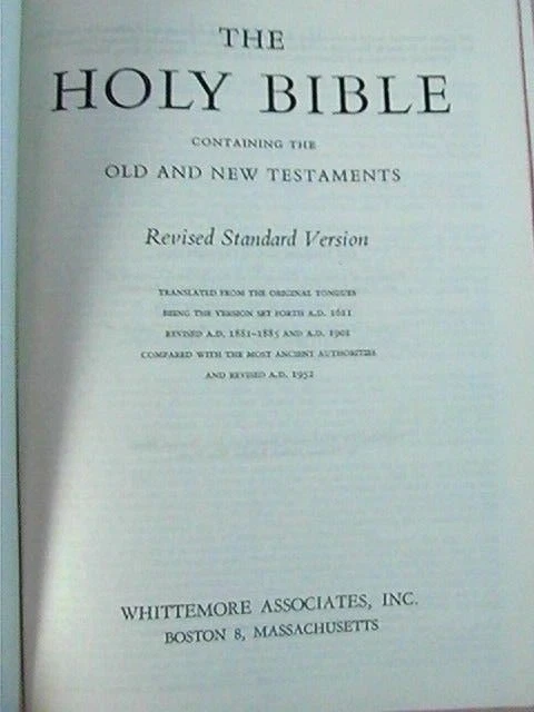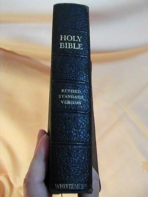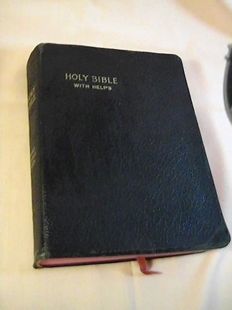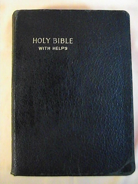 The bible is in fair vintage condition. Intact binding, nice clean pages with no highlights or writing. Subscription on presentation page. Black leather cover has age-related wear to the edges. Bible ...