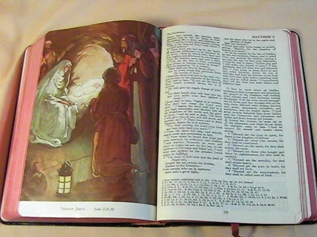 | Special Attributes | red ribbon attached bookmark, color maps, Old & New Testament, red page edges, Illustrated |